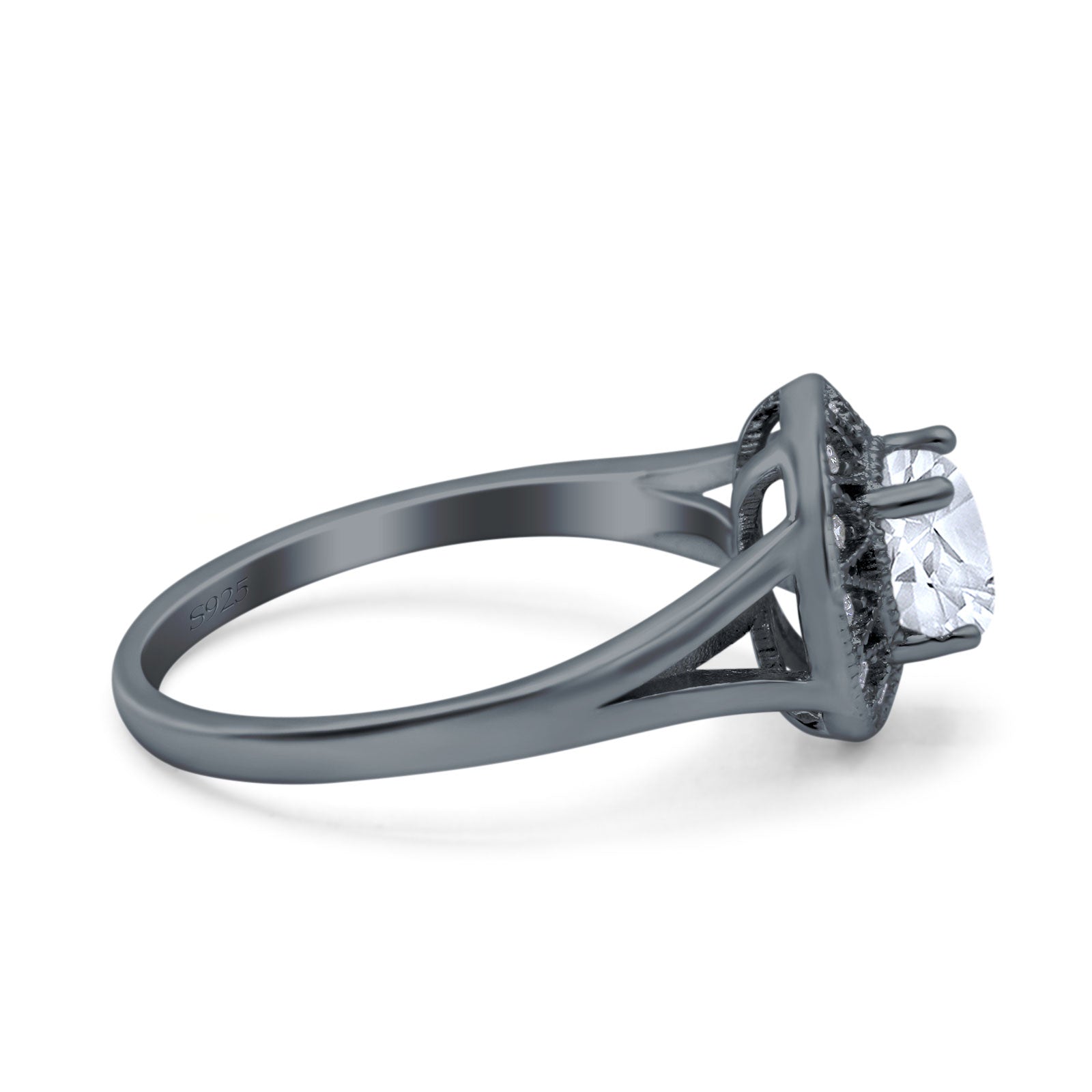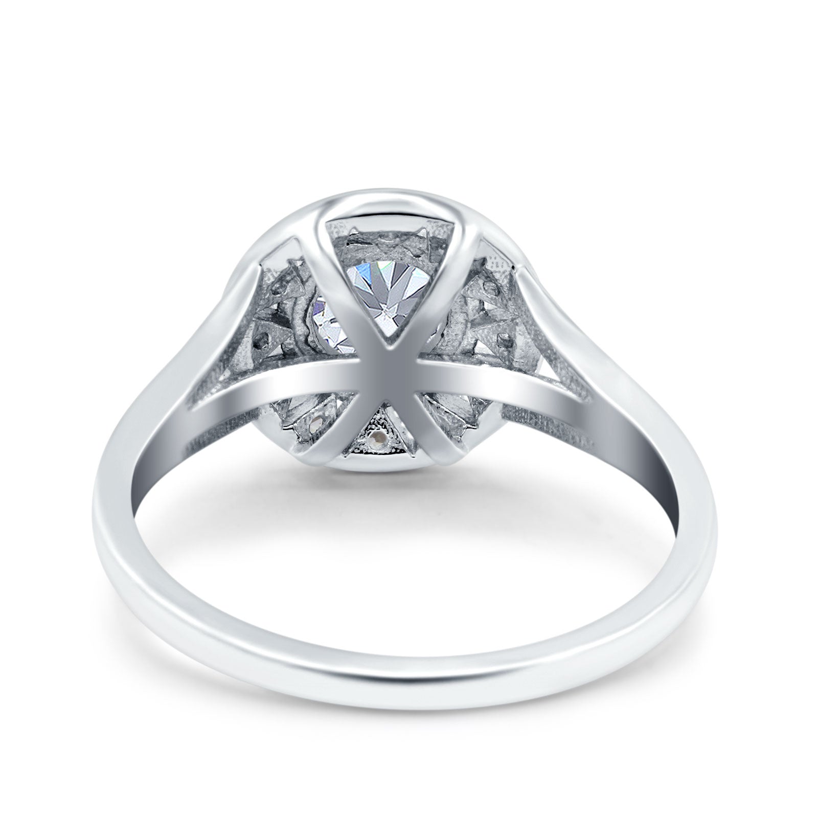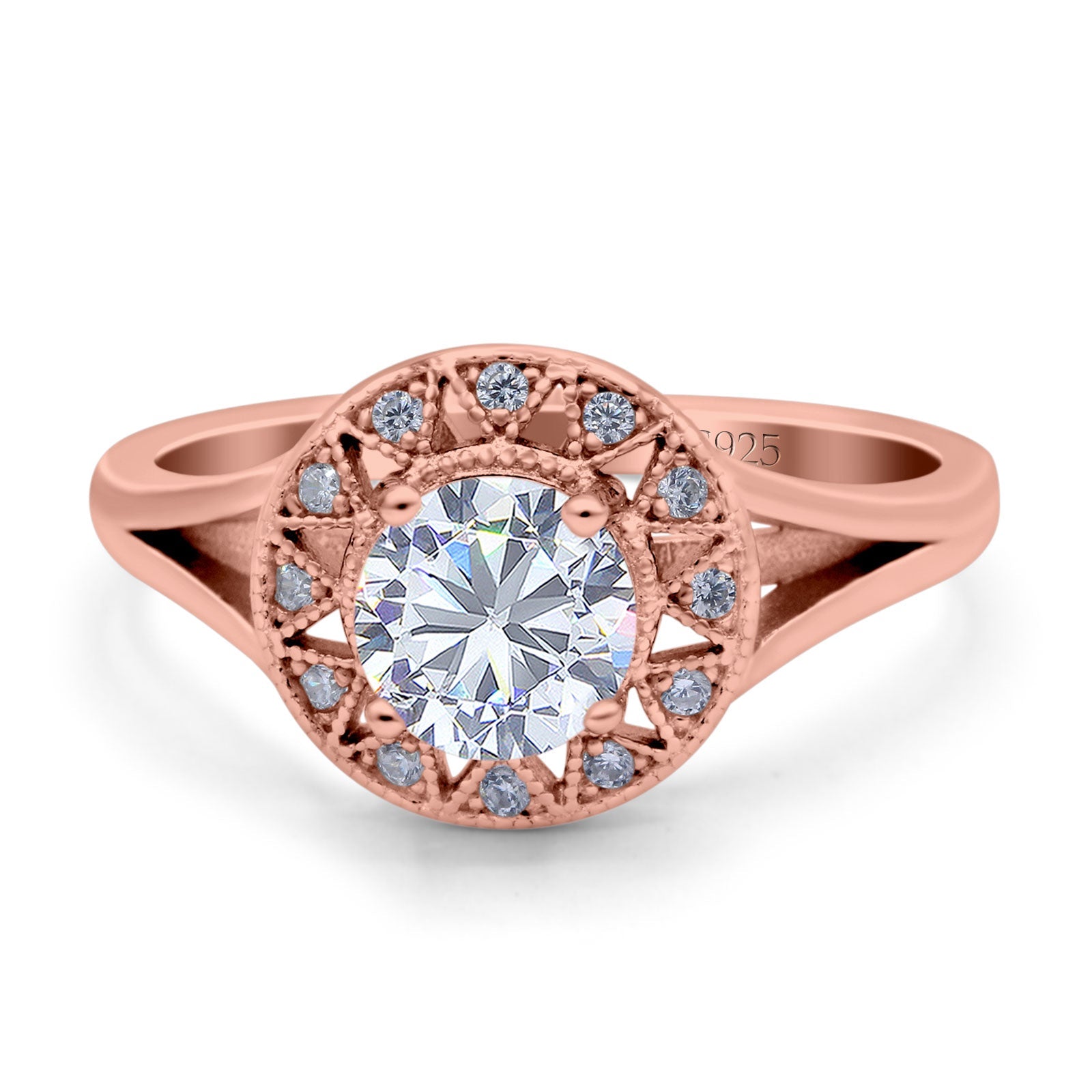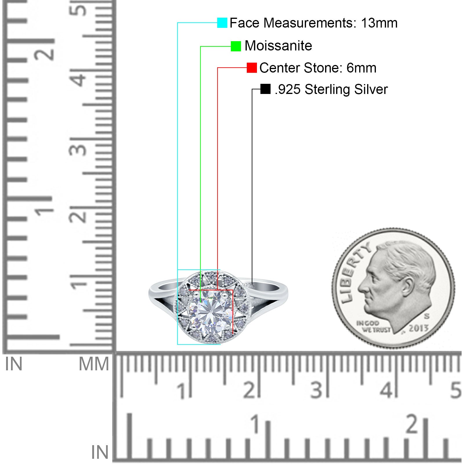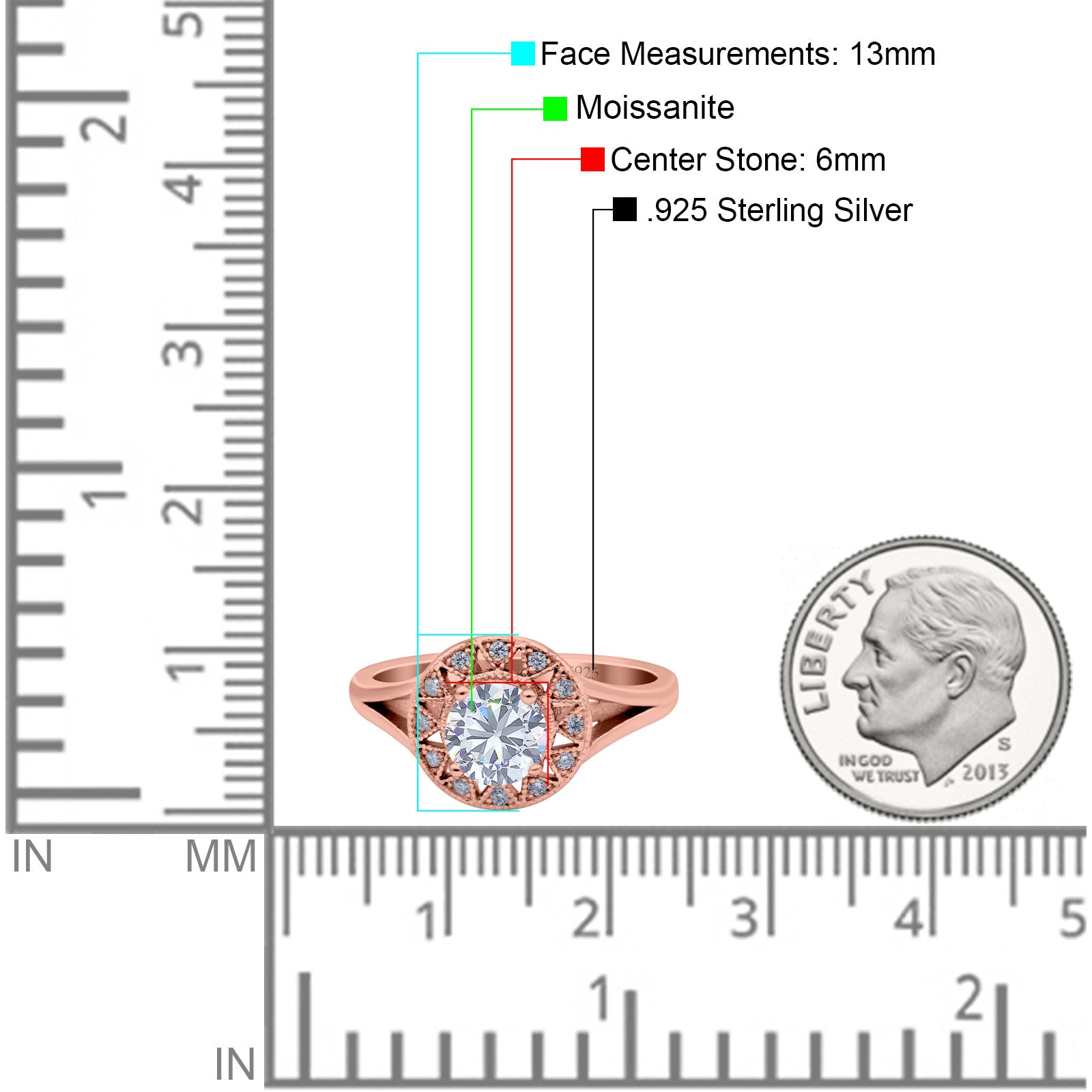 Floral Round Moissanite Split Shank Ring 925 Sterling Silver