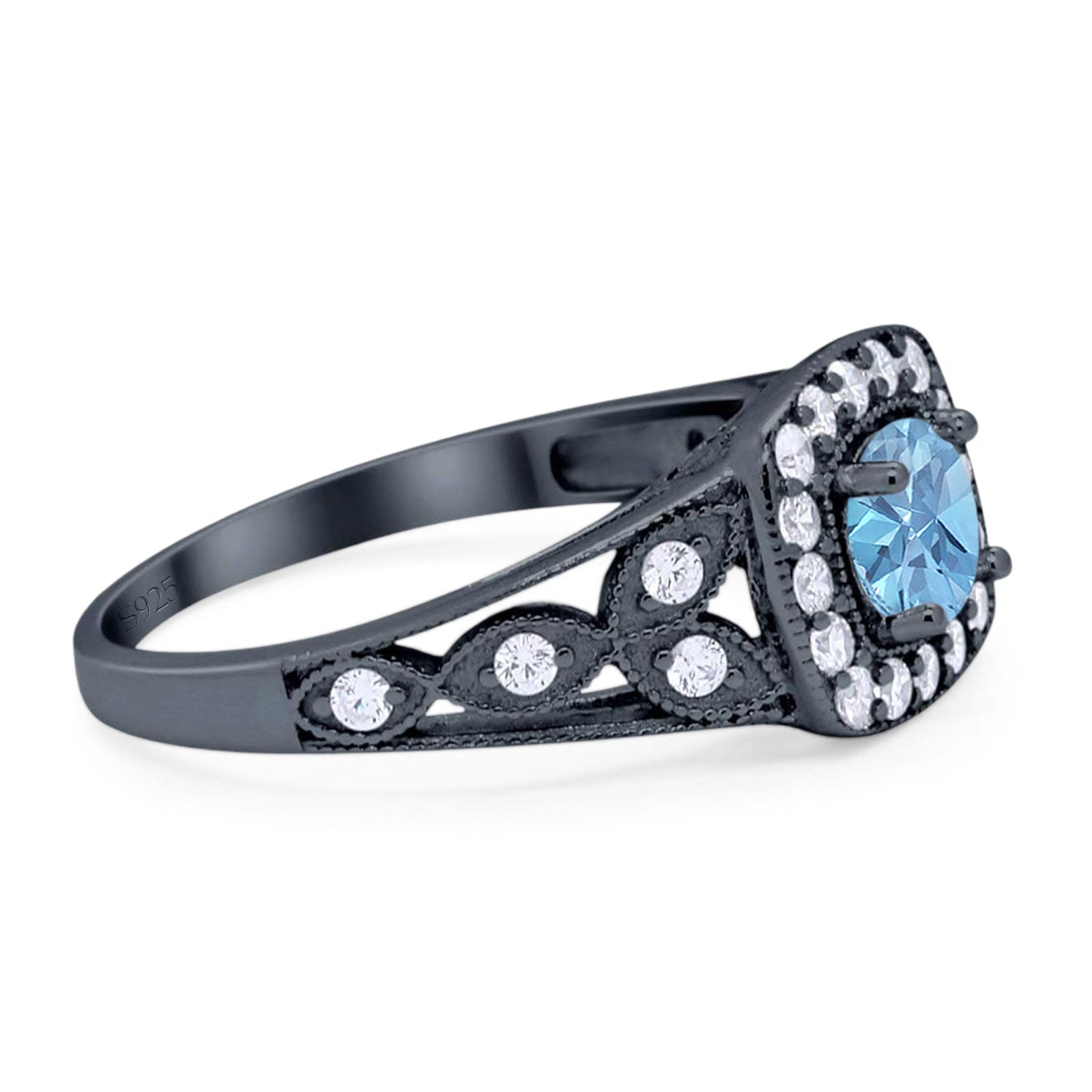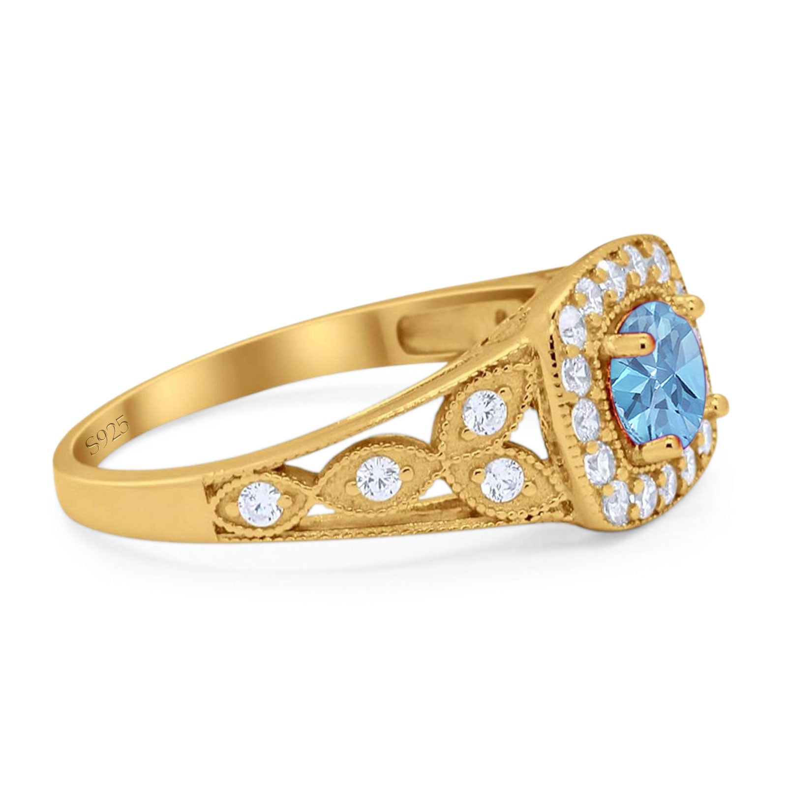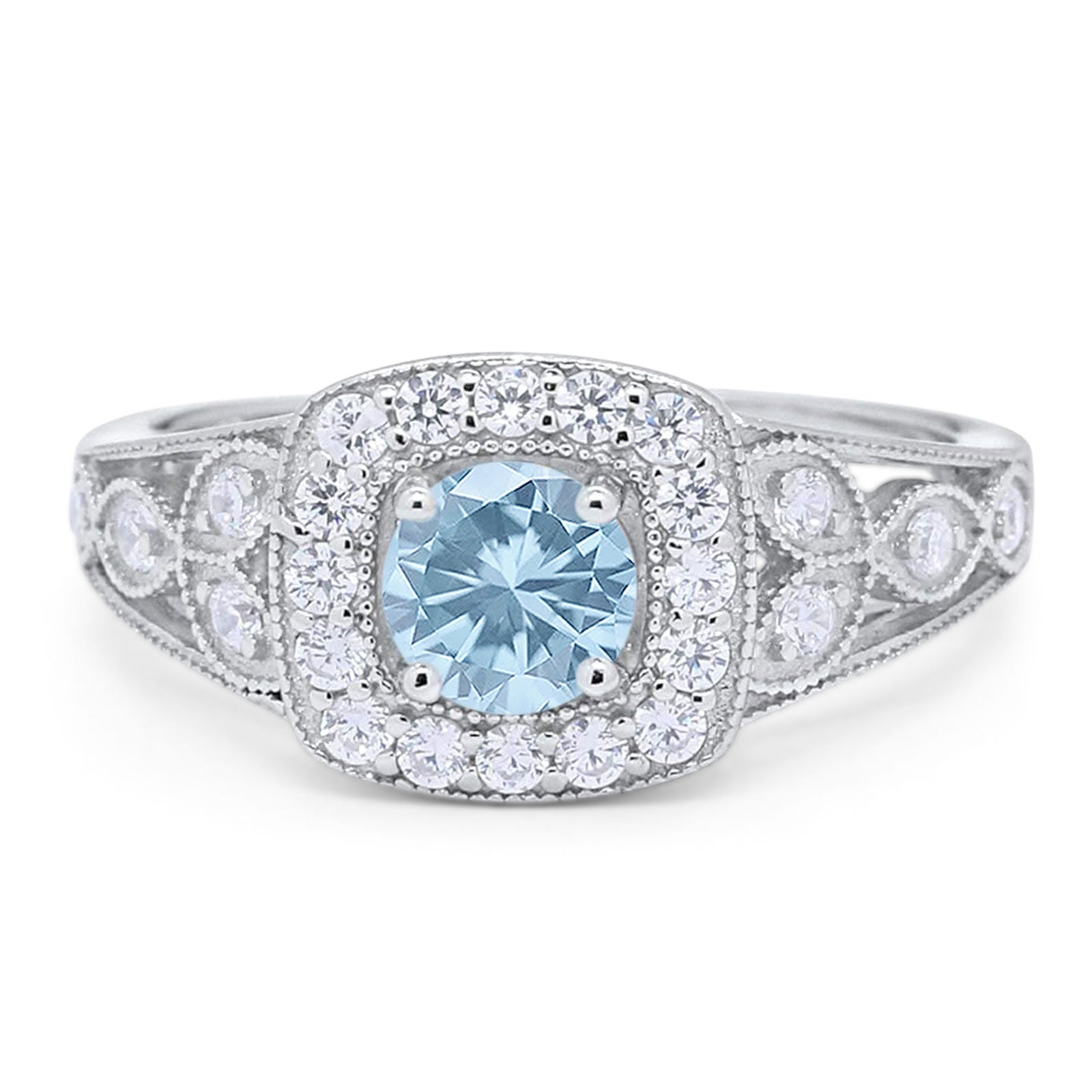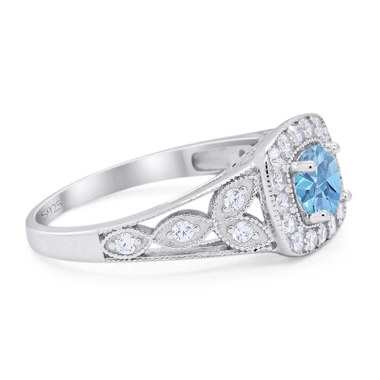 Floral Round Natural Aquamarine Split Shank Ring 925 Sterling Silver