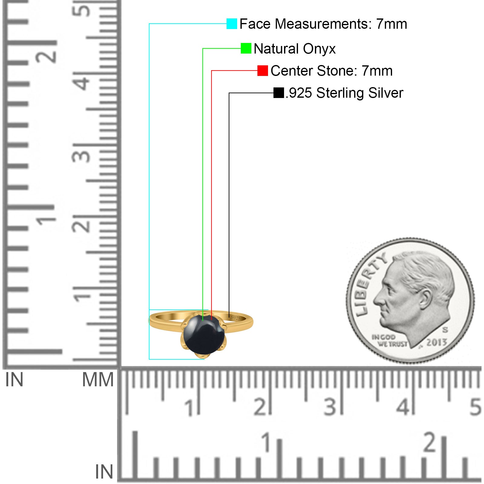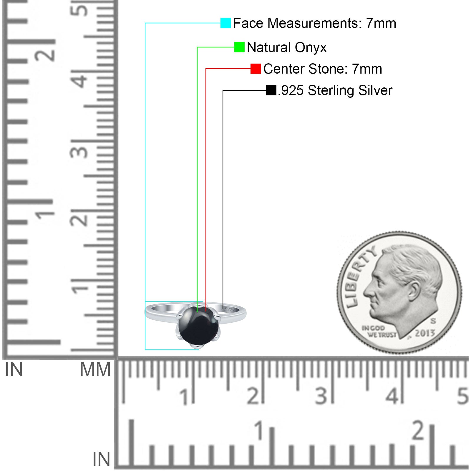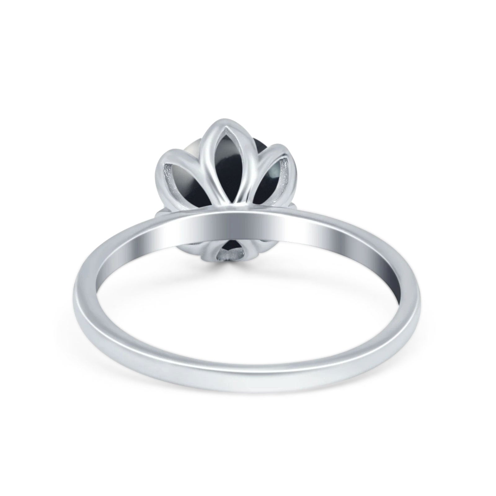 Floral Round Natural Black Onyx Solitaire Ring 925 Sterling Silver