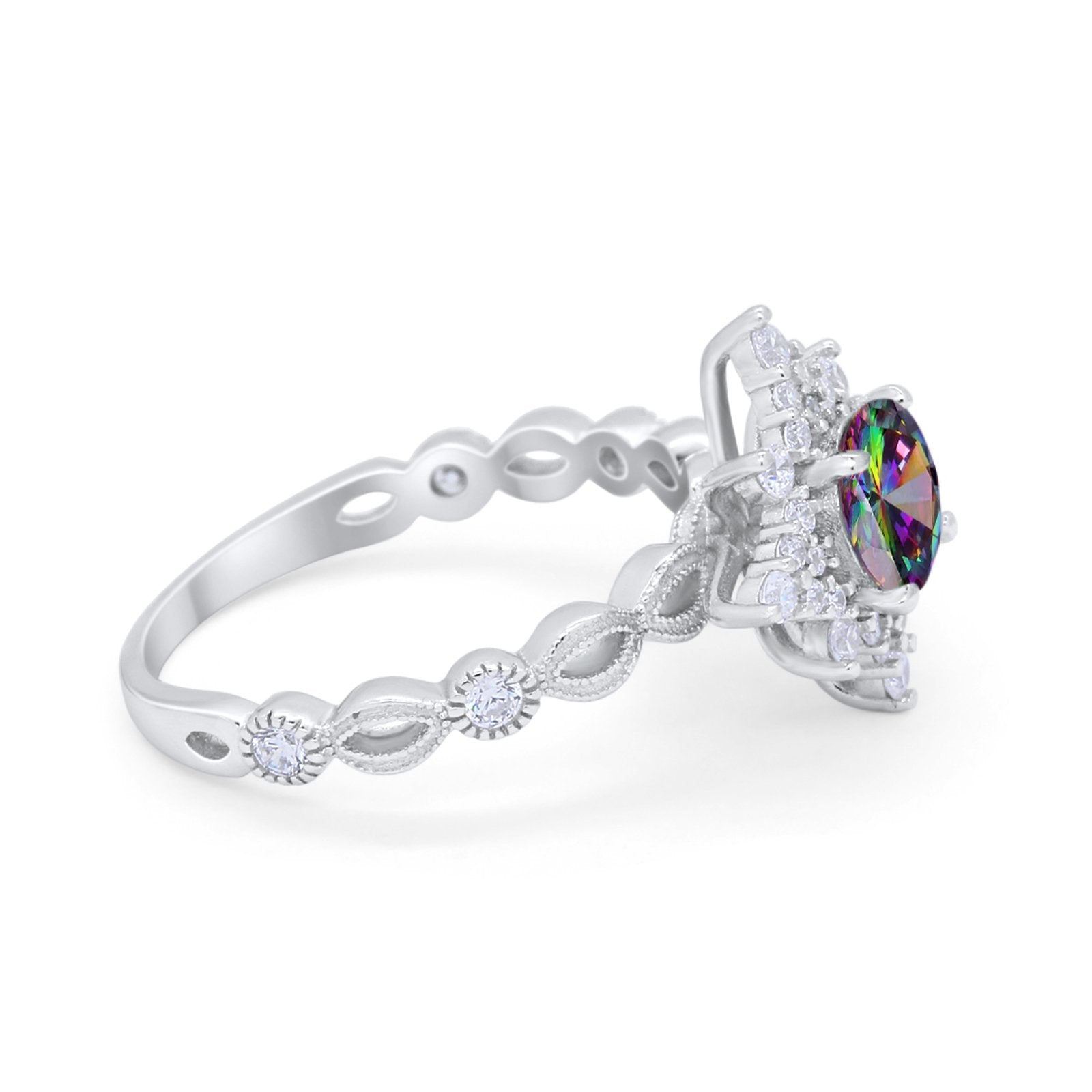 CZ & Blue Sapphire CZ Rose Tone Silver