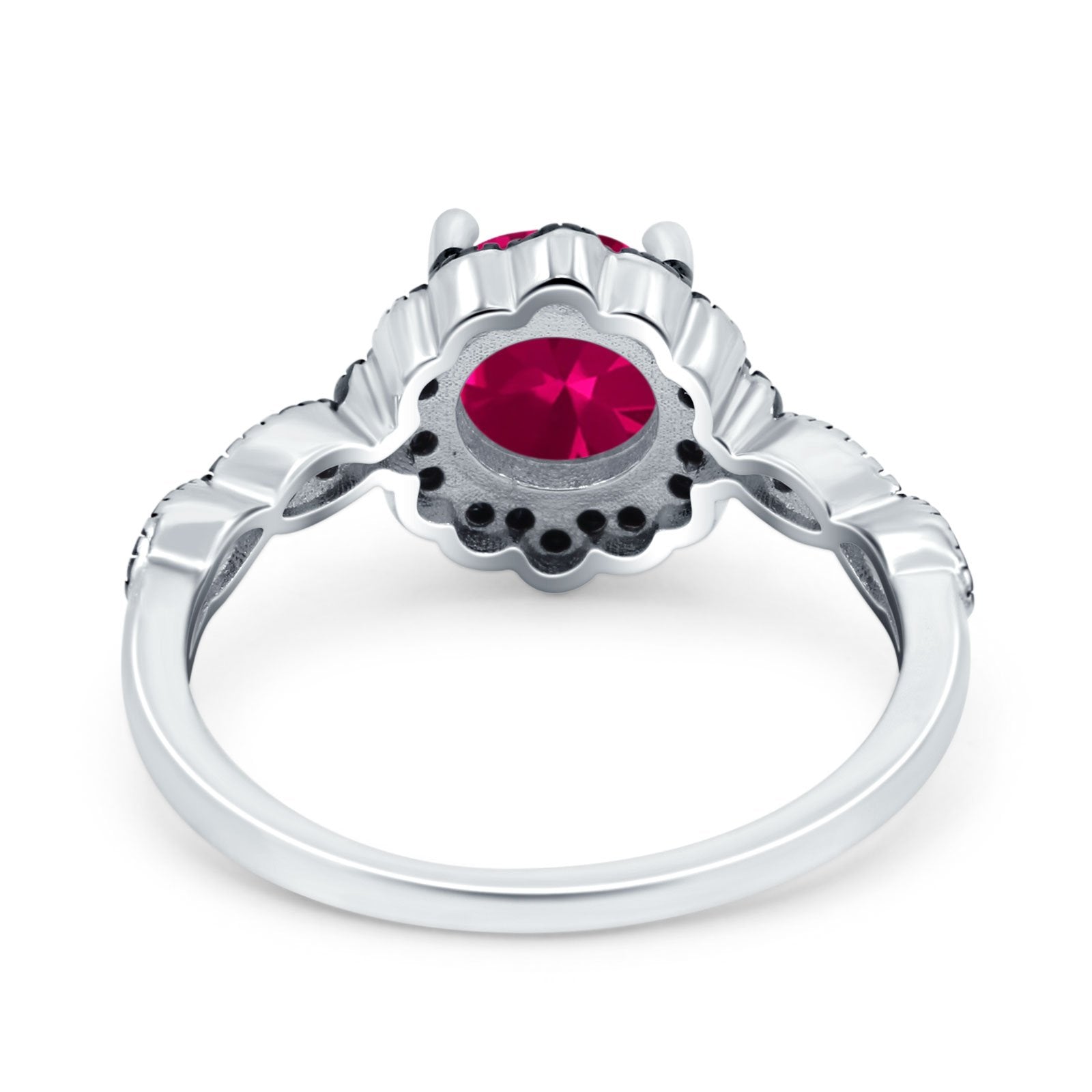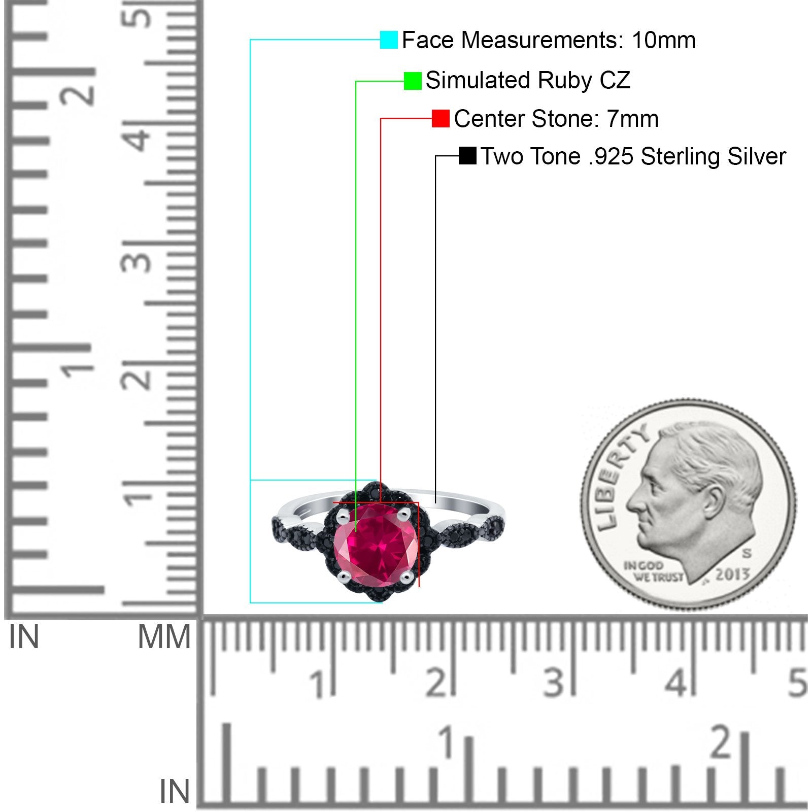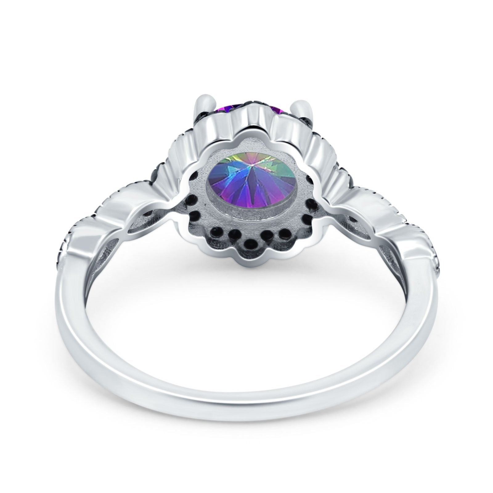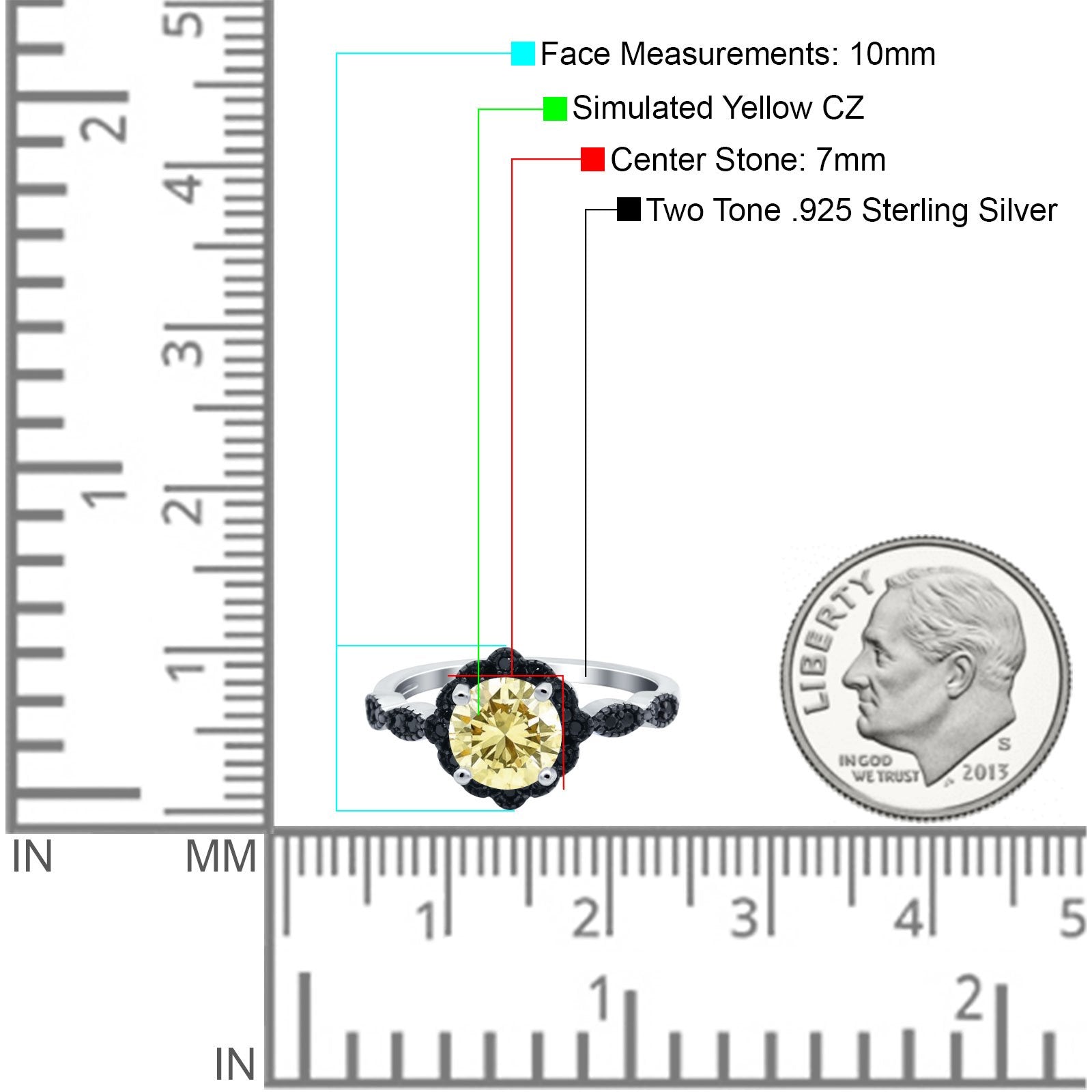 Flower Art Deco Wedding Ring Round Black Simulated Cubic Zirconia 925 Sterling Silver