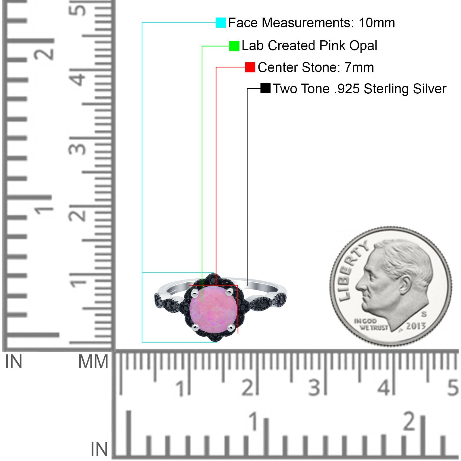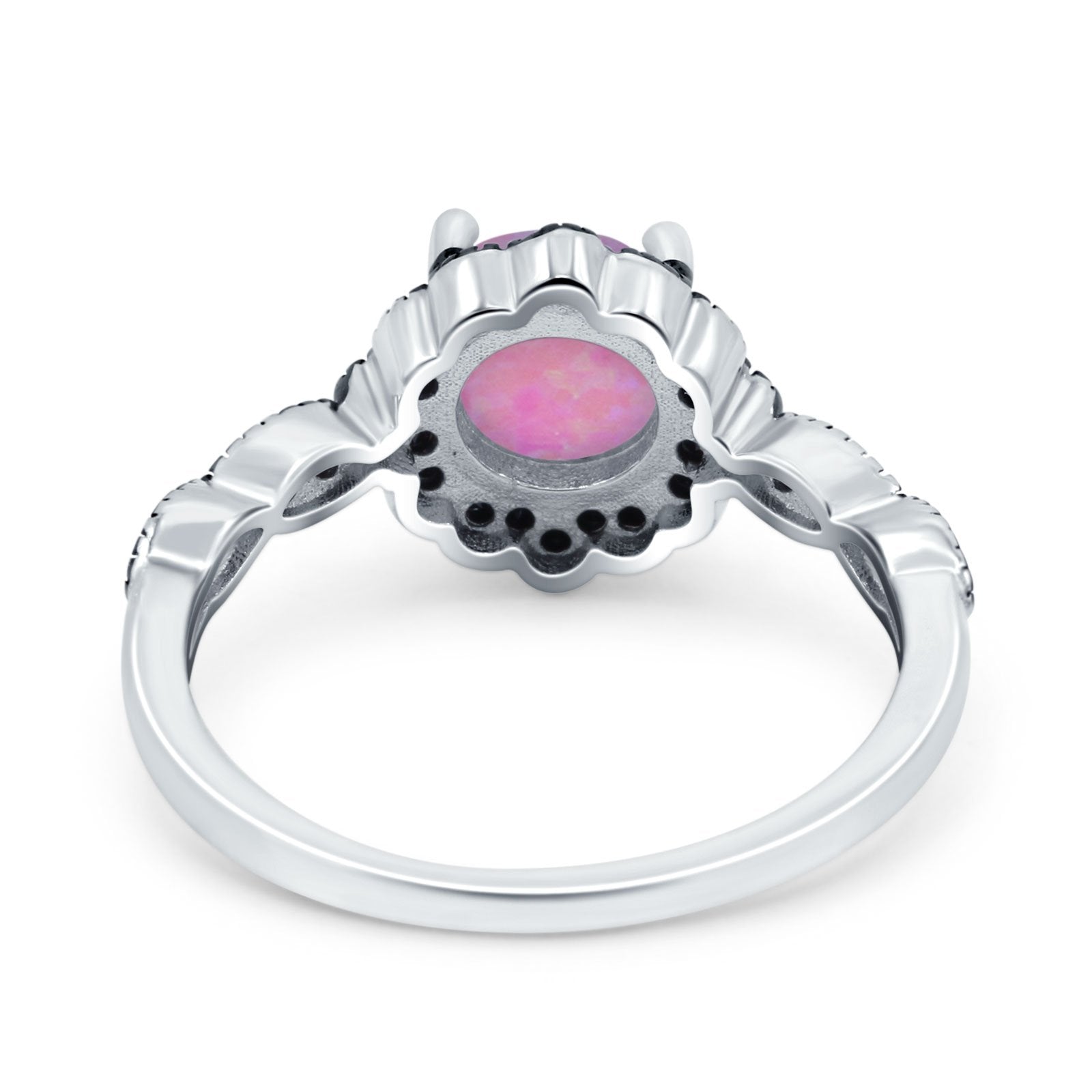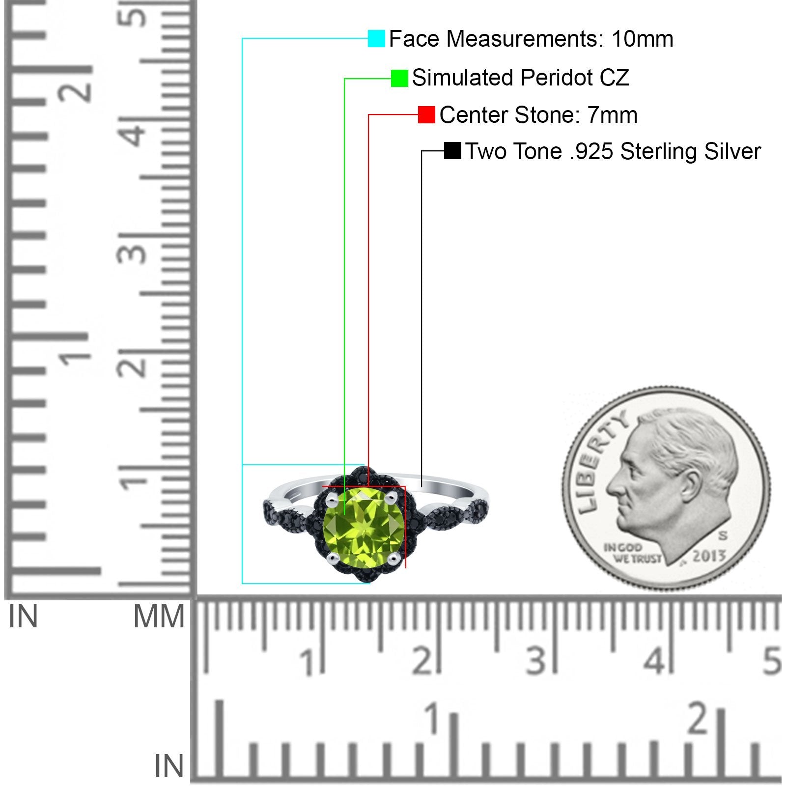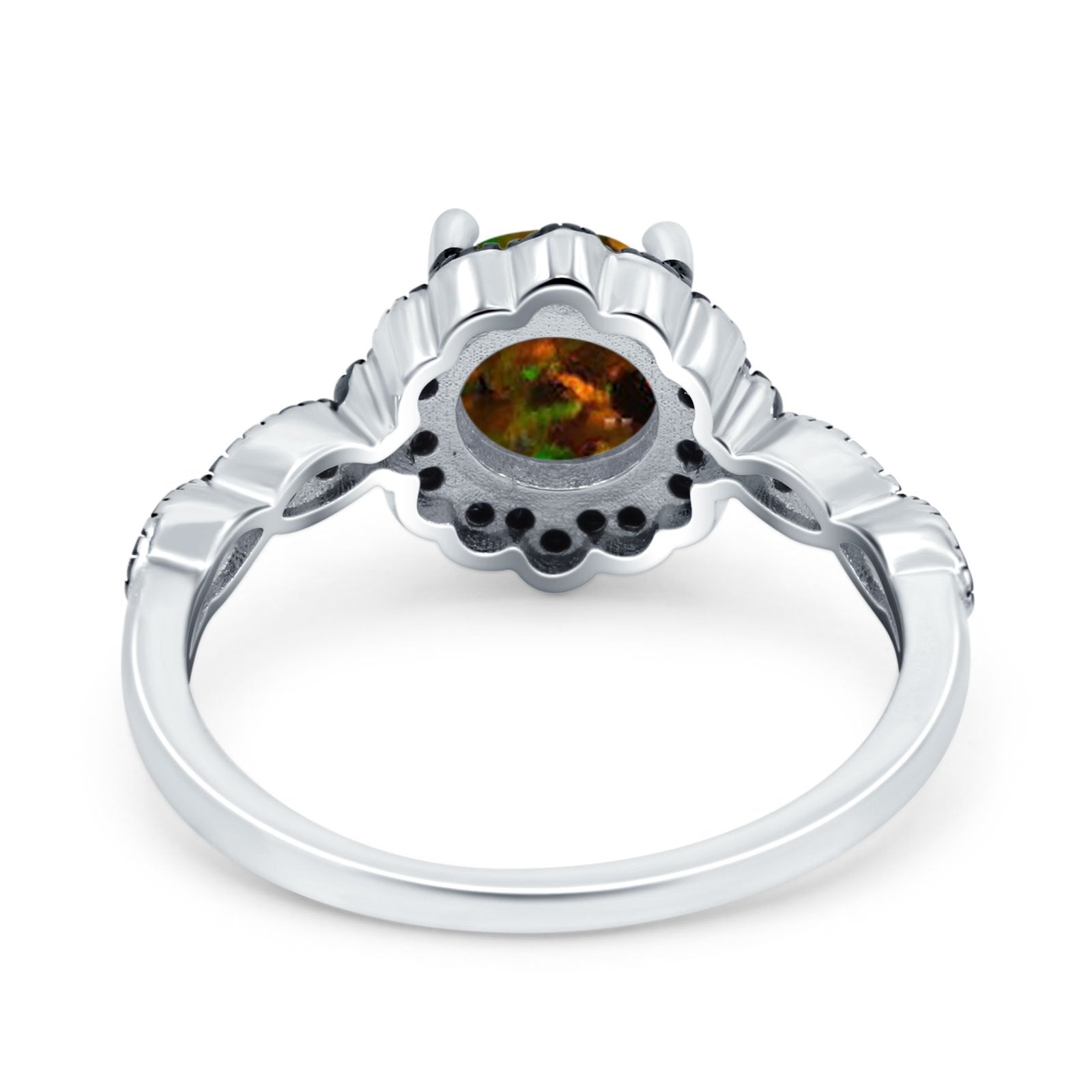 Flower Art Deco Wedding Ring Round Black Simulated Cubic Zirconia 925 Sterling Silver