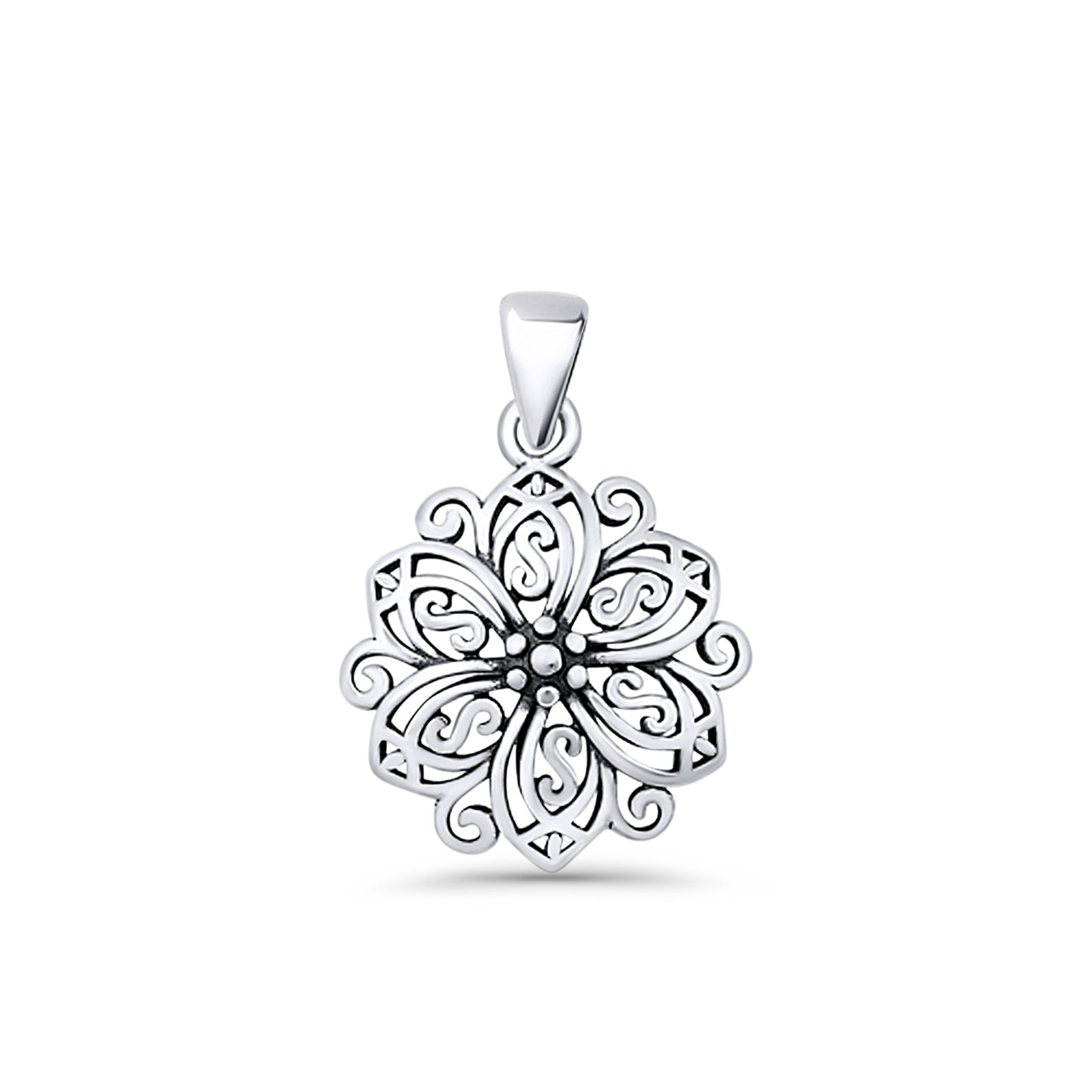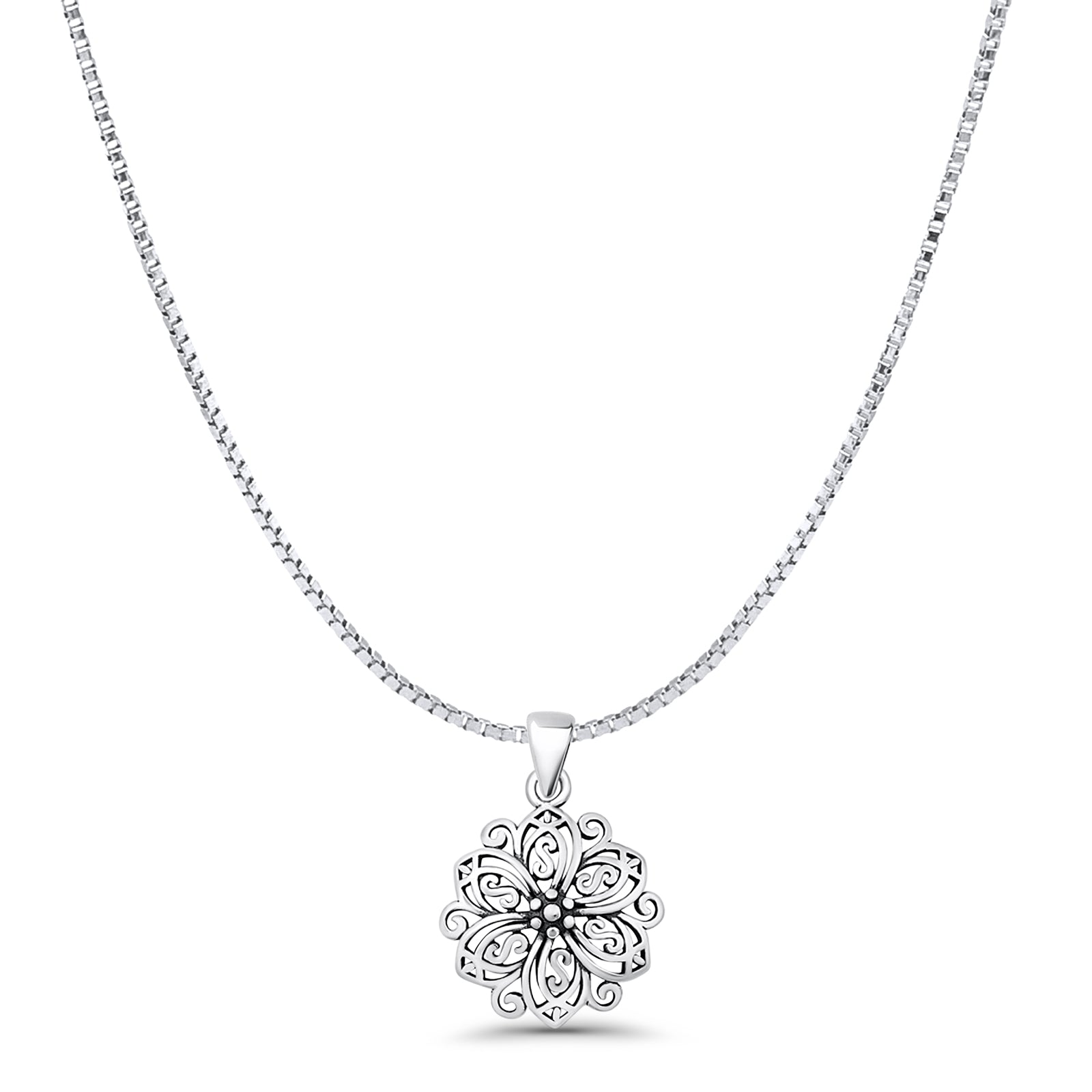Flower Charm Pendant Box Chain Necklace Oxidized 925 Sterling Silver