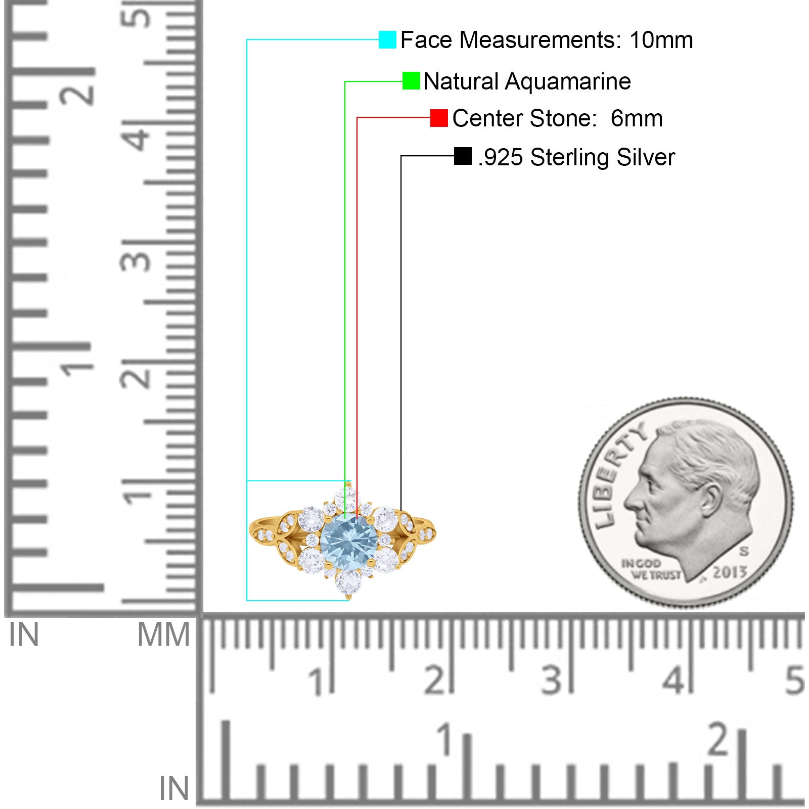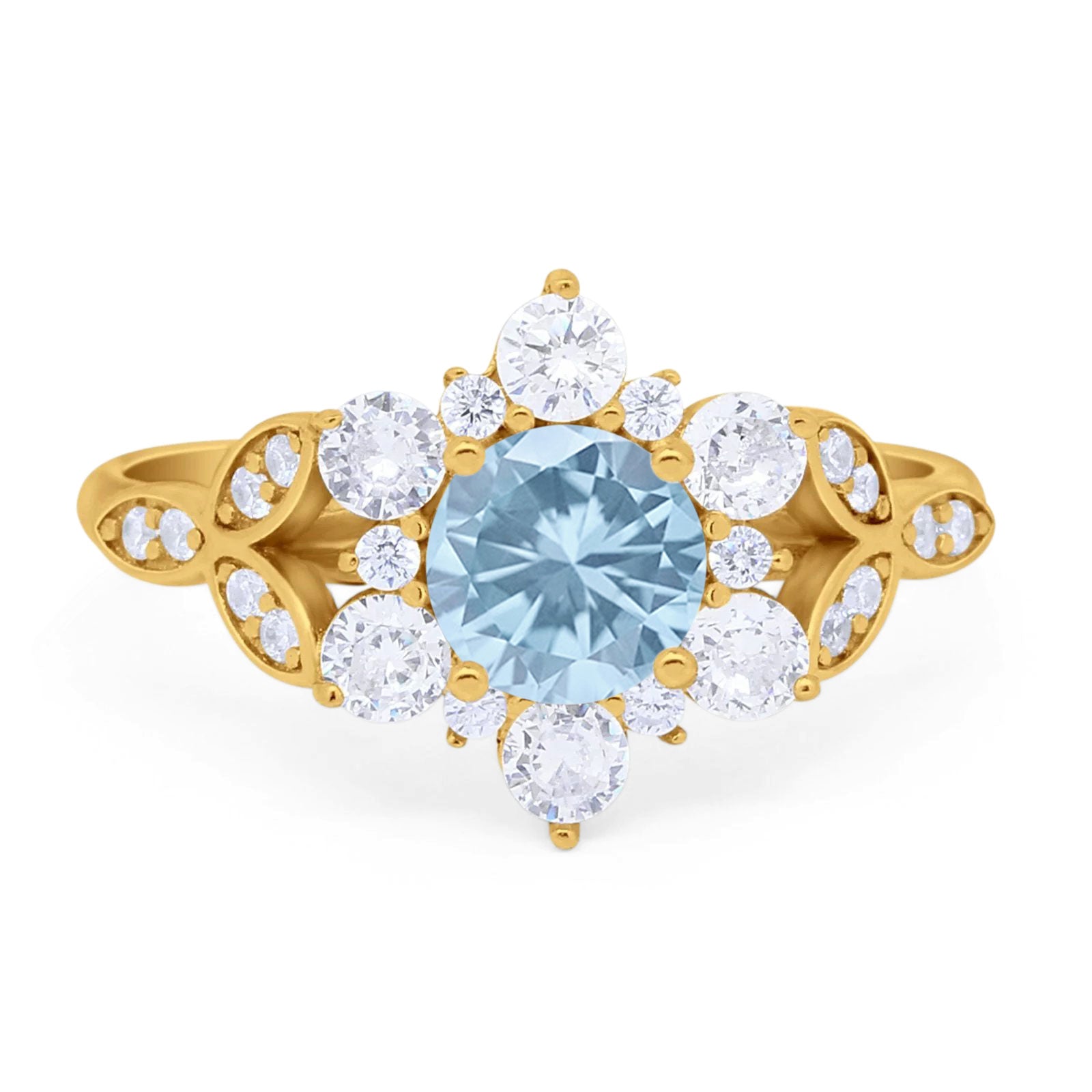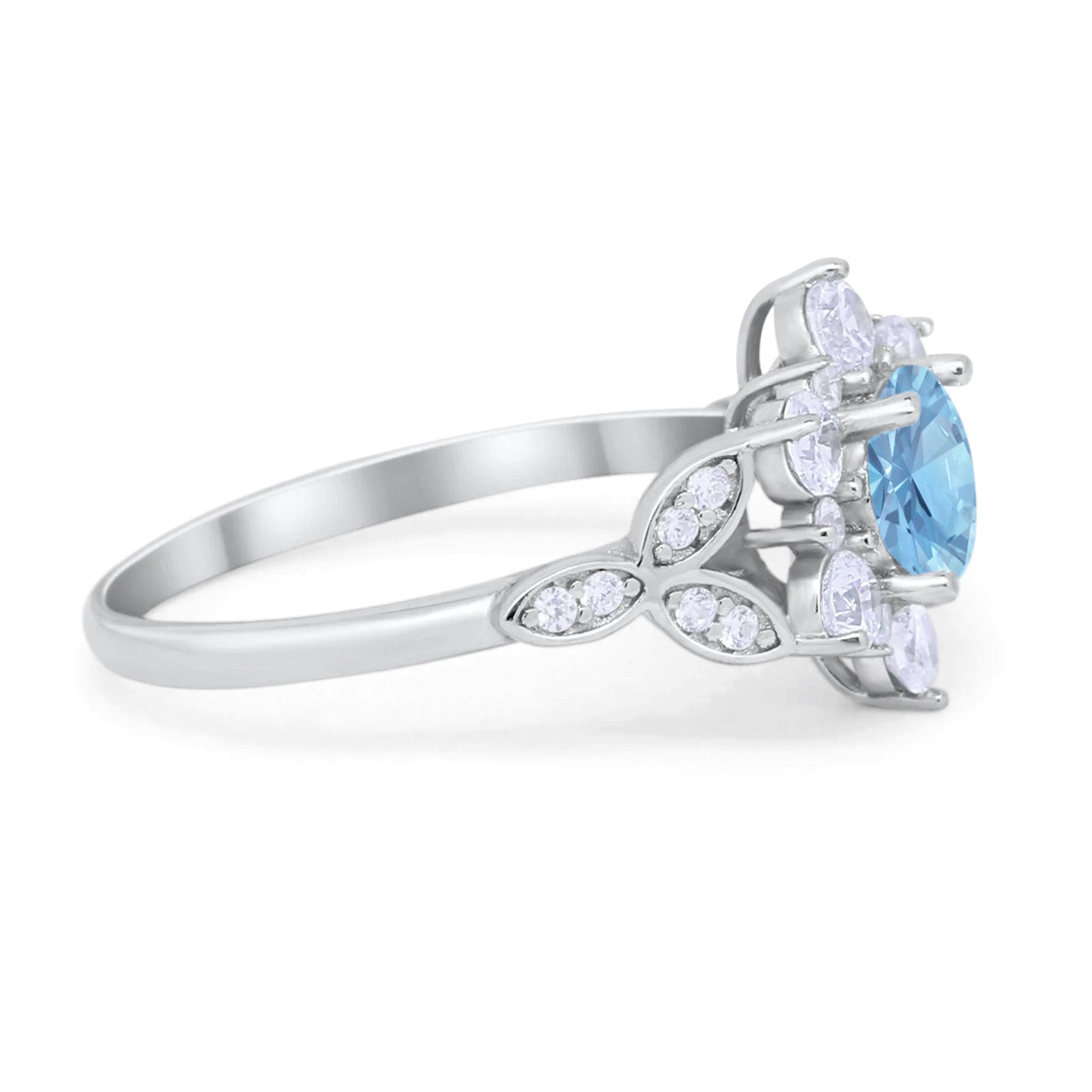 Flower Round Natural Aquamarine Halo Trillium Ring 925 Sterling Silver