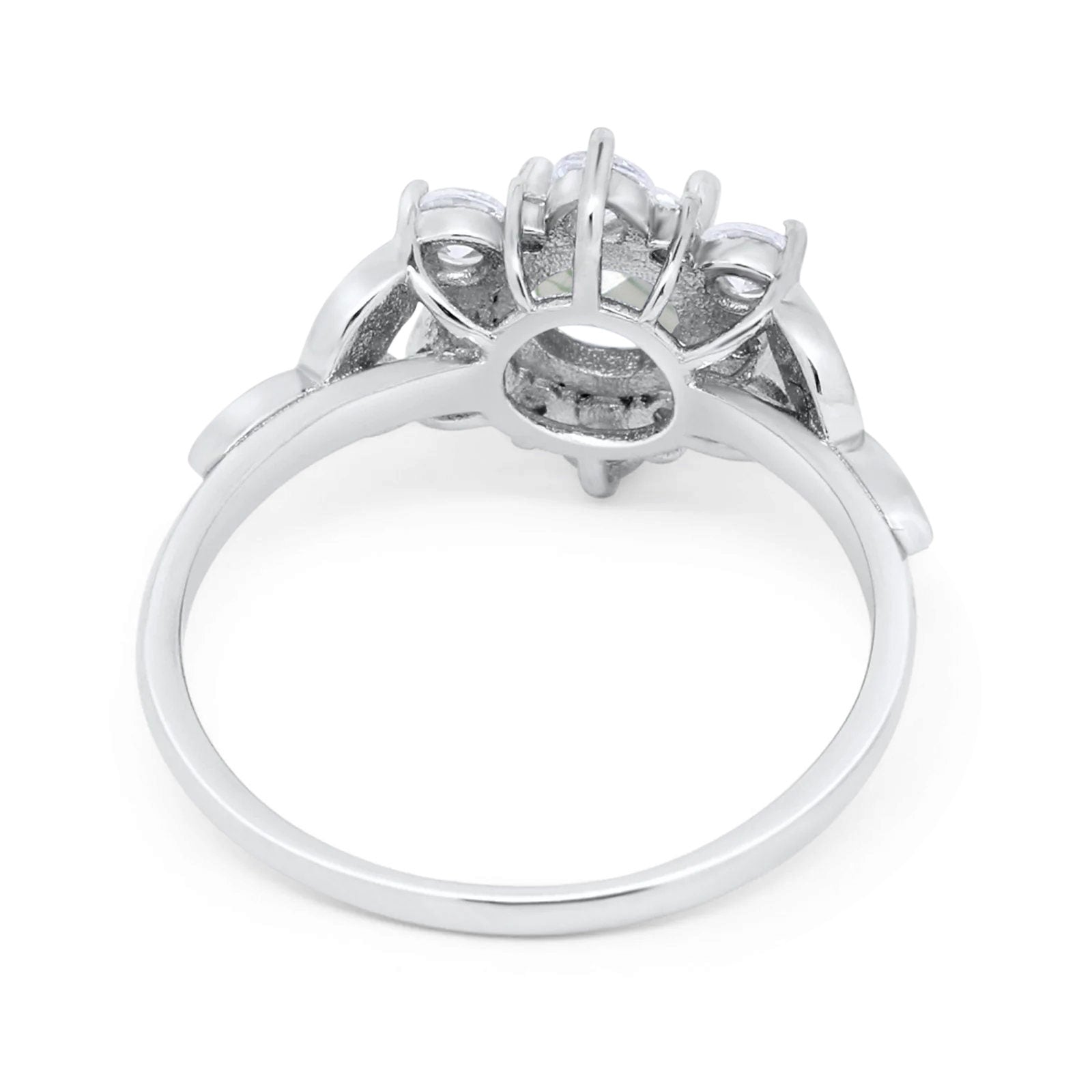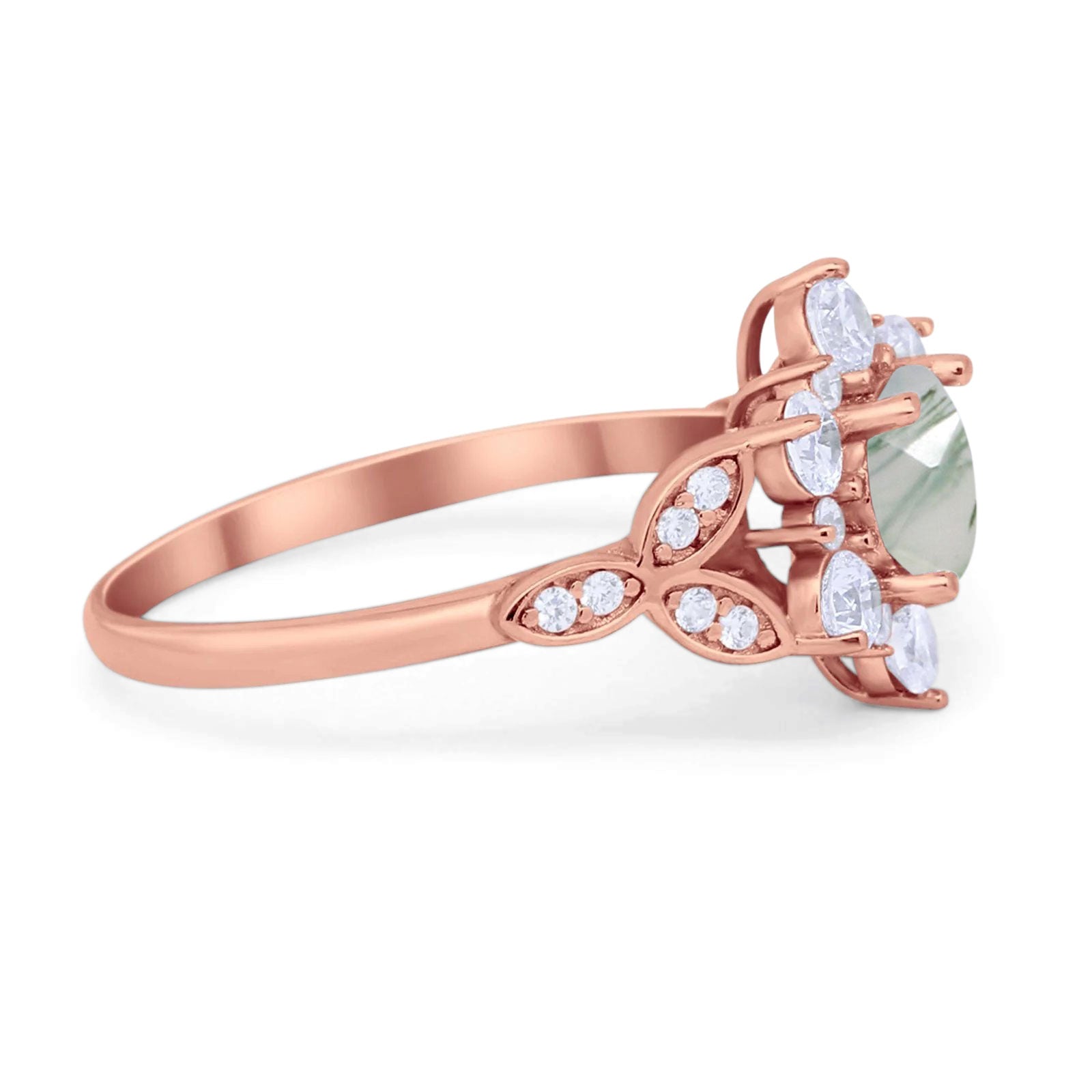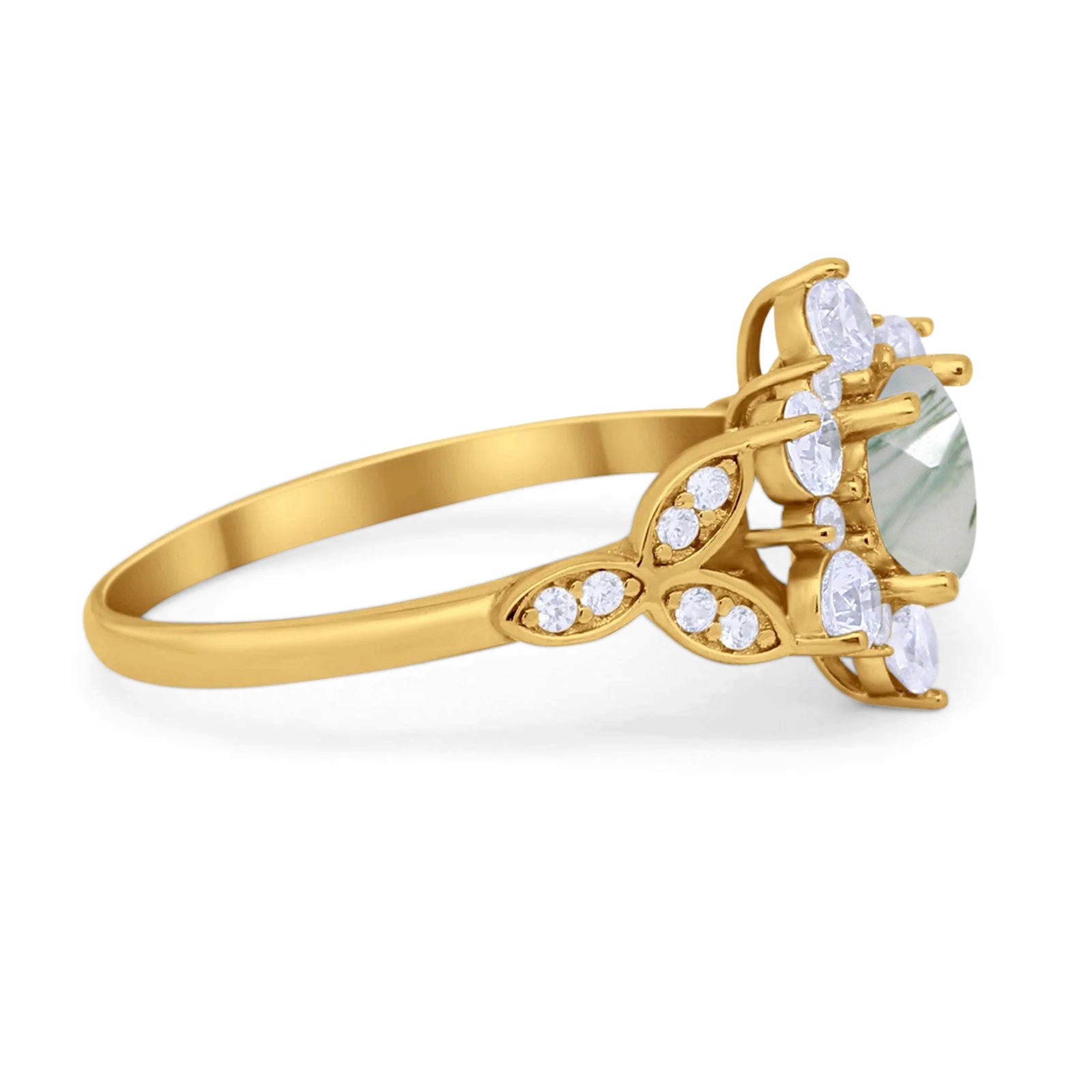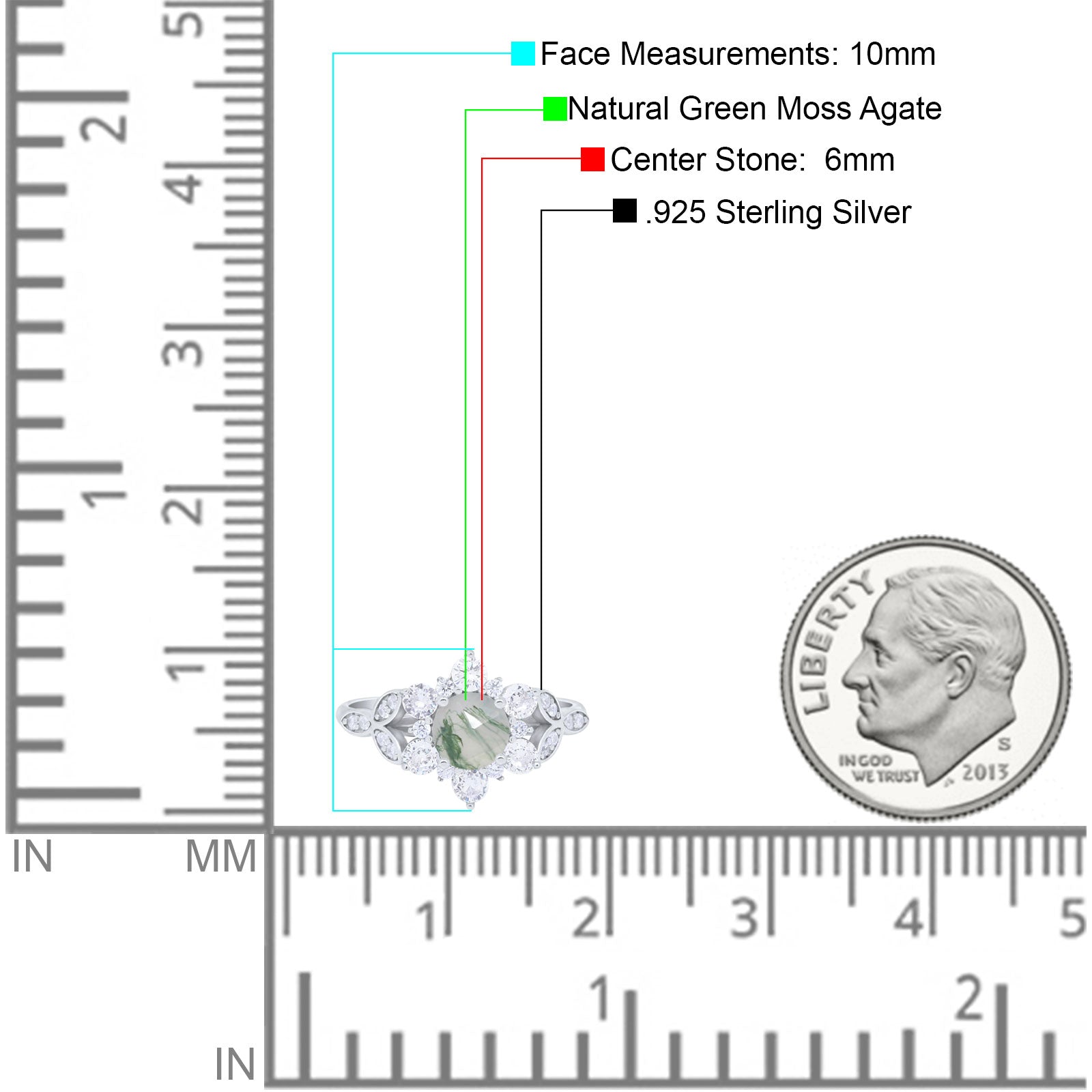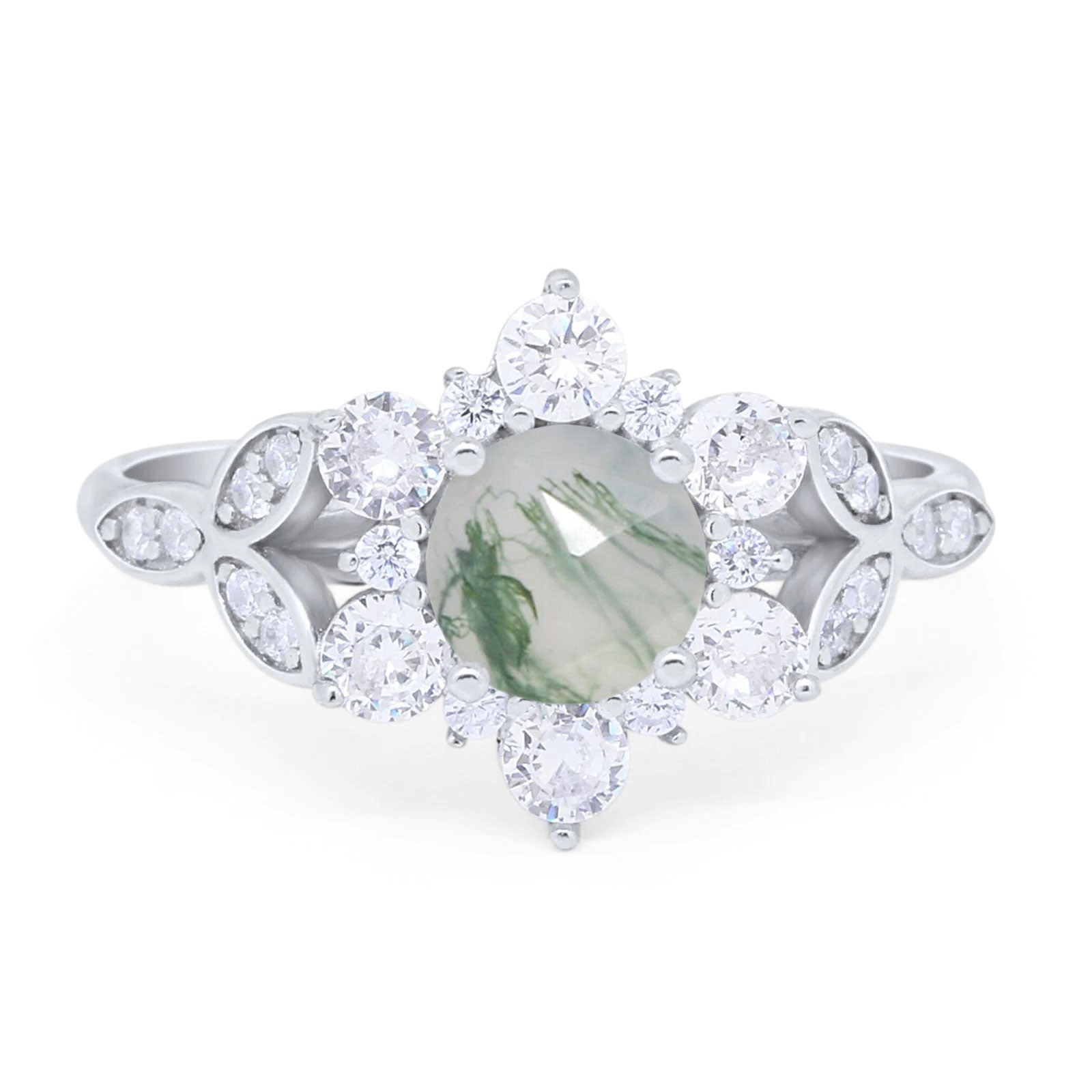 Flower Round Natural Green Moss Agate Halo Trillium Ring 925 Sterling Silver