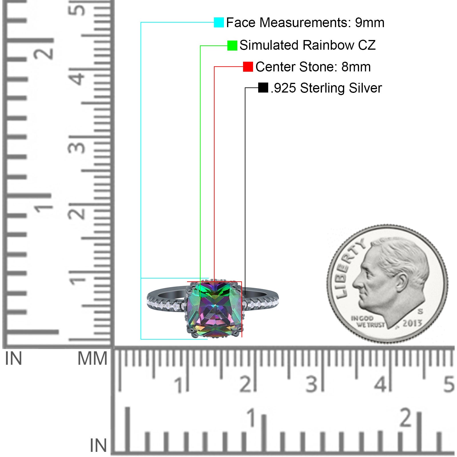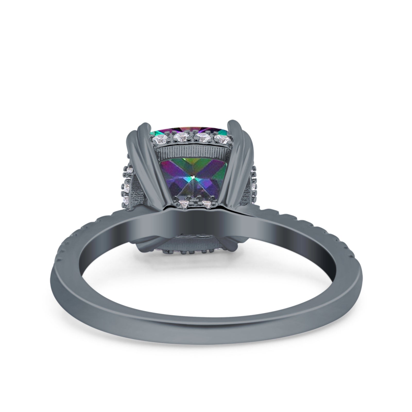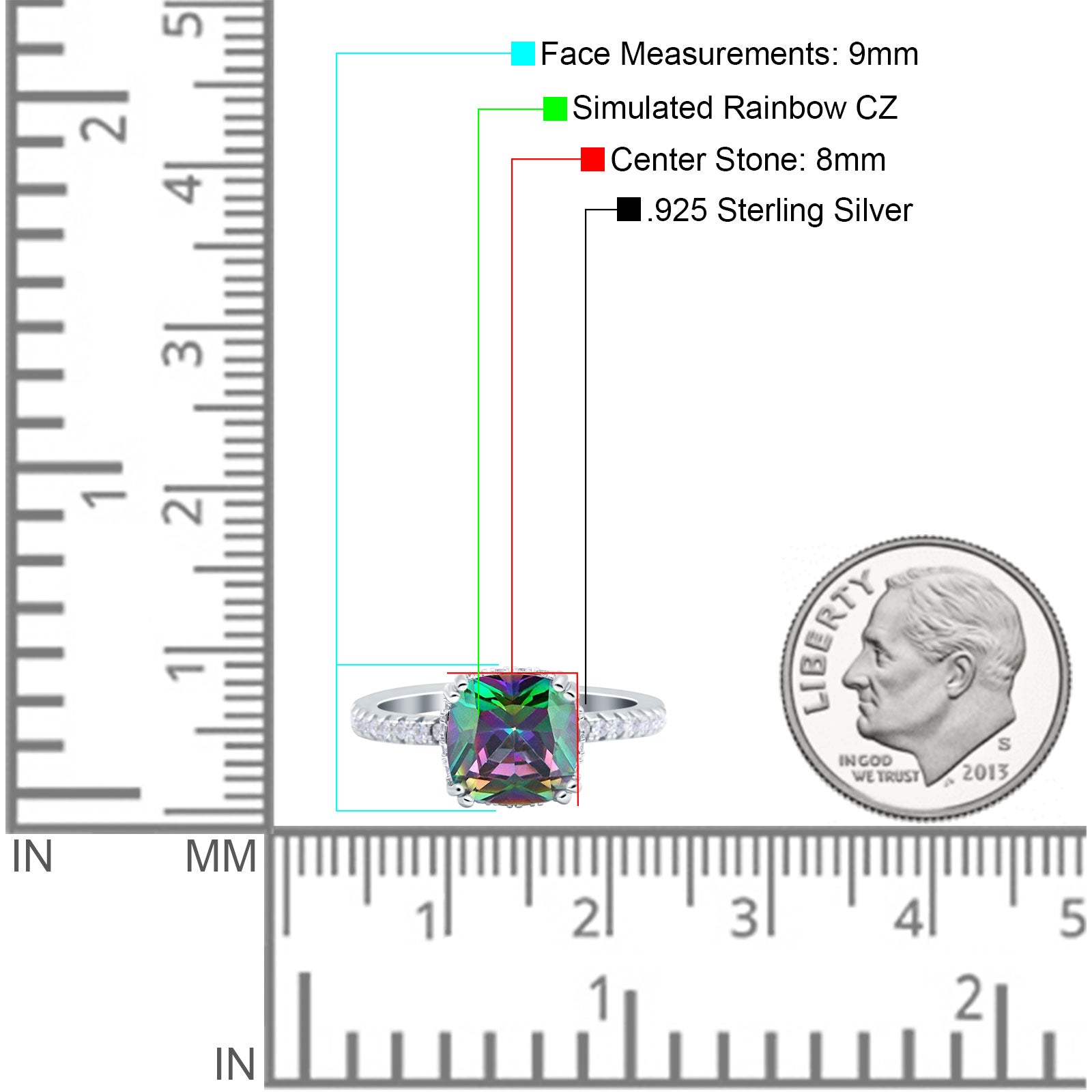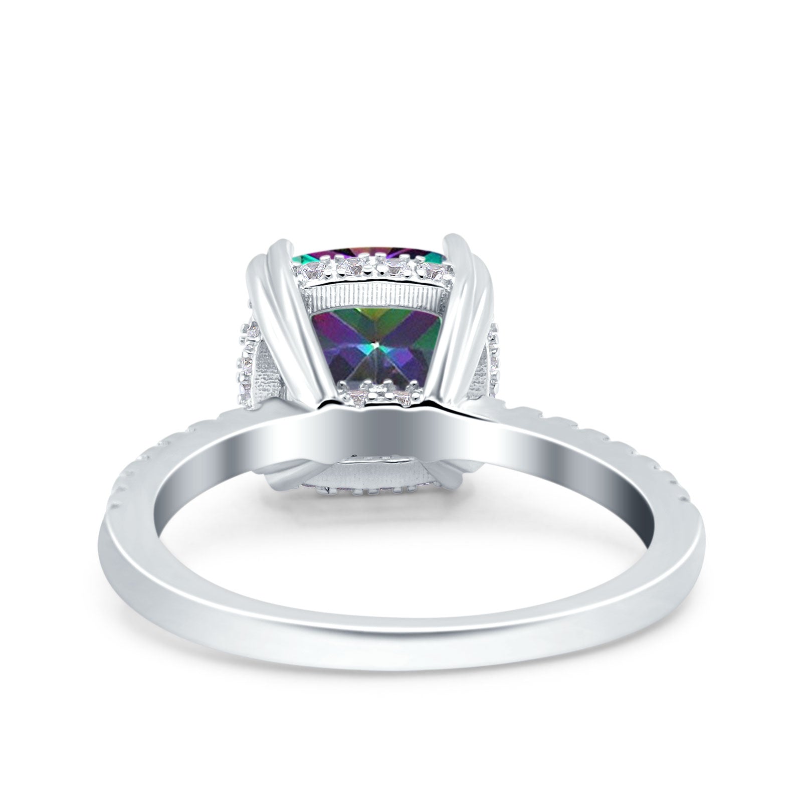 Half Eternity Art Deco Cushion Cut Wedding Engagement Bridal Ring Round Simulated Cubic Zirconia 925 Sterling Silver