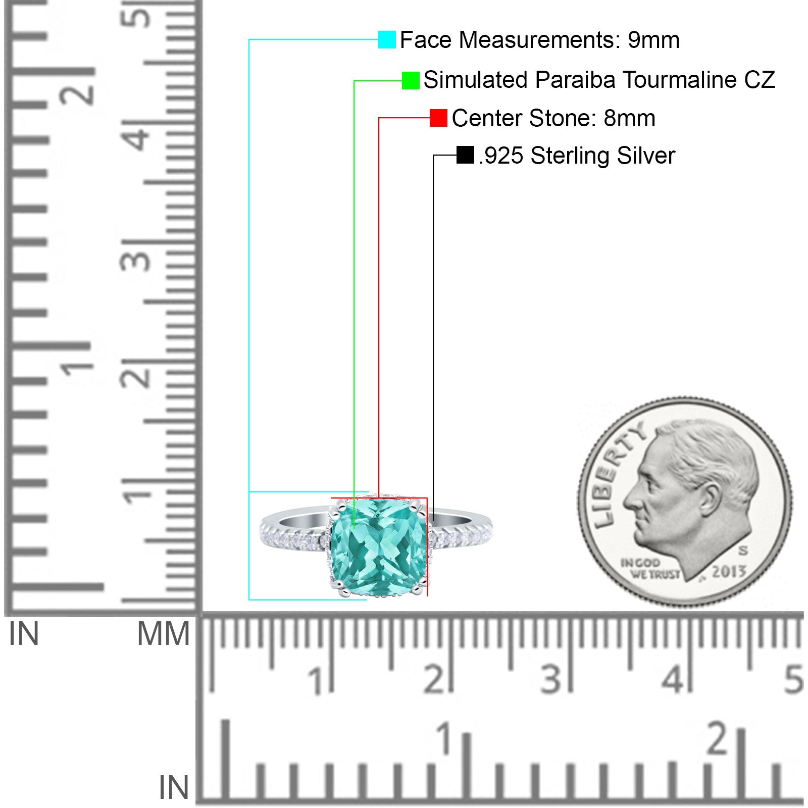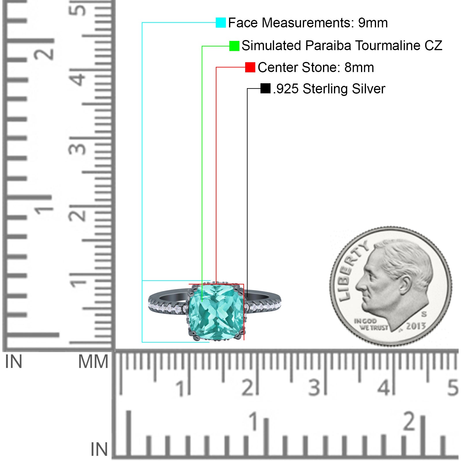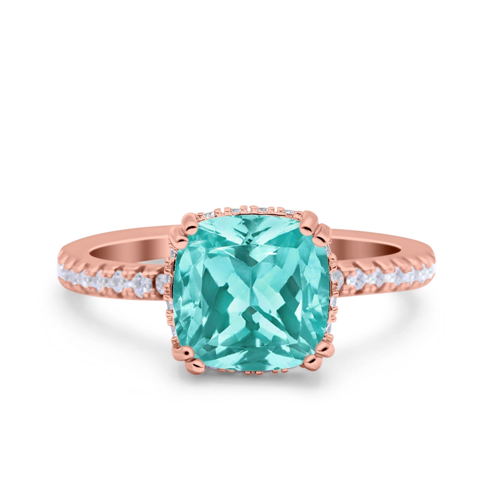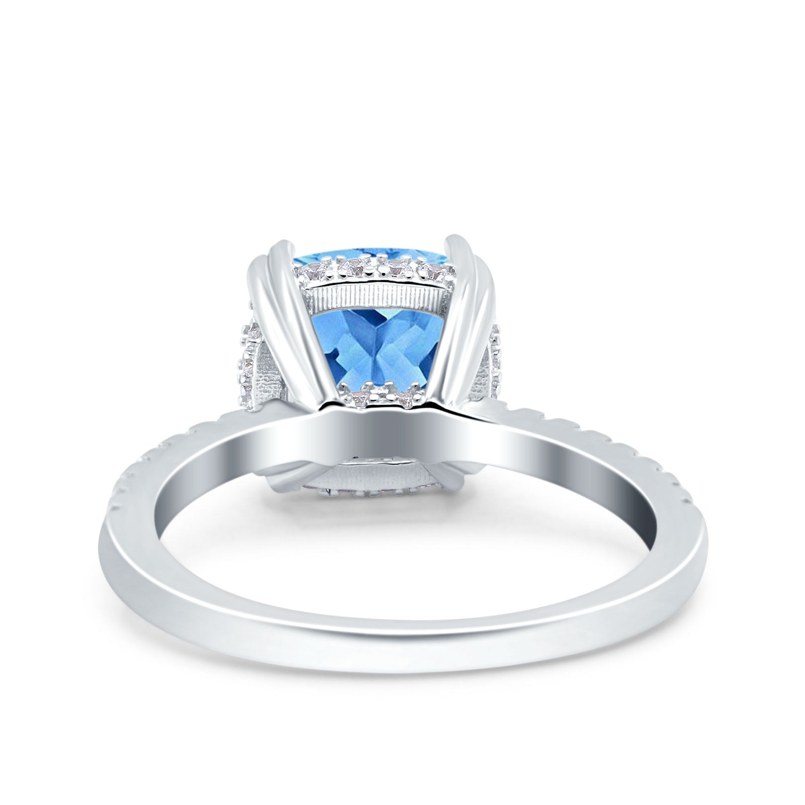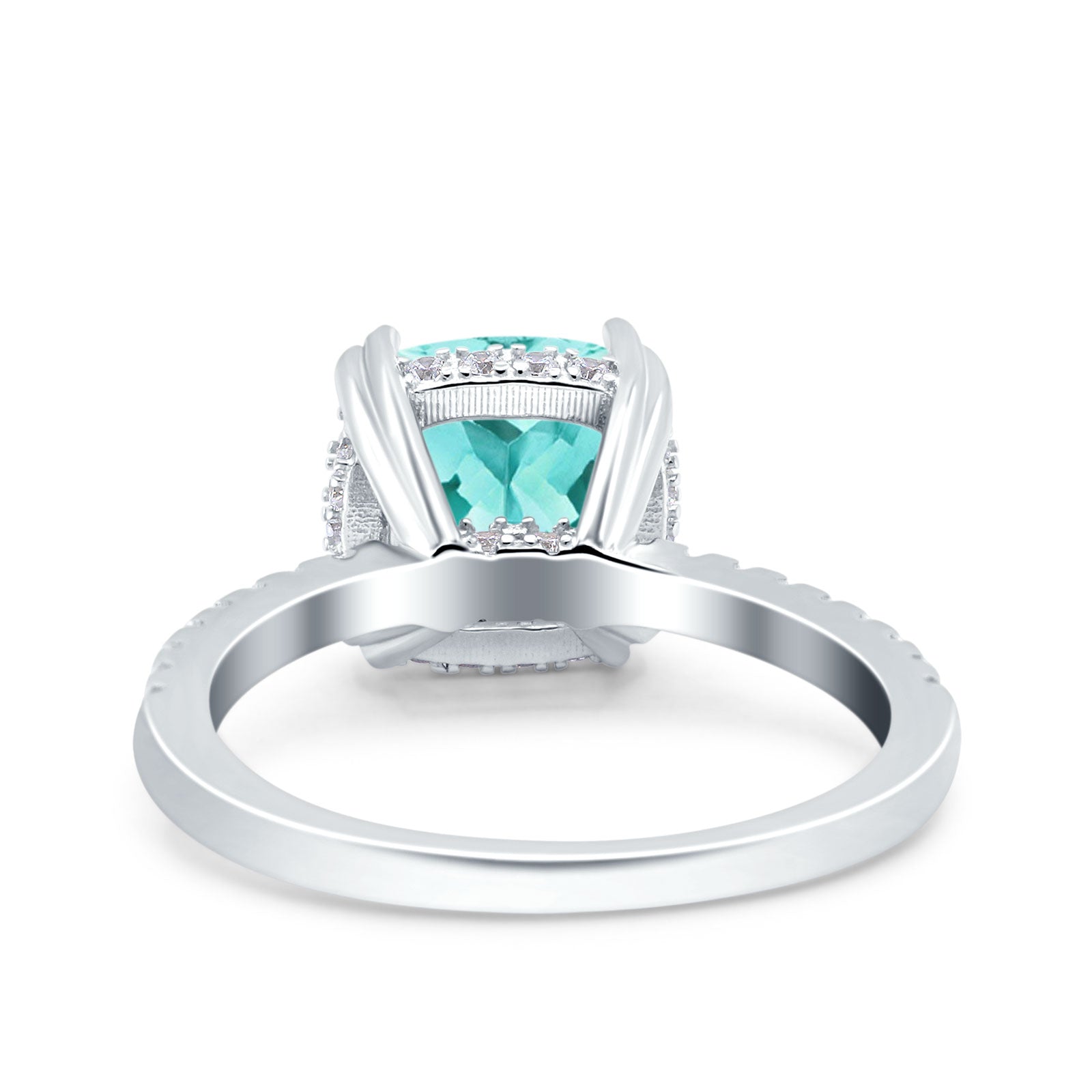 Half Eternity Art Deco Cushion Cut Wedding Engagement Bridal Ring Round Simulated Cubic Zirconia 925 Sterling Silver