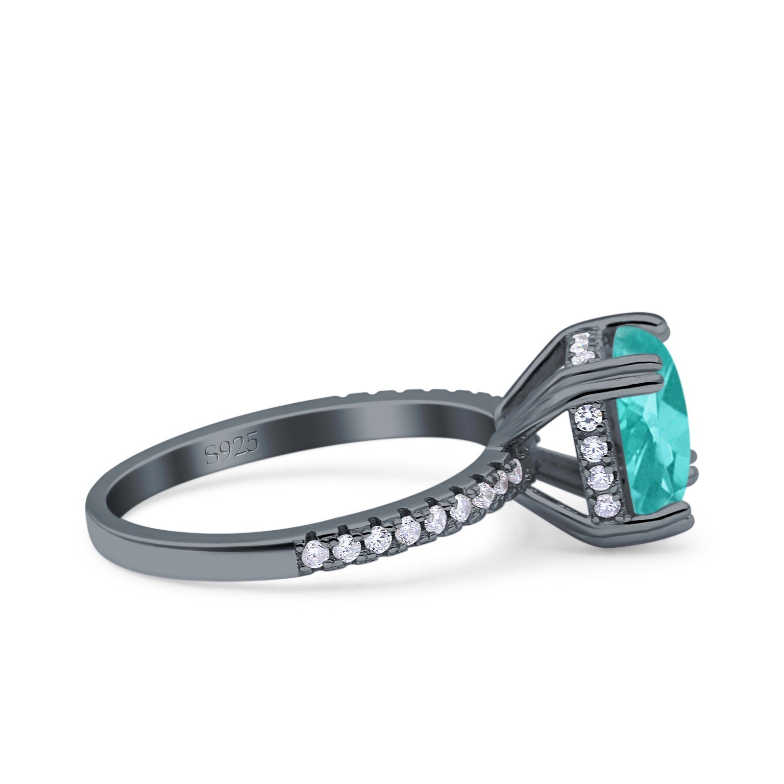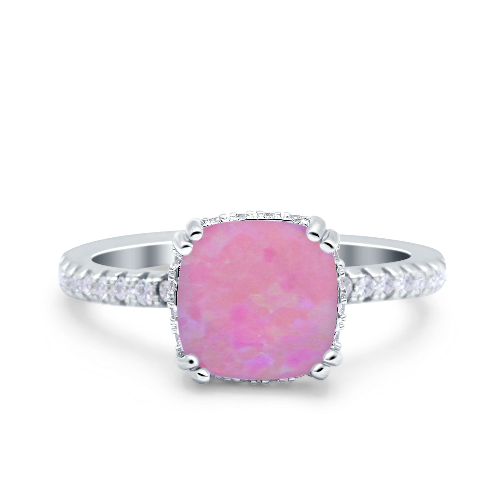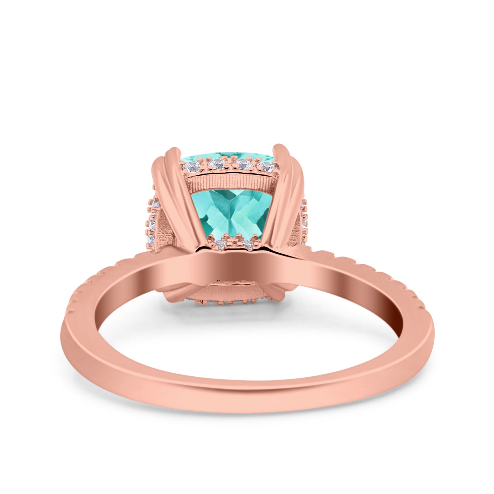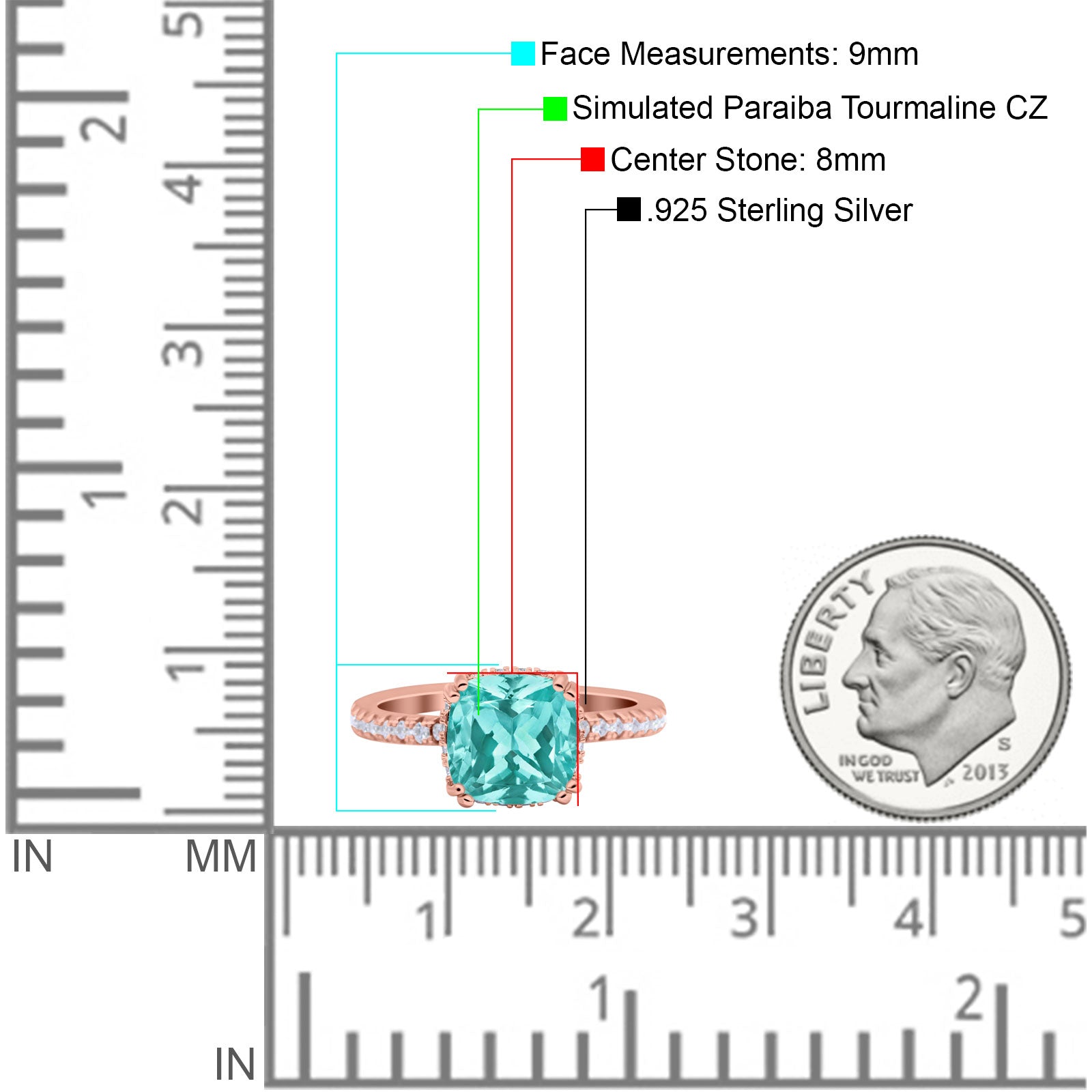 Half Eternity Art Deco Cushion Cut Wedding Engagement Bridal Ring Round Simulated Cubic Zirconia 925 Sterling Silver