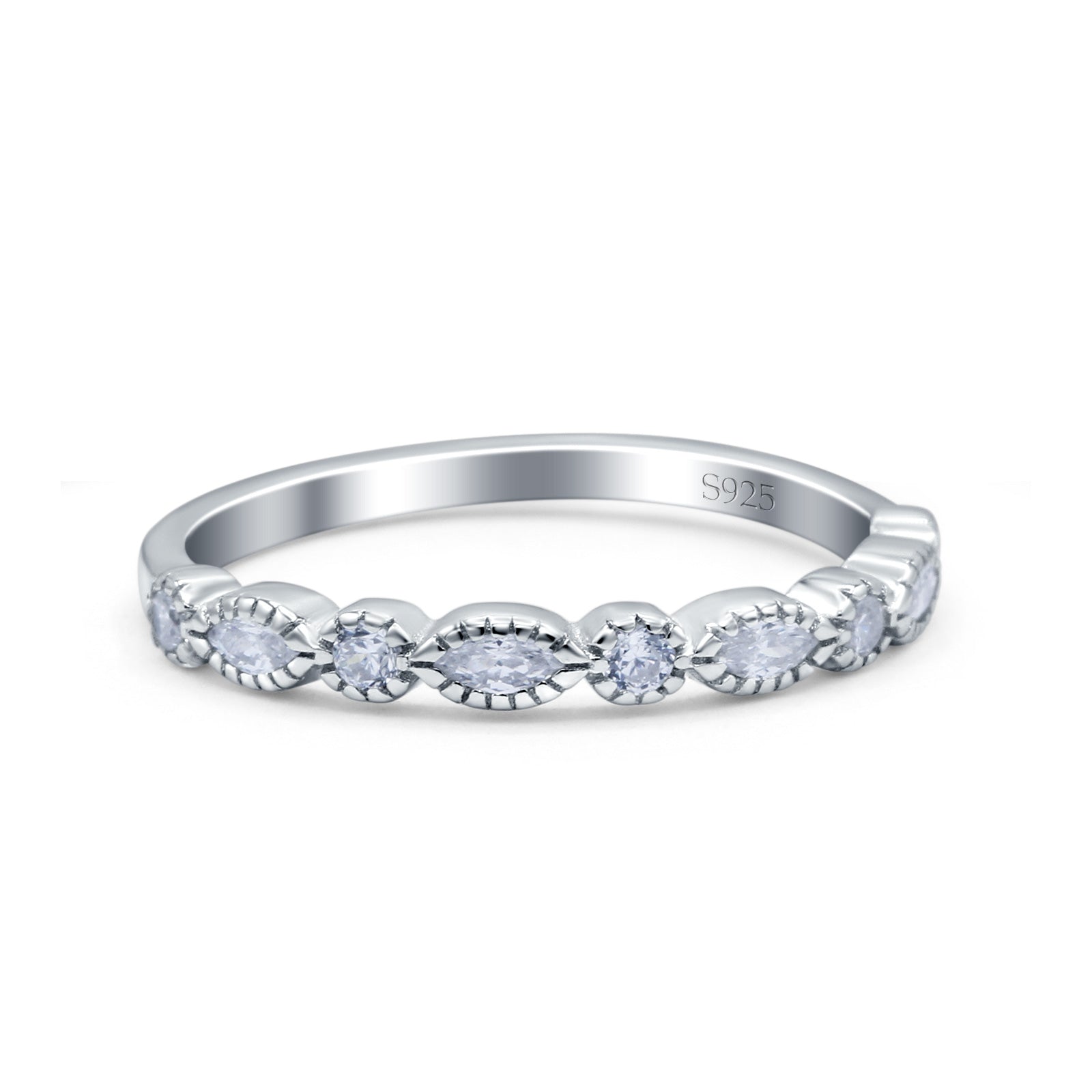 Minimalist 2.5mm Full Eternity Band CZ & Blue Sapphire CZ 925 Sterling Silver