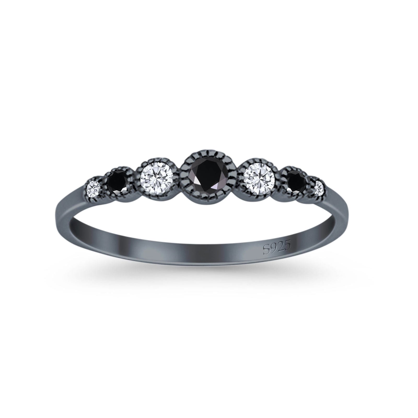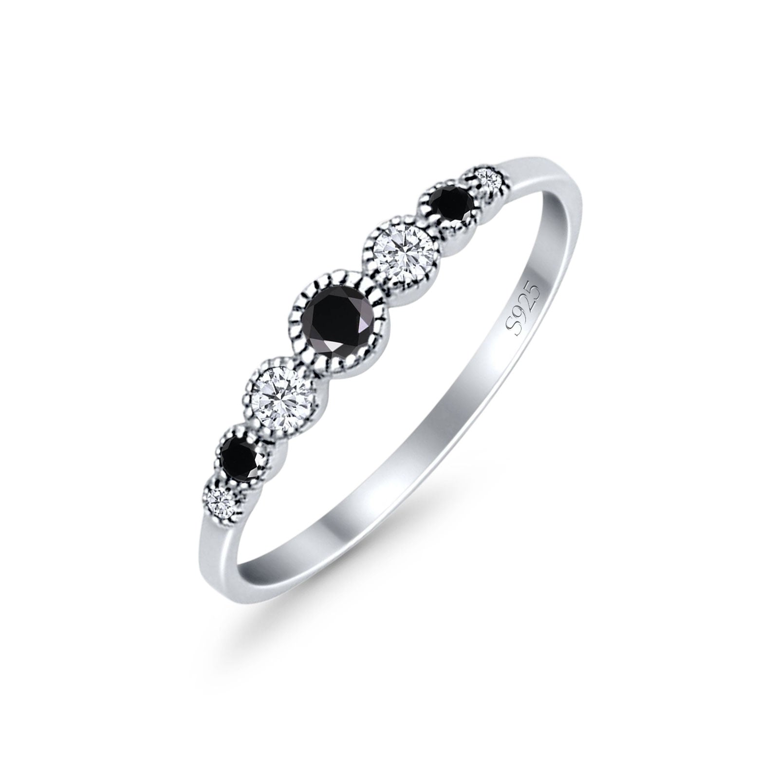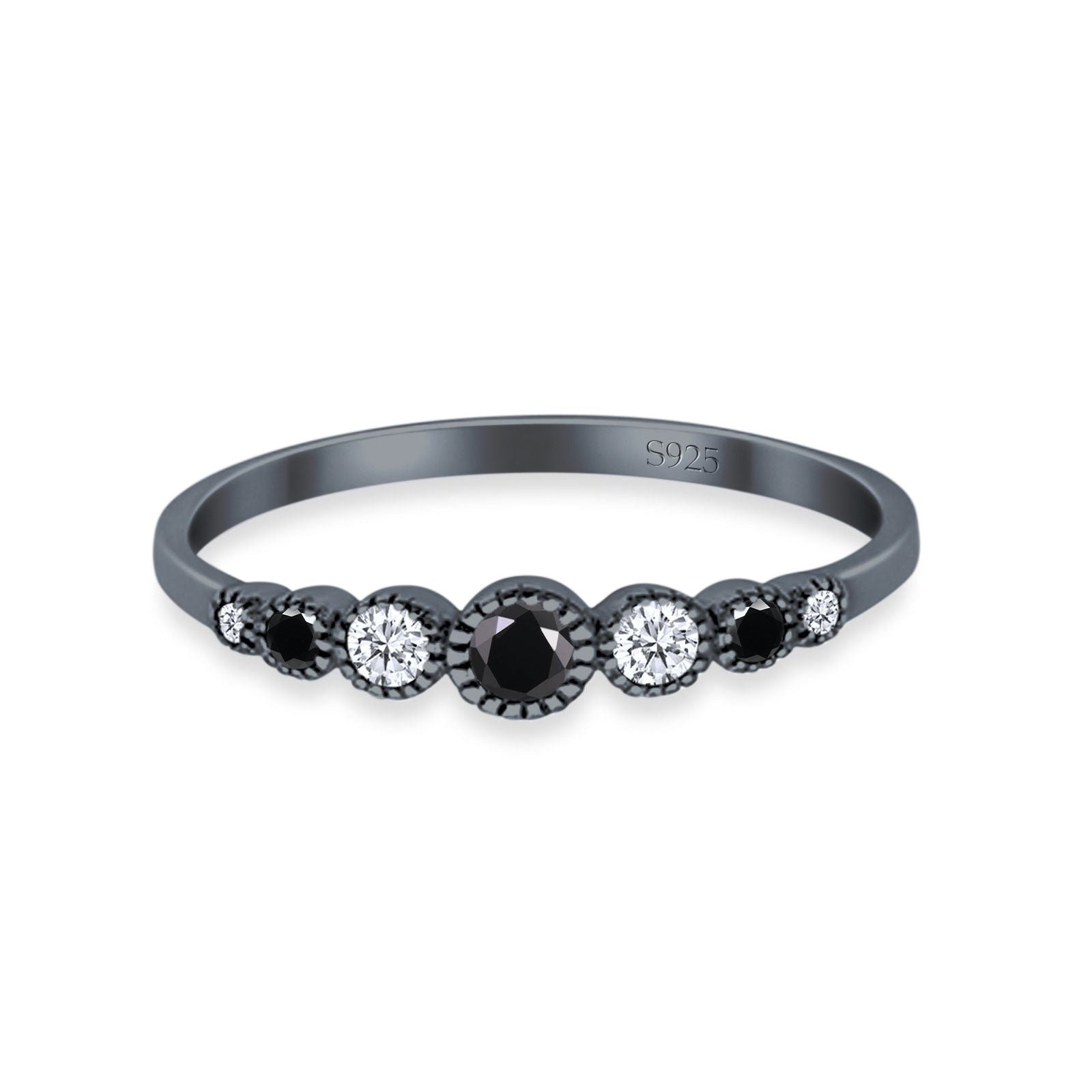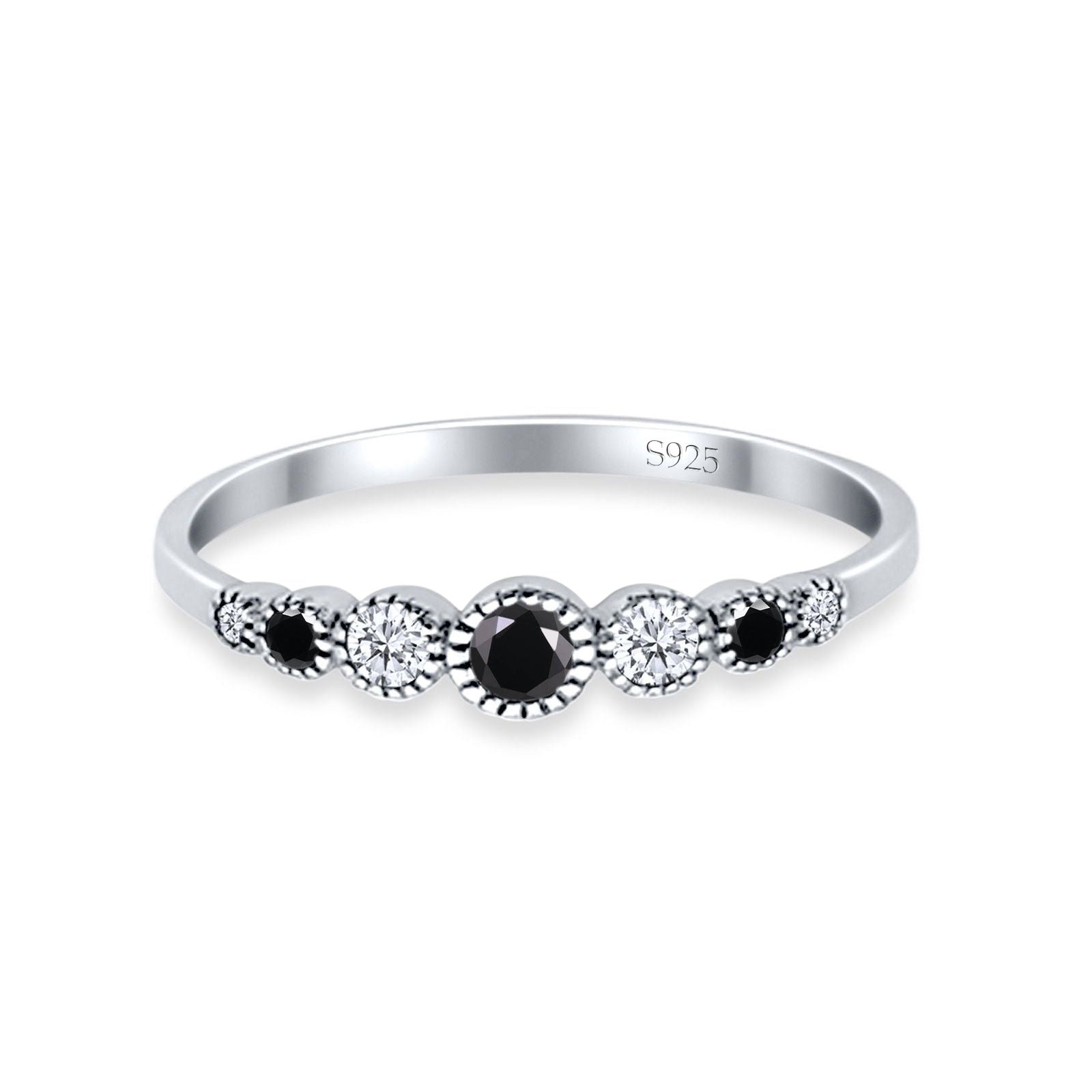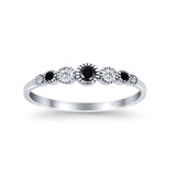 Half Eternity Band Round Simulated Black Cubic Zirconia 925 Sterling Silver (4mm)