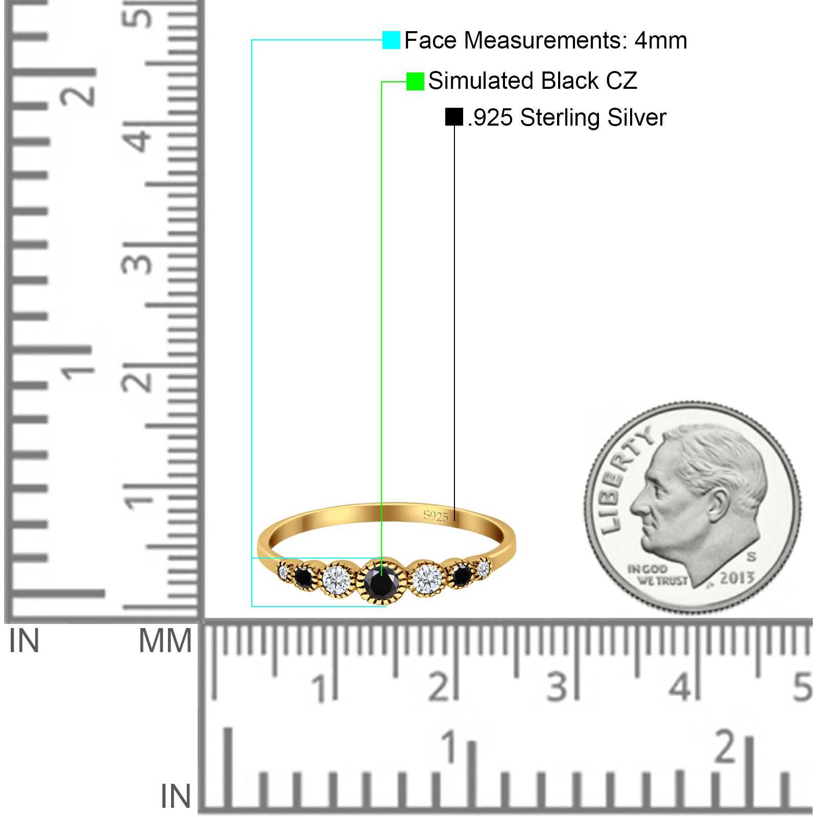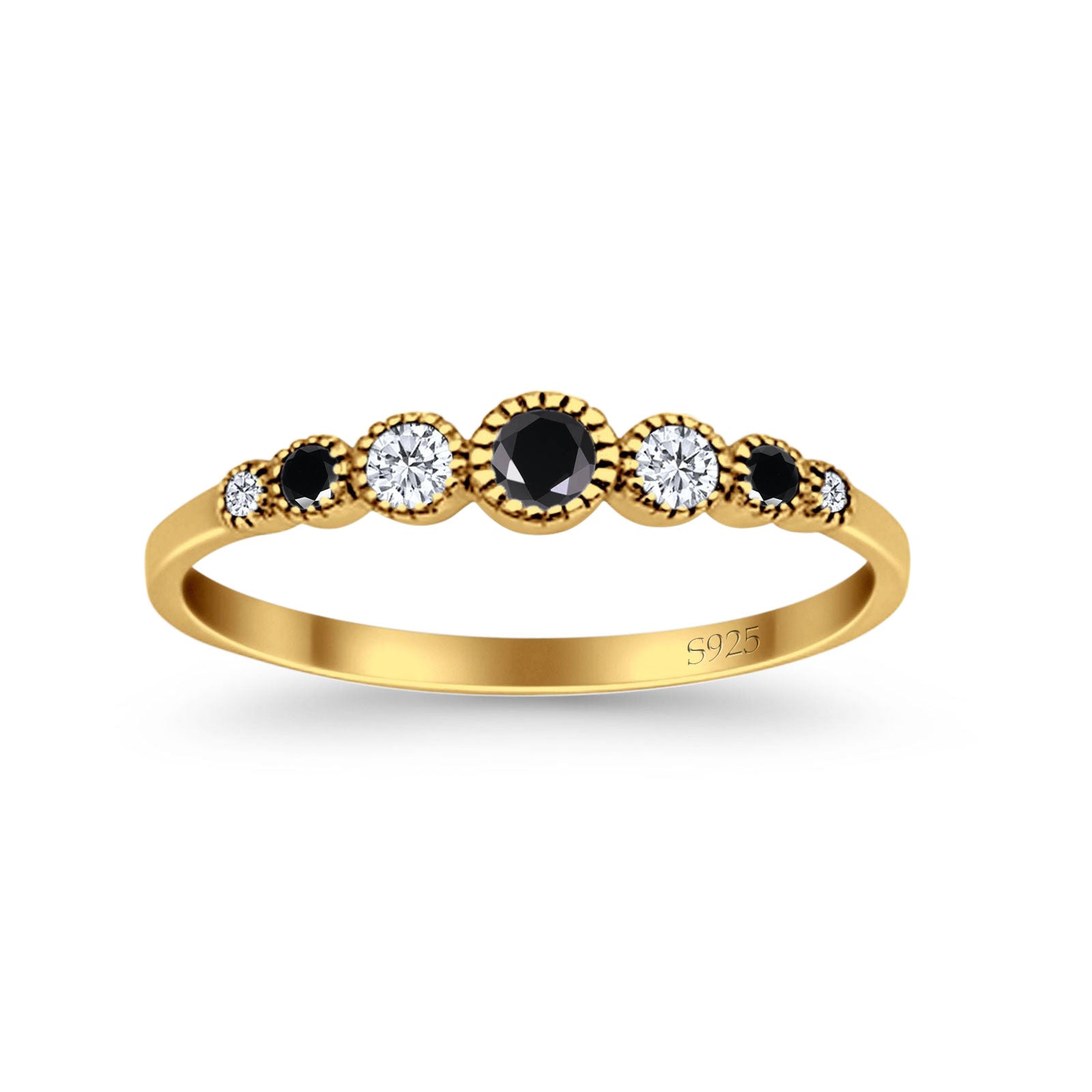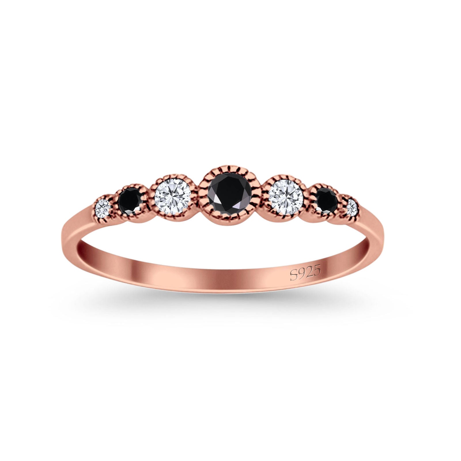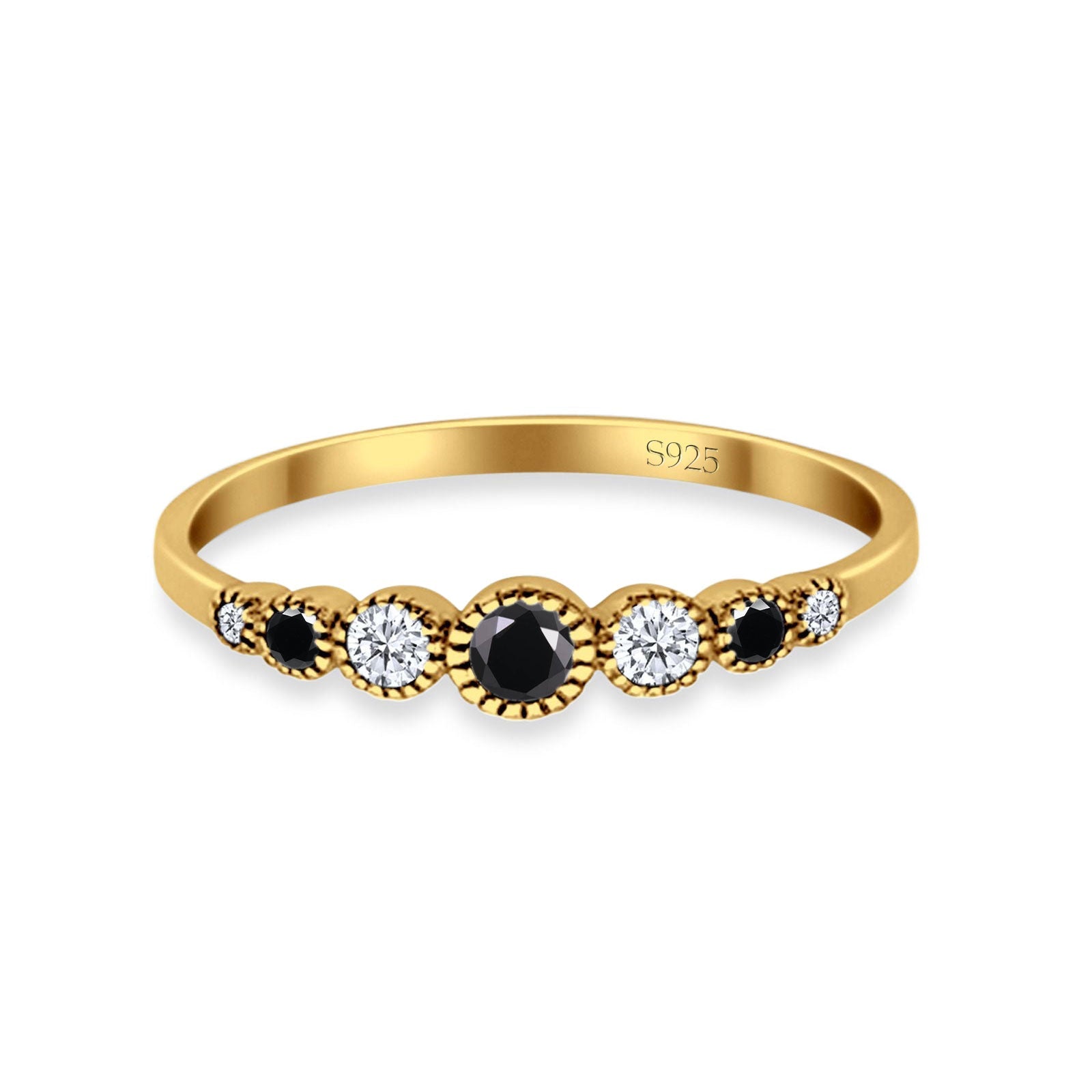 Half Eternity Band Round Simulated Black Cubic Zirconia 925 Sterling Silver (4mm)