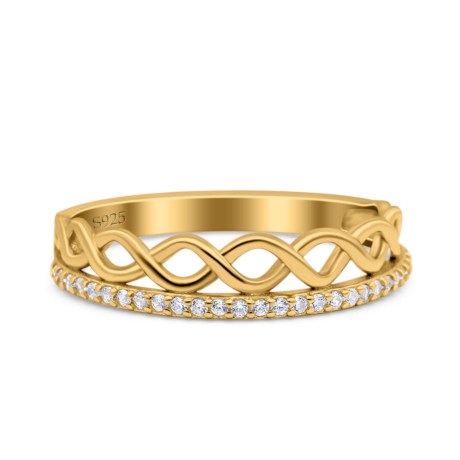 Half Eternity Infinity Twisted Shank Wedding Ring Band Round Simulated Cubic Zirconia 925 Sterling Silver