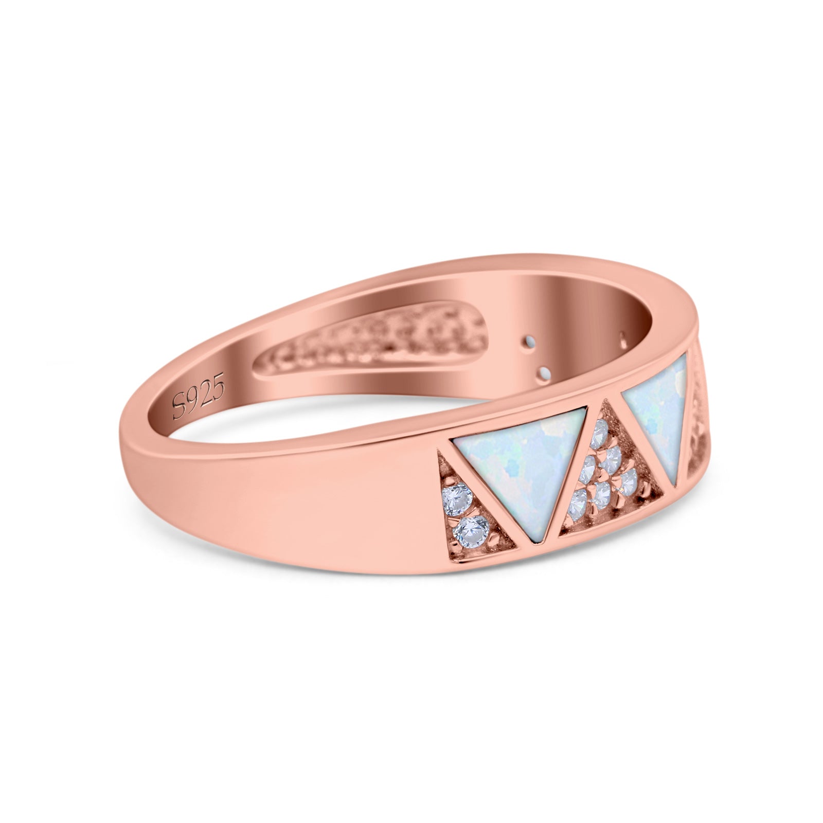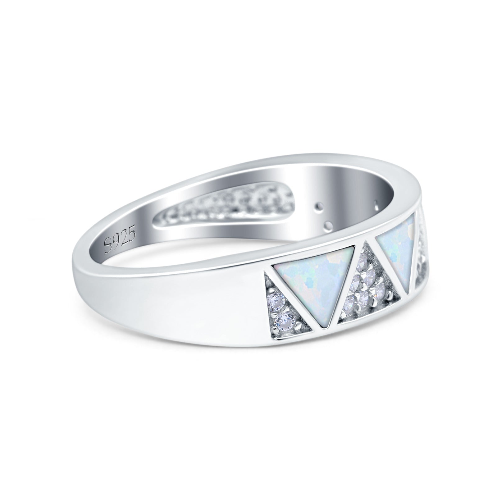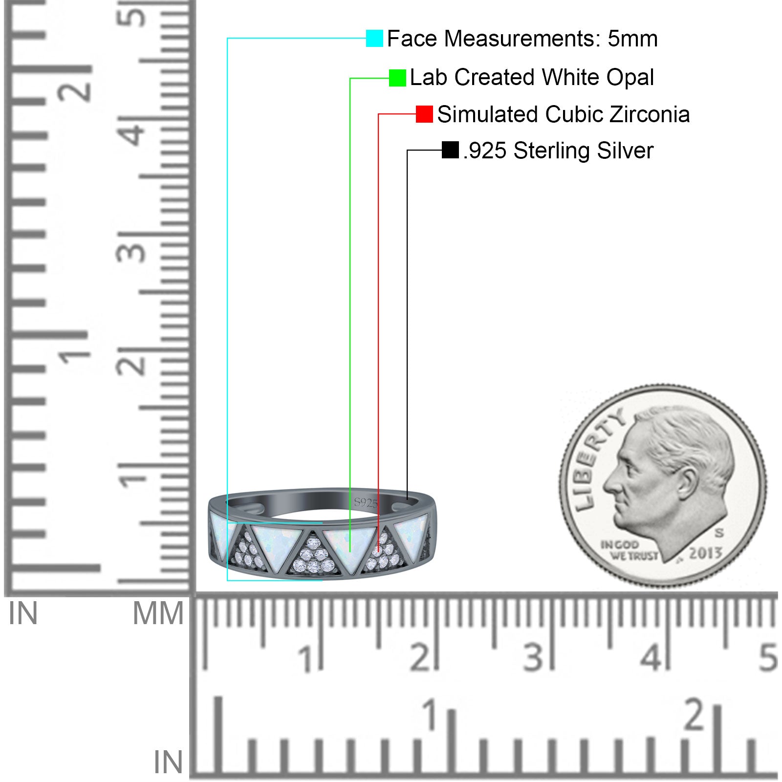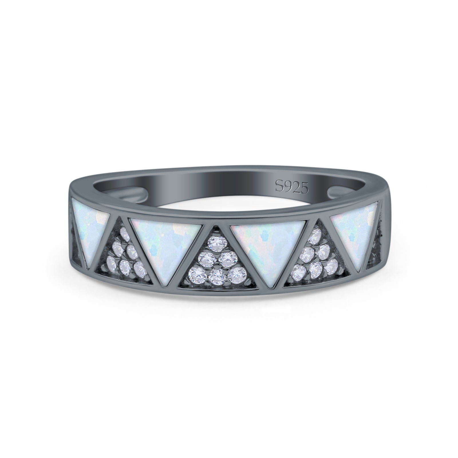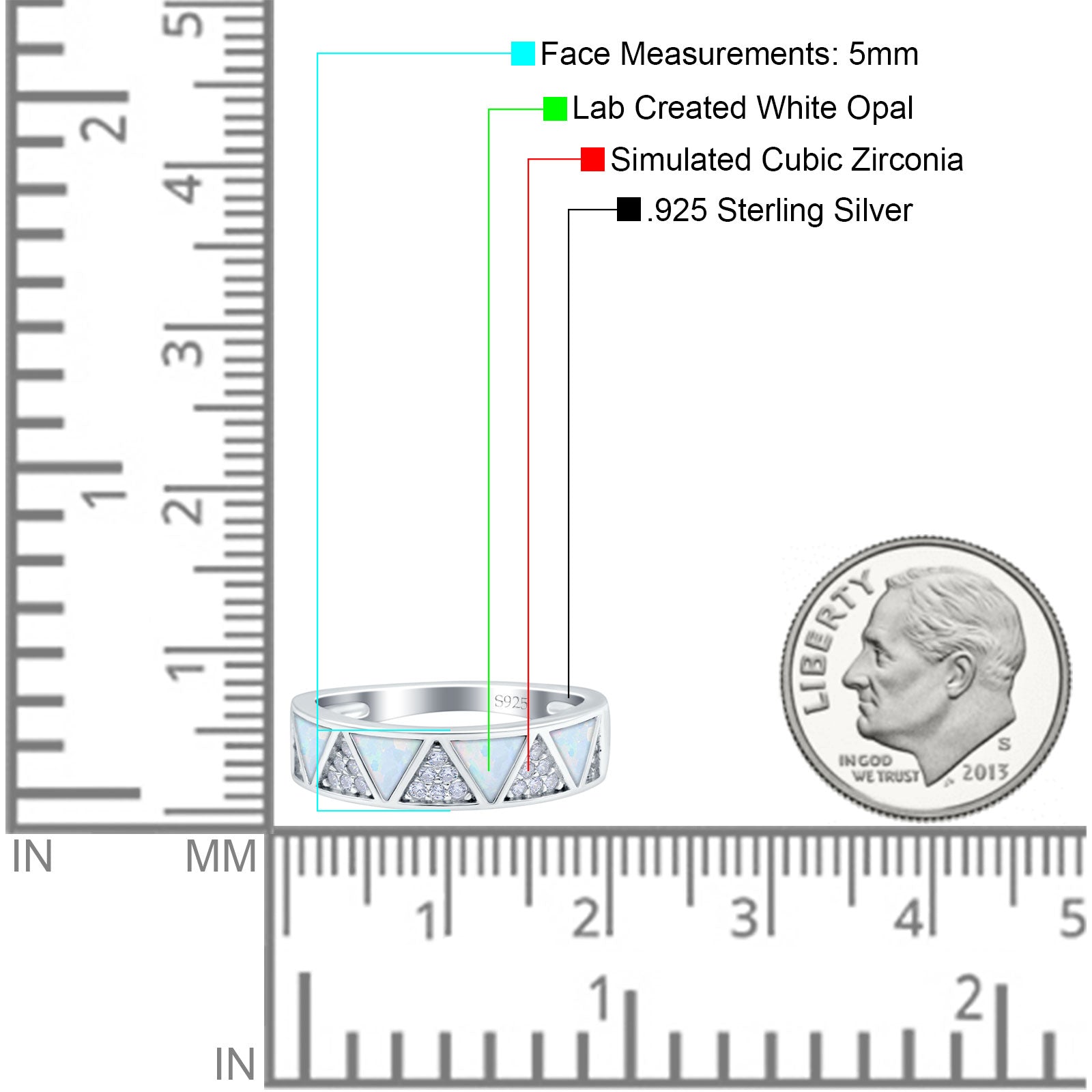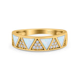 Half Eternity Ring Wedding Engagement Band Triangle White Opal Simulated Cubic Zirconia 925 Sterling Silver