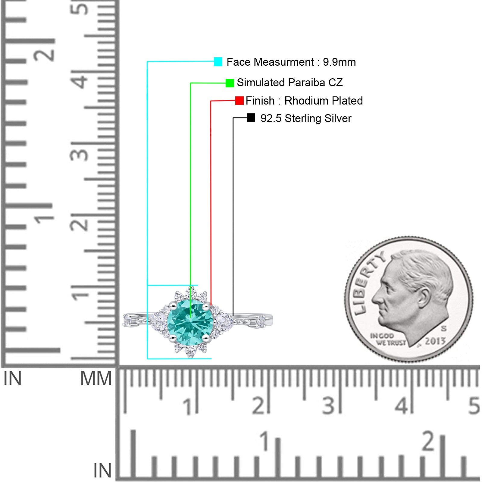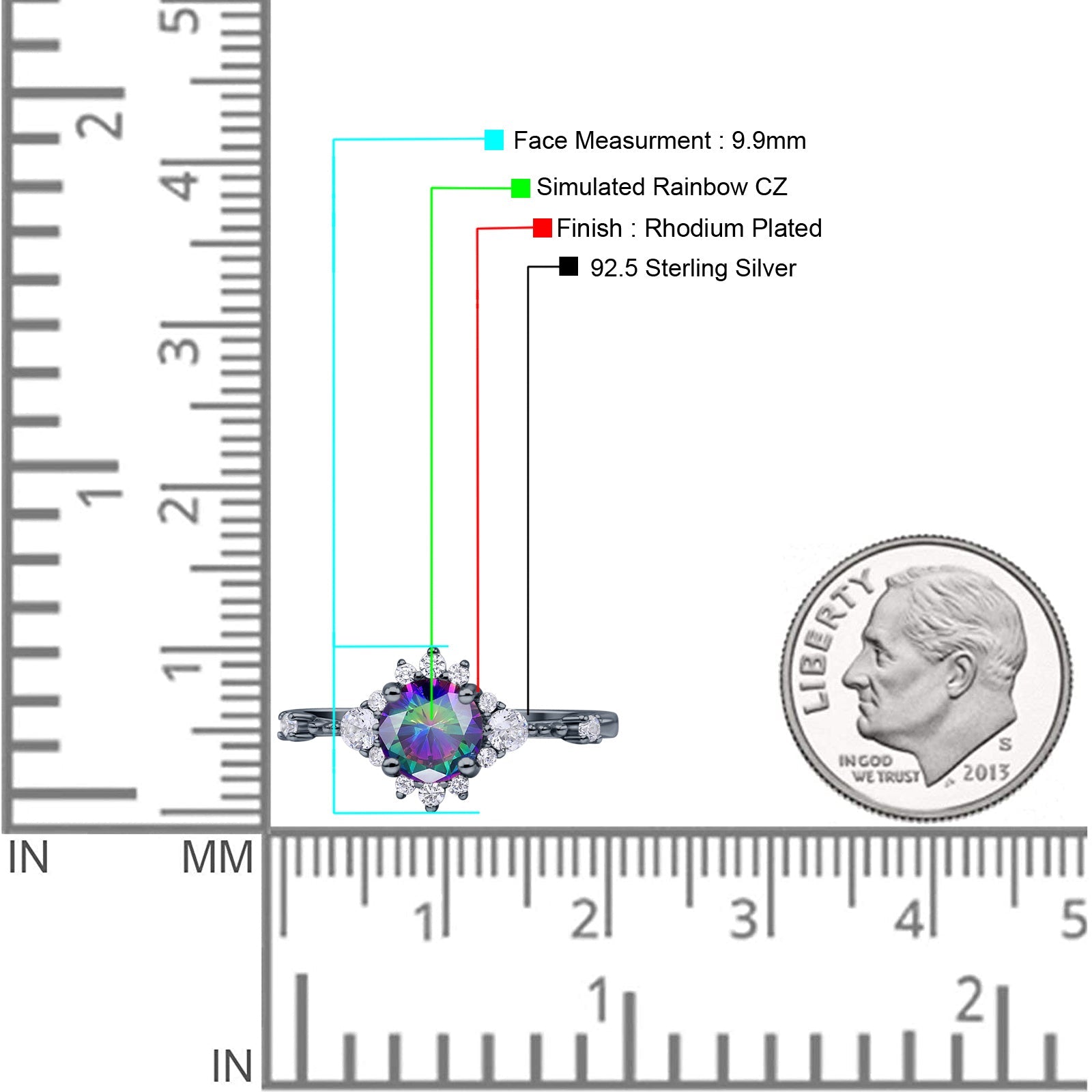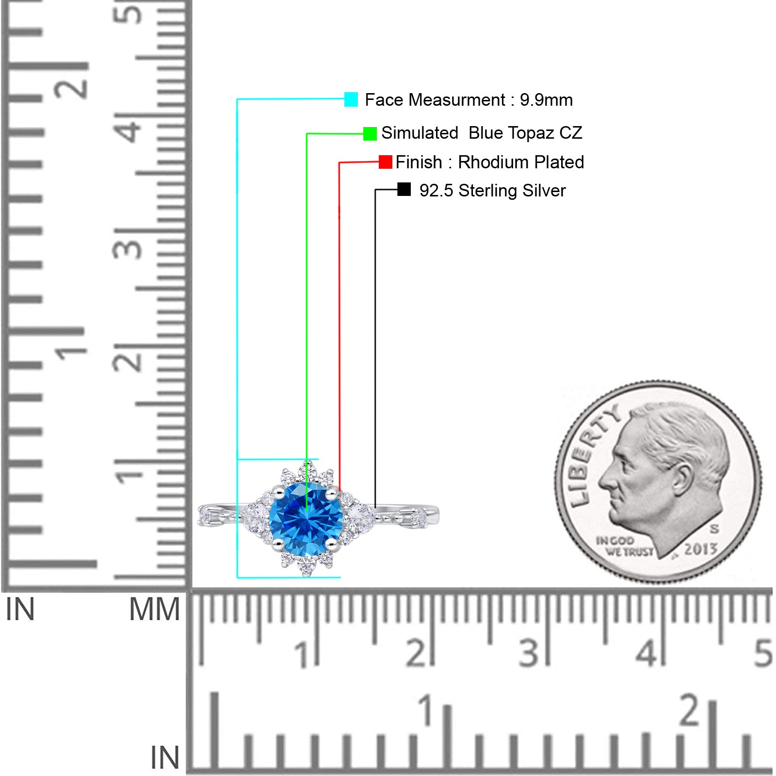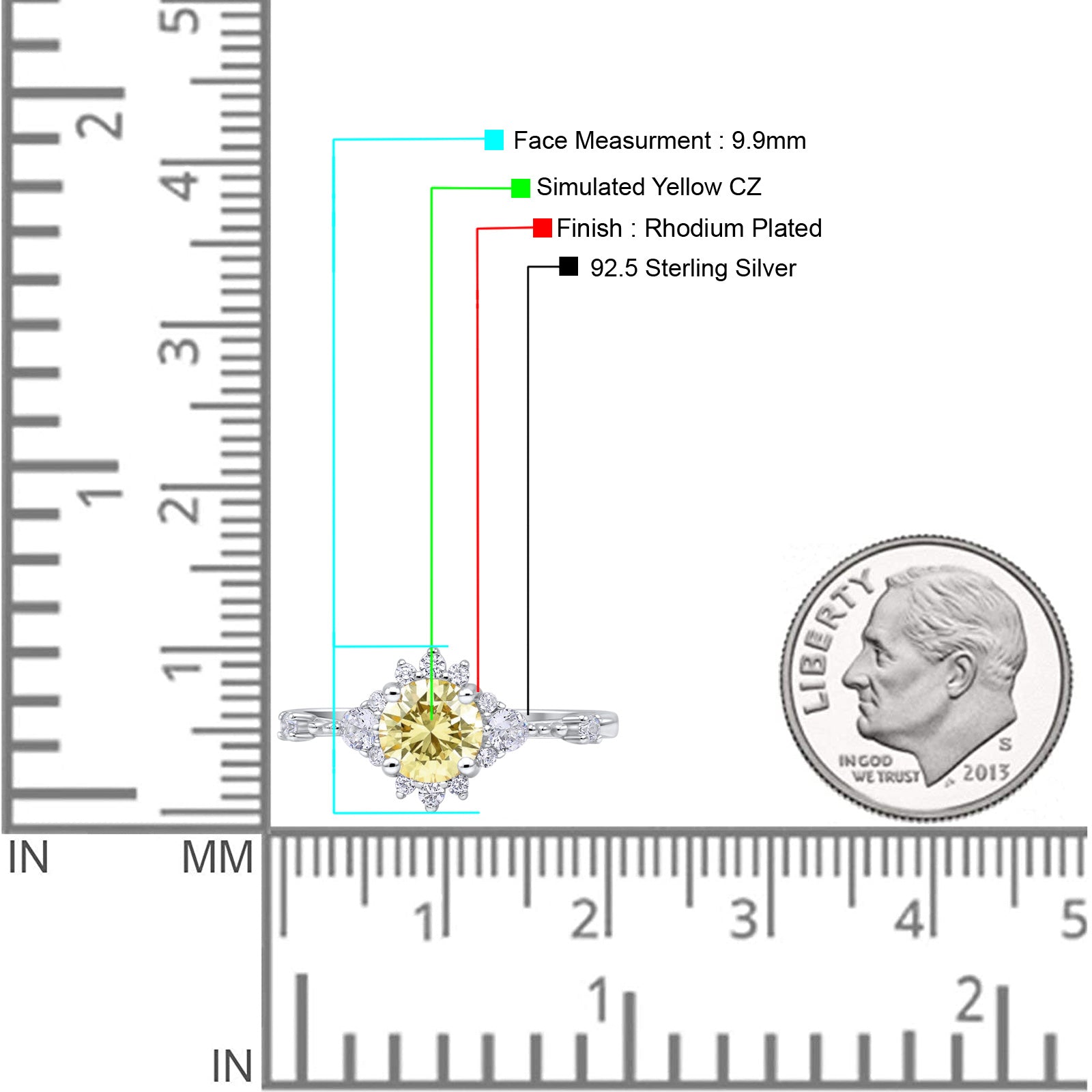 Halo Art Deco Bridal Wedding Engagement Ring Rhodium Plated Round Simulated Cubic Zirconia 925 Sterling Silver
