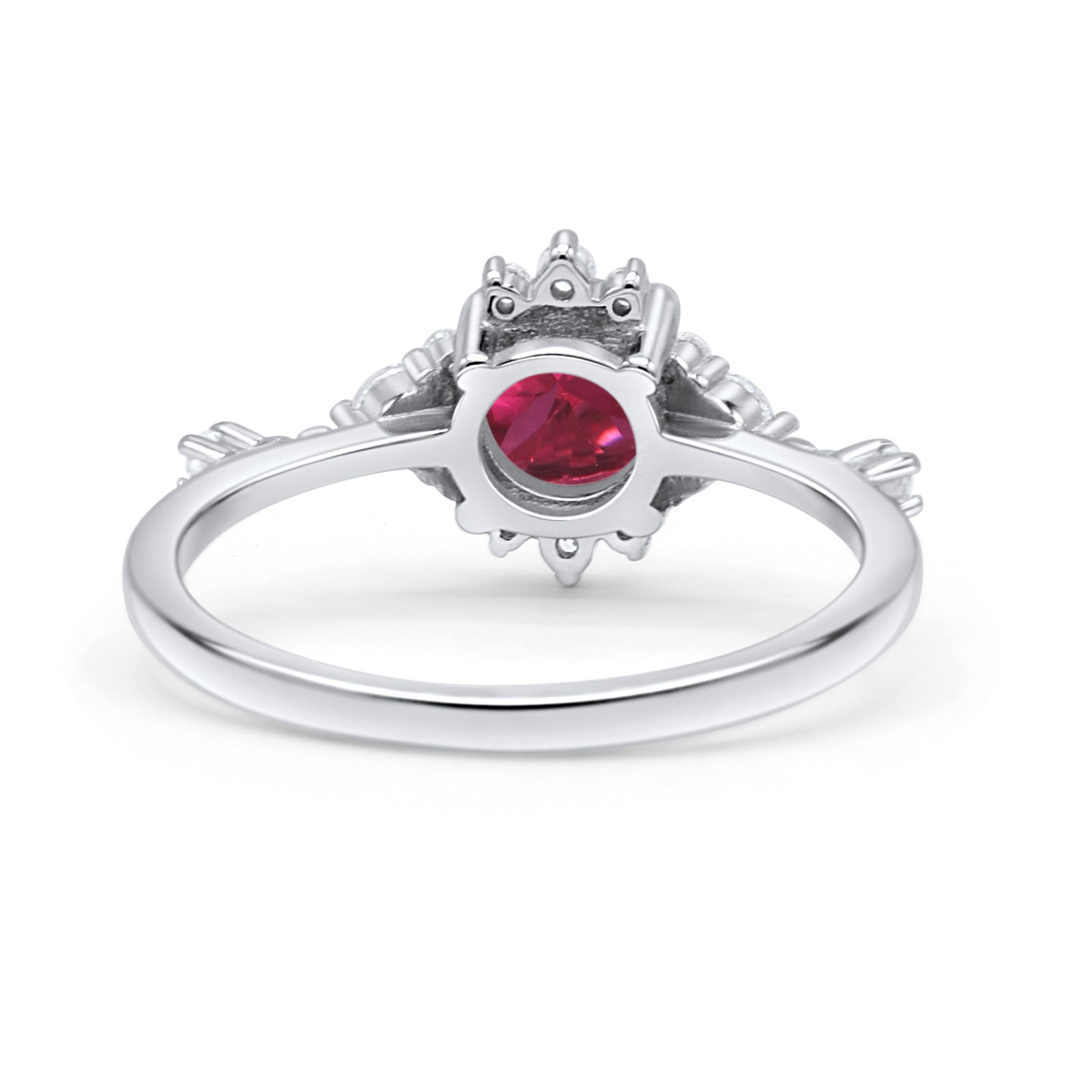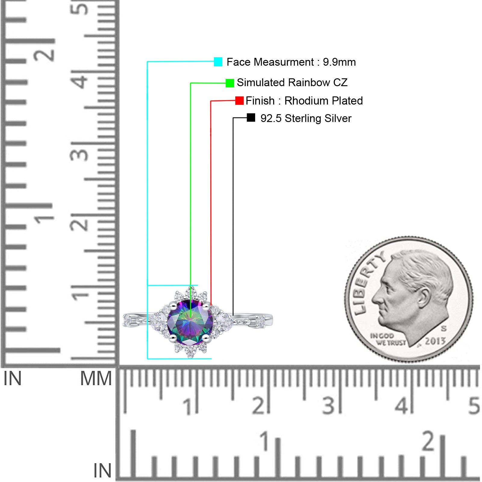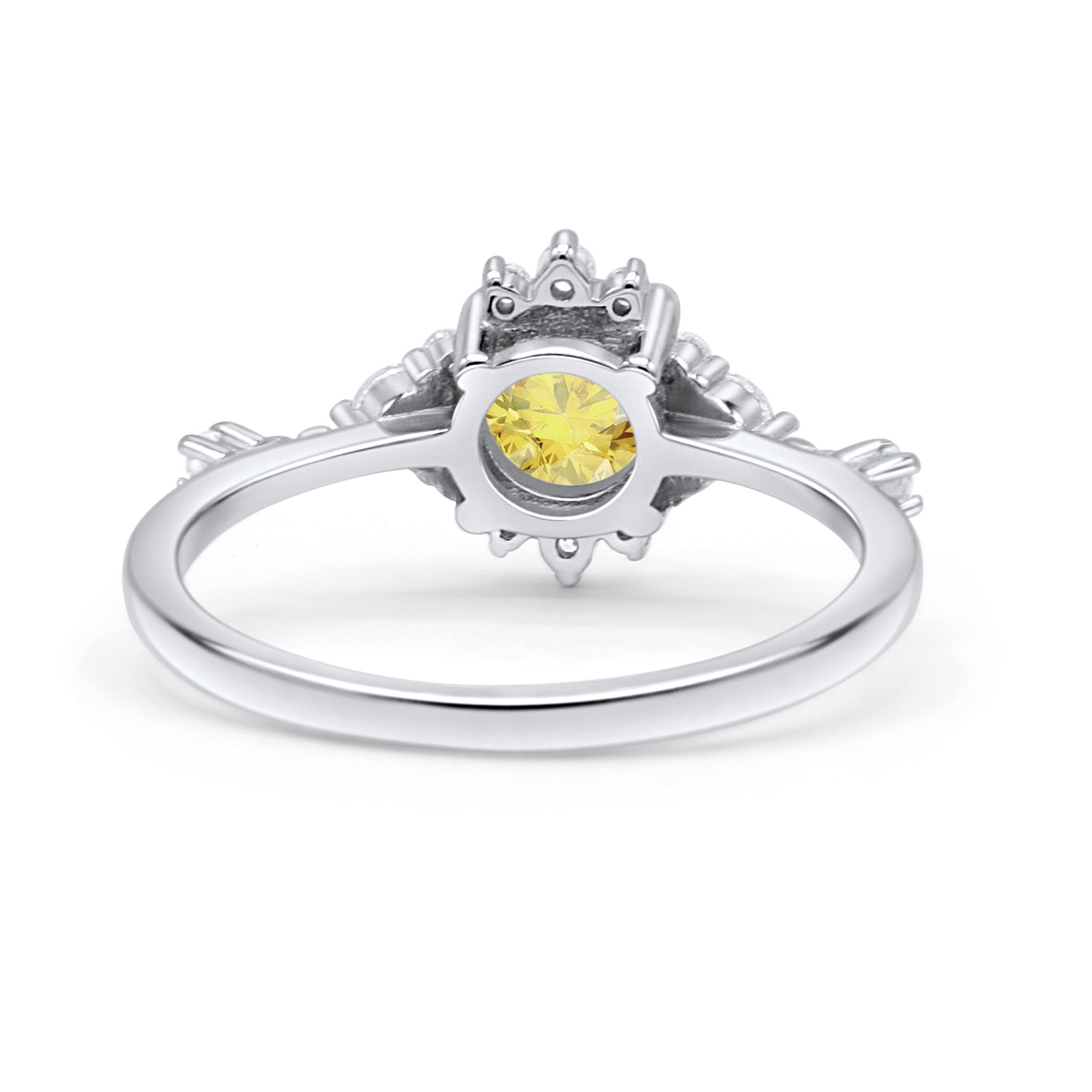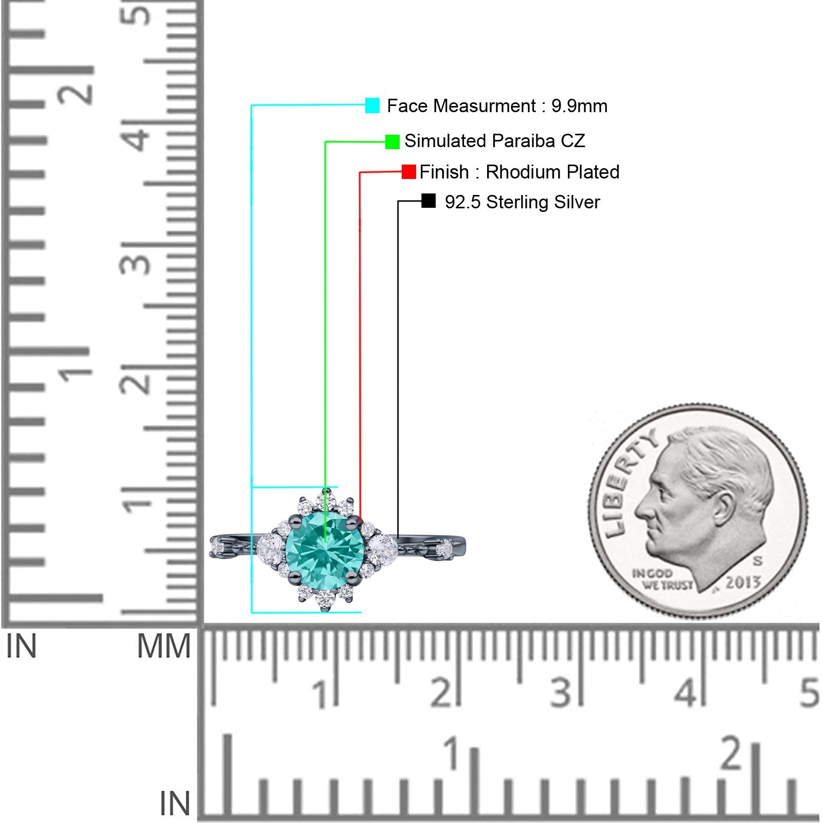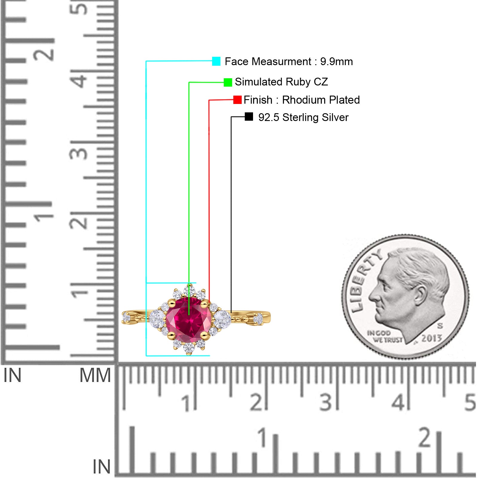 Halo Art Deco Bridal Wedding Engagement Ring Rhodium Plated Round Simulated Cubic Zirconia 925 Sterling Silver