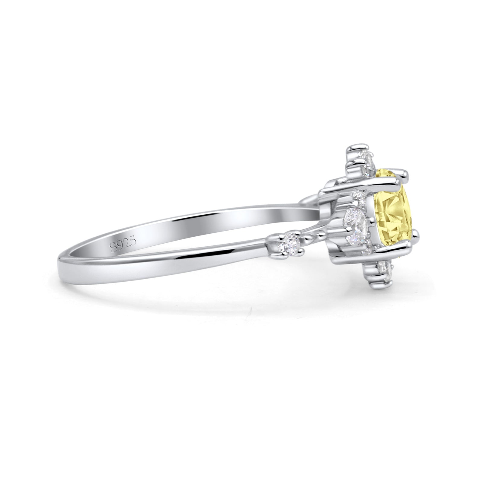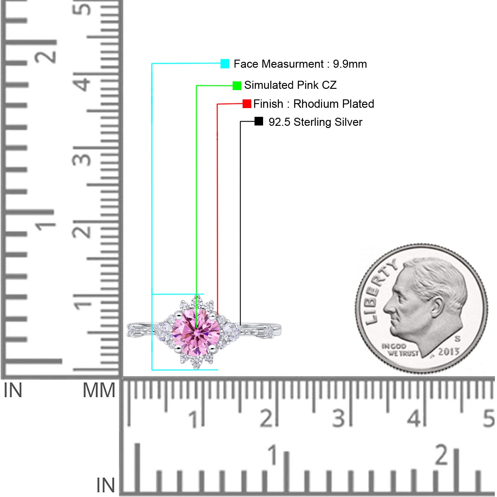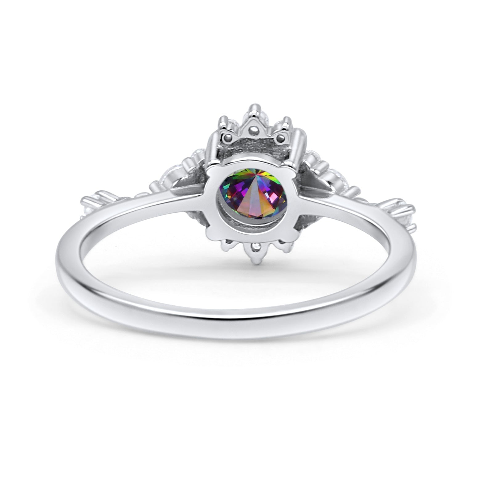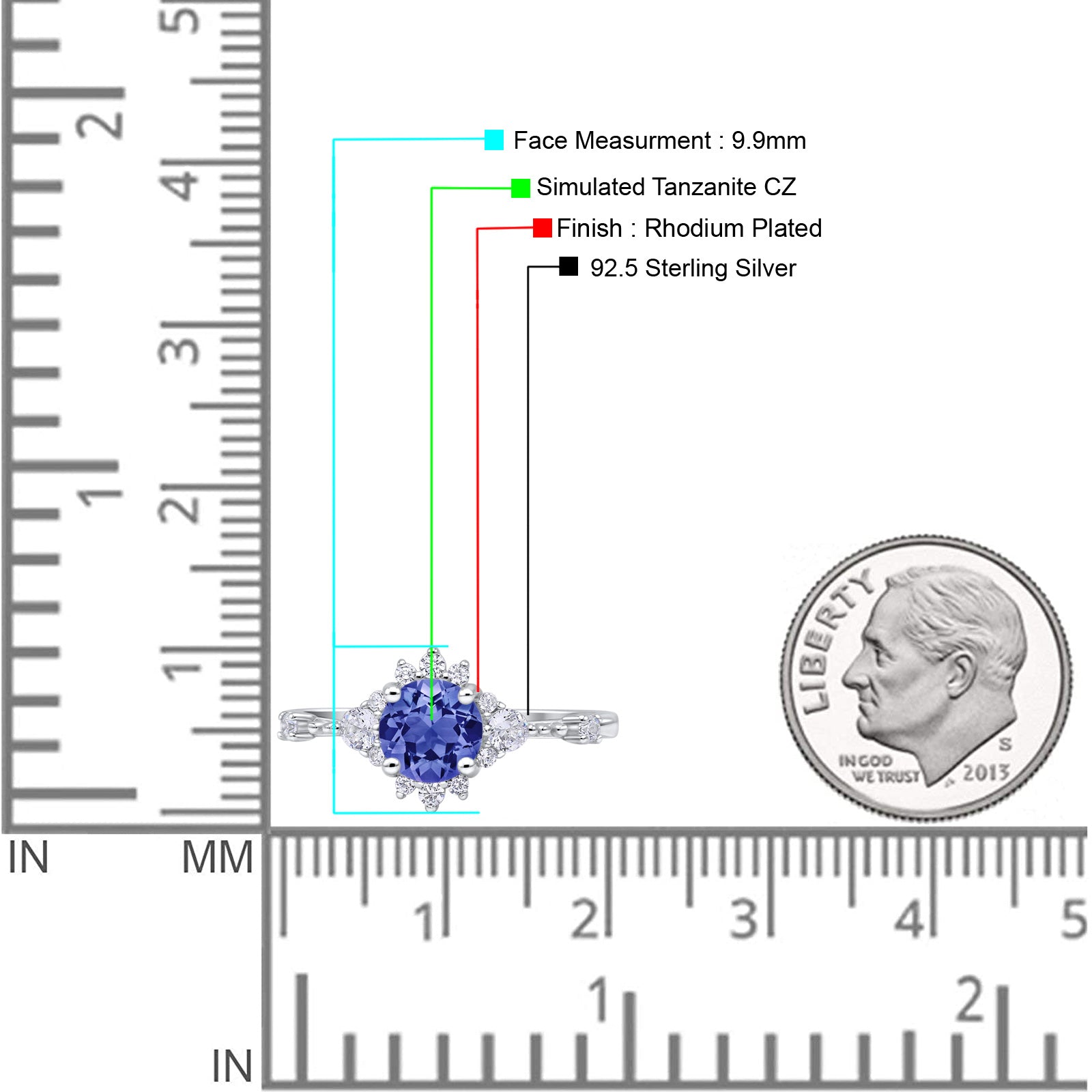 Halo Art Deco Bridal Wedding Engagement Ring Rhodium Plated Round Simulated Cubic Zirconia 925 Sterling Silver