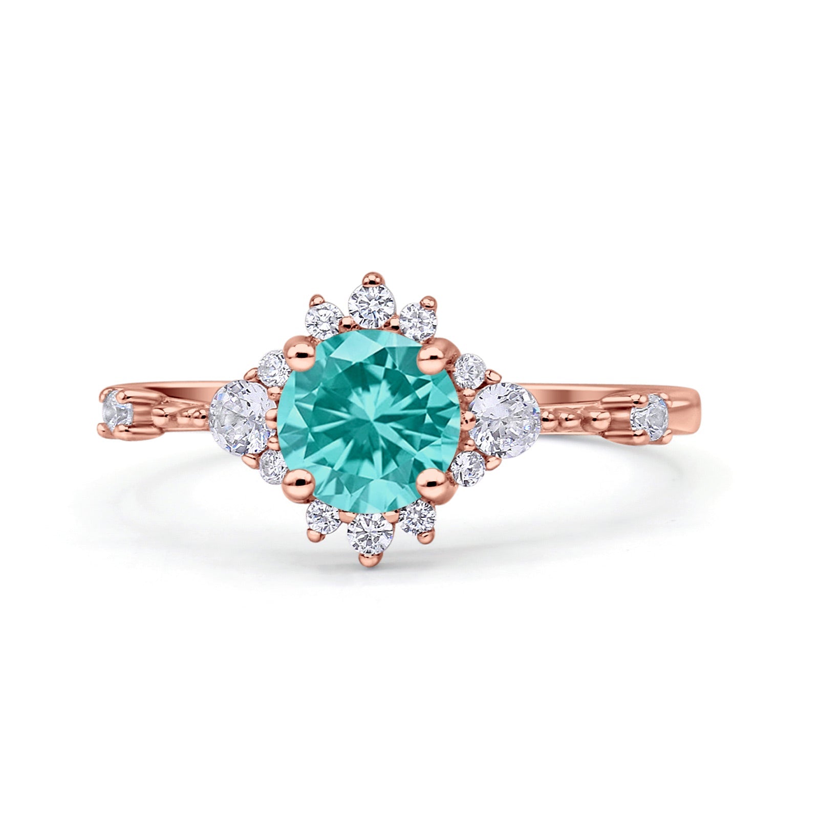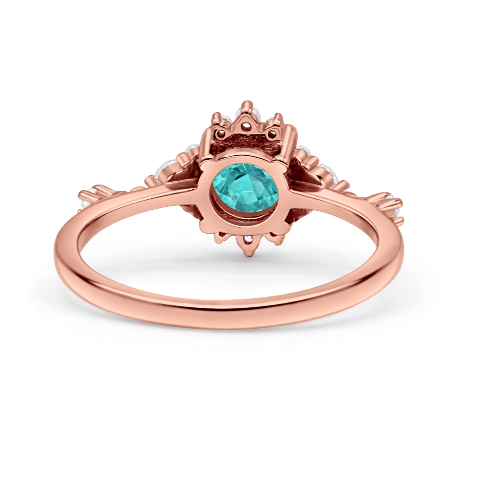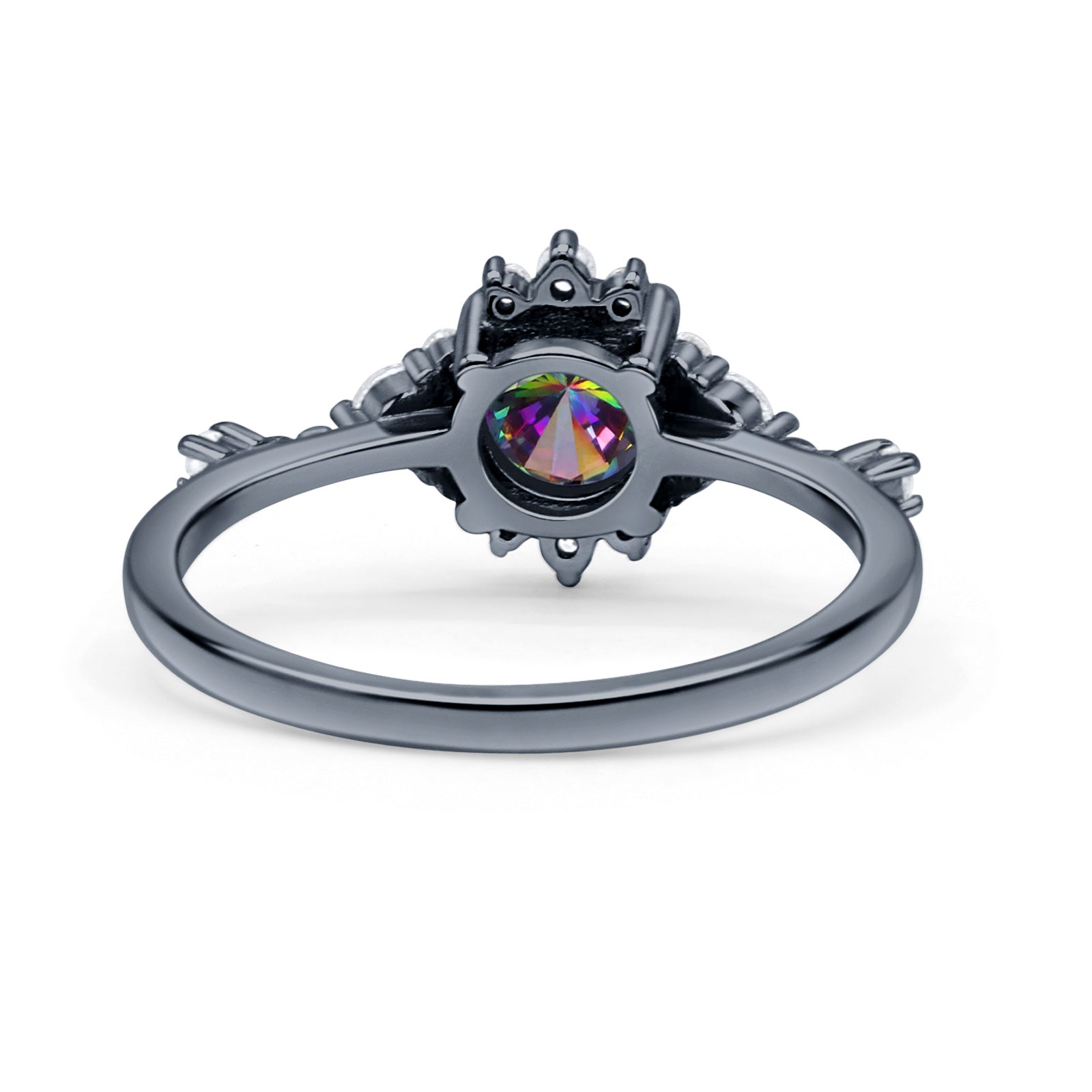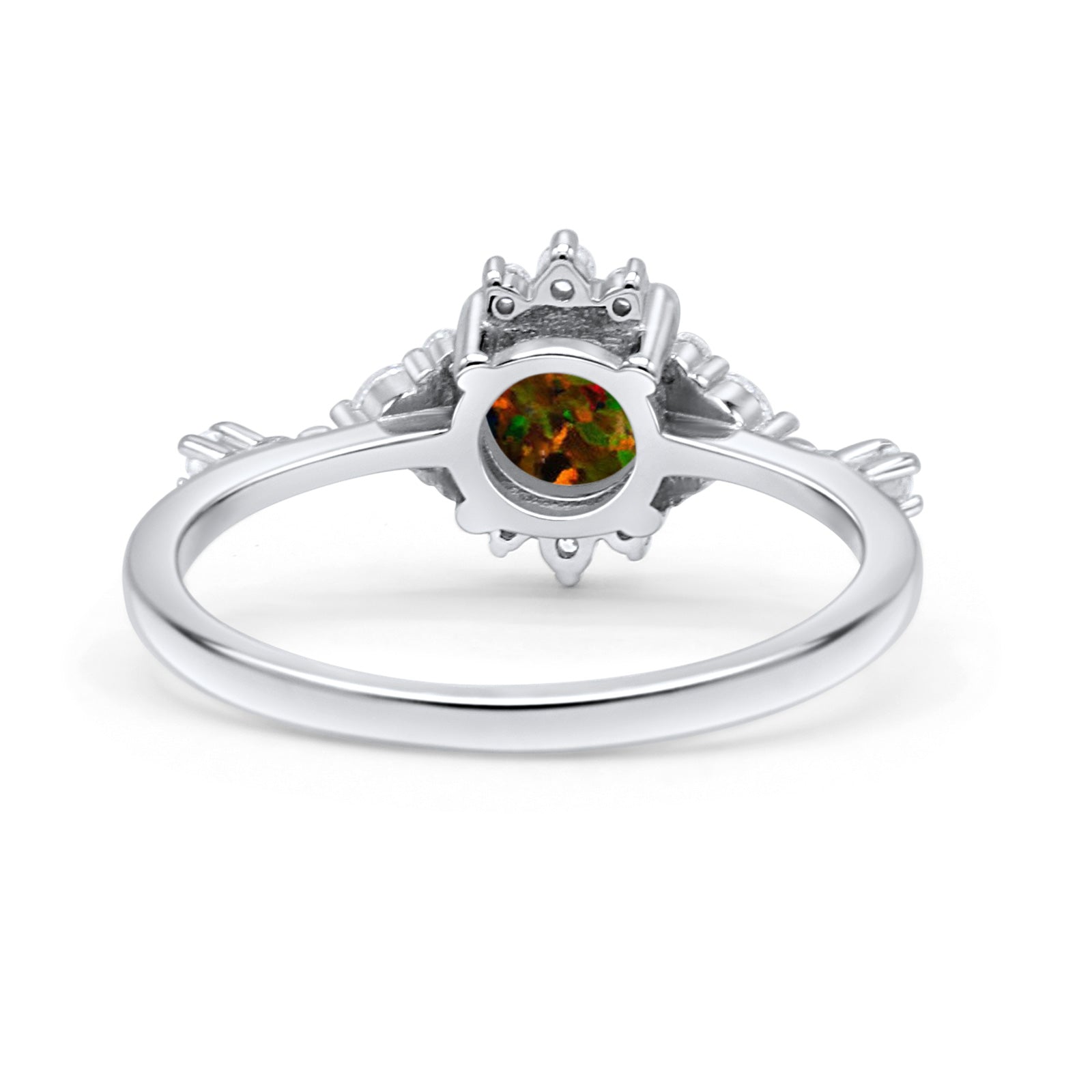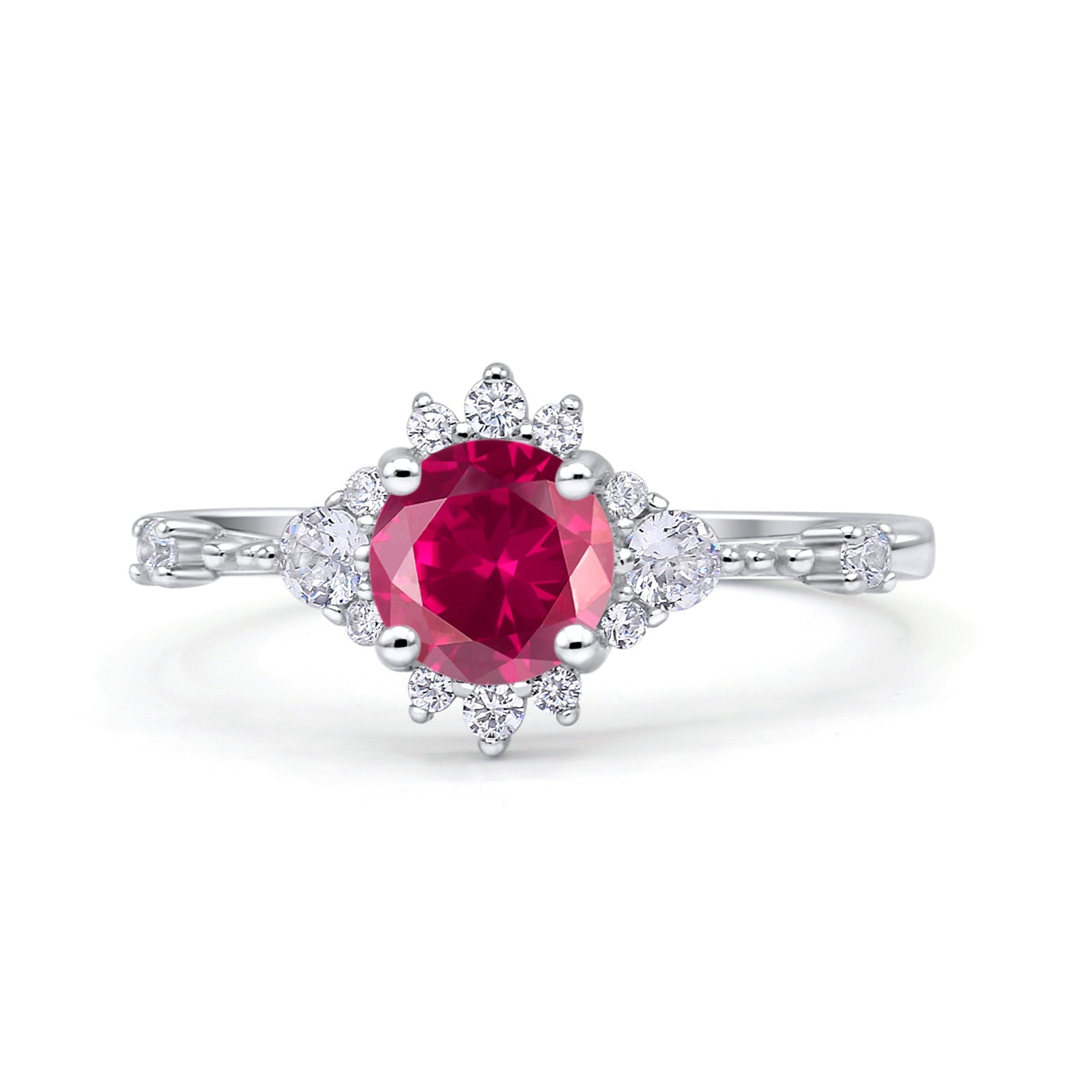 Halo Art Deco Bridal Wedding Engagement Ring Rhodium Plated Round Simulated Cubic Zirconia 925 Sterling Silver