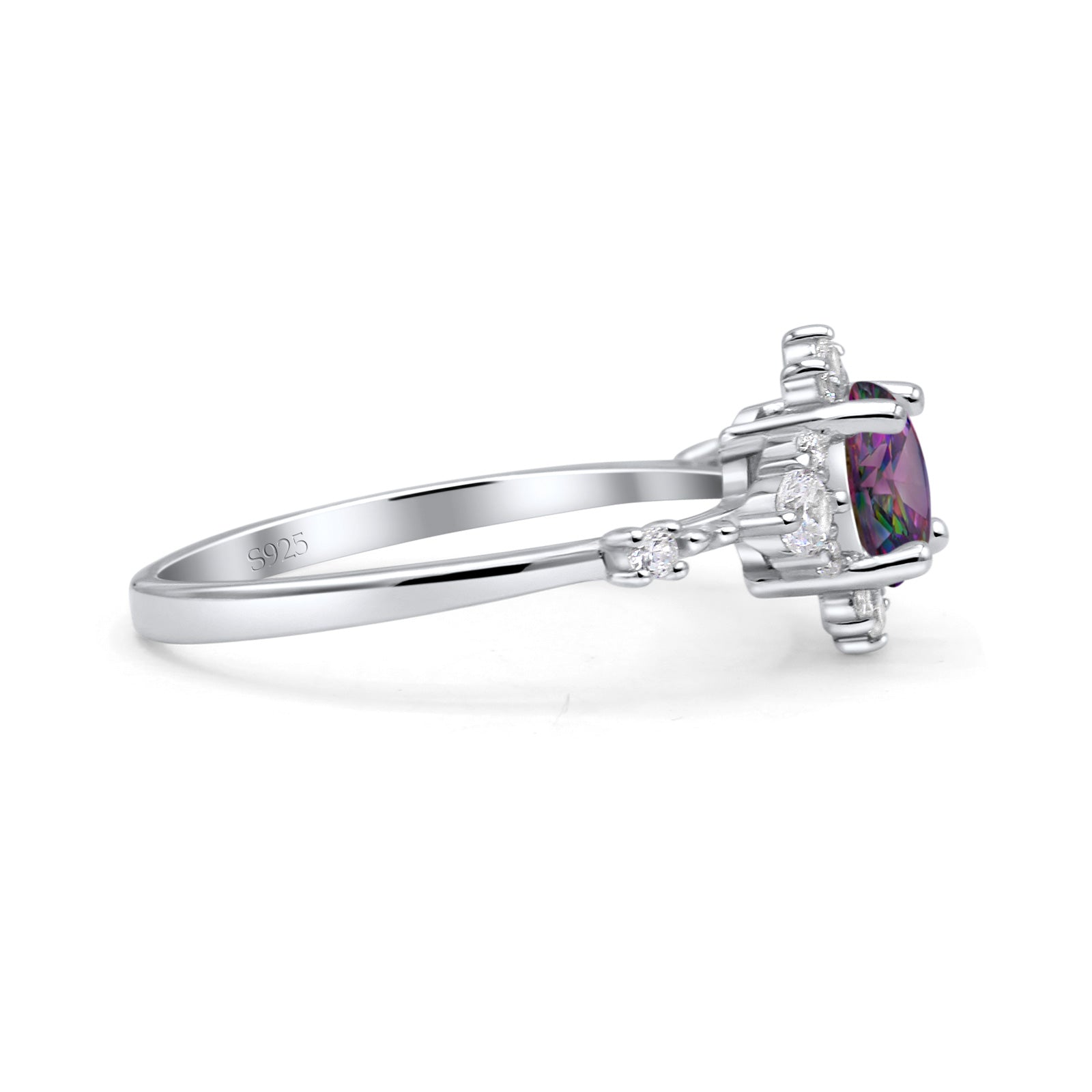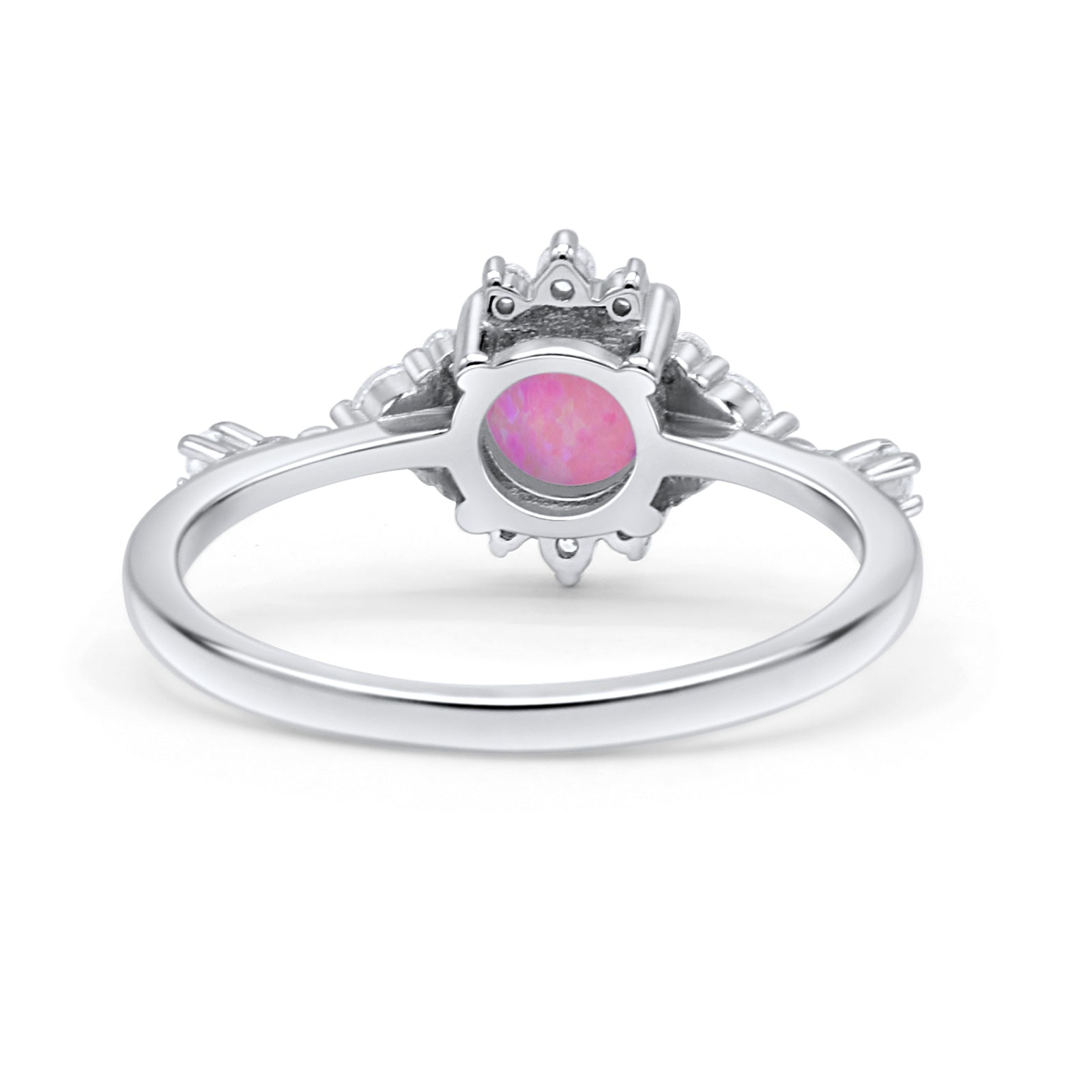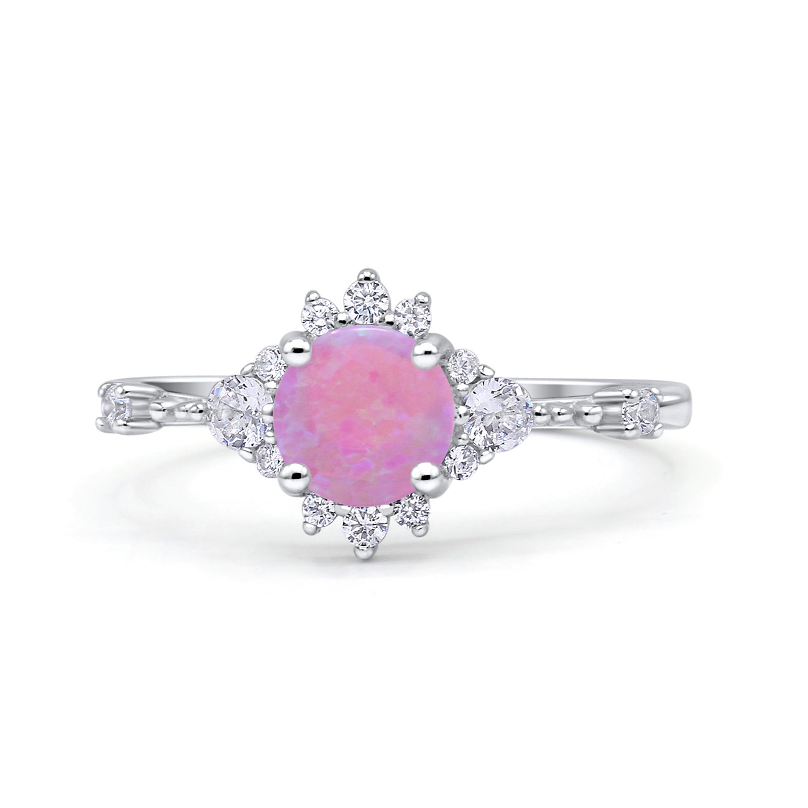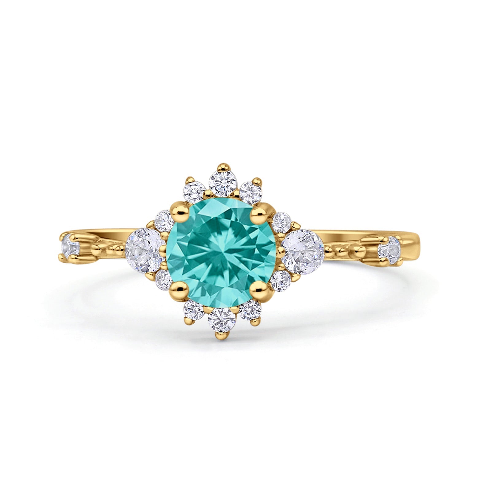 Halo Art Deco Bridal Wedding Engagement Ring Rhodium Plated Round Simulated Cubic Zirconia 925 Sterling Silver