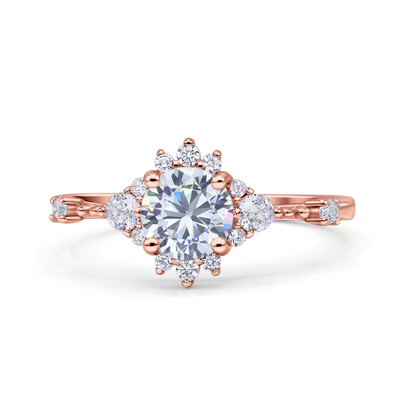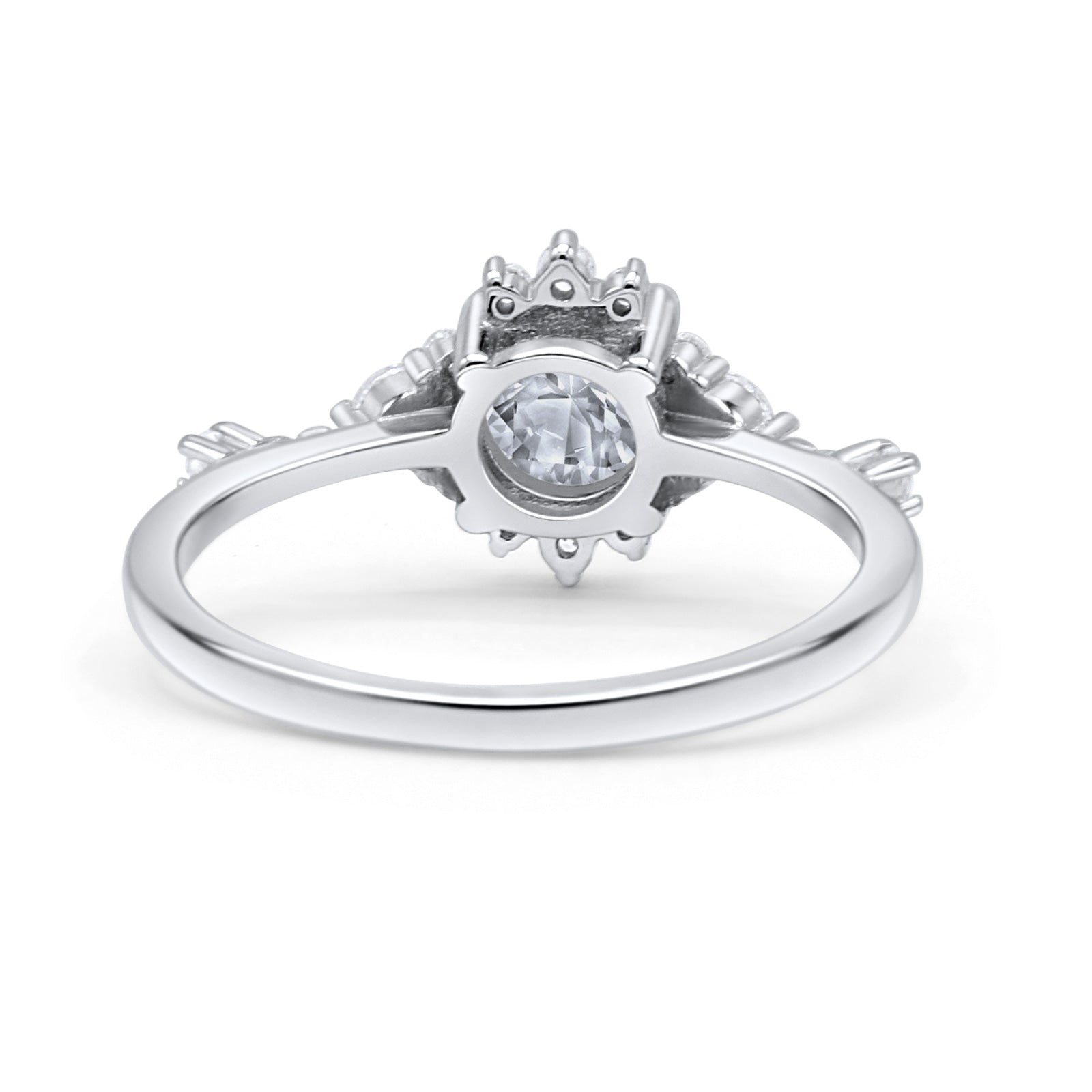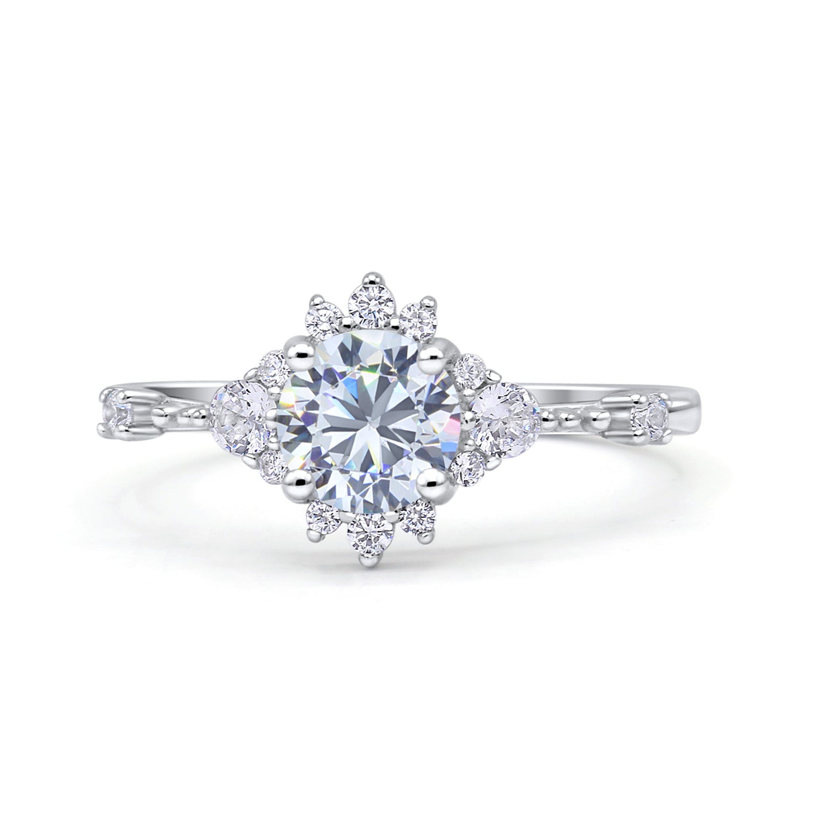 Halo Art Deco Bridal Wedding Engagement Ring Rhodium Plated Round Simulated Cubic Zirconia 925 Sterling Silver