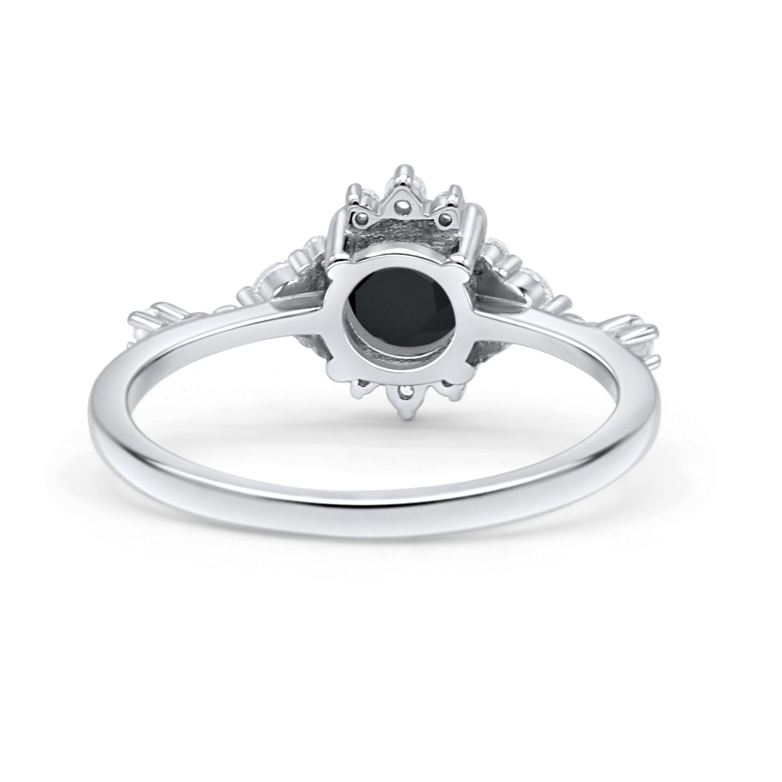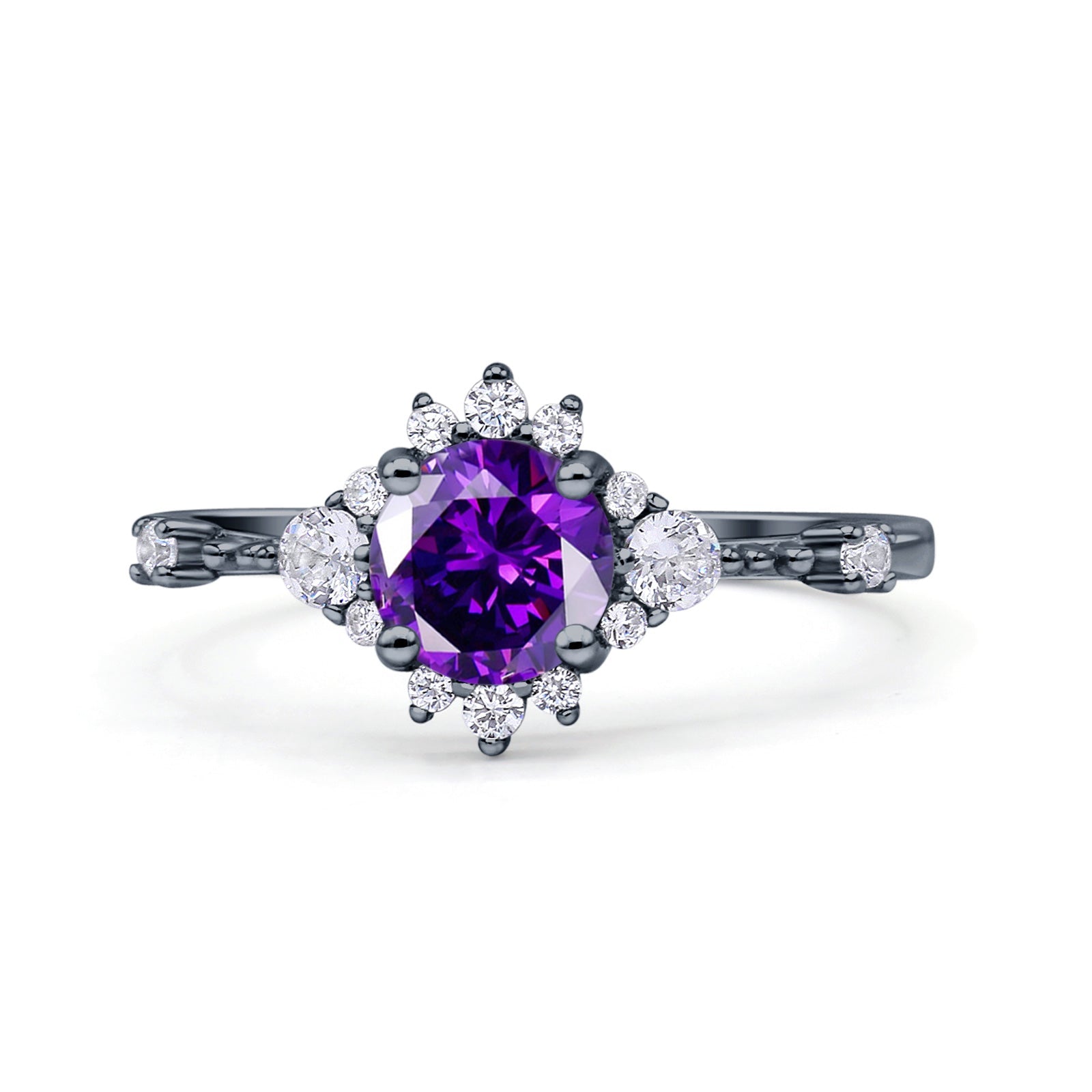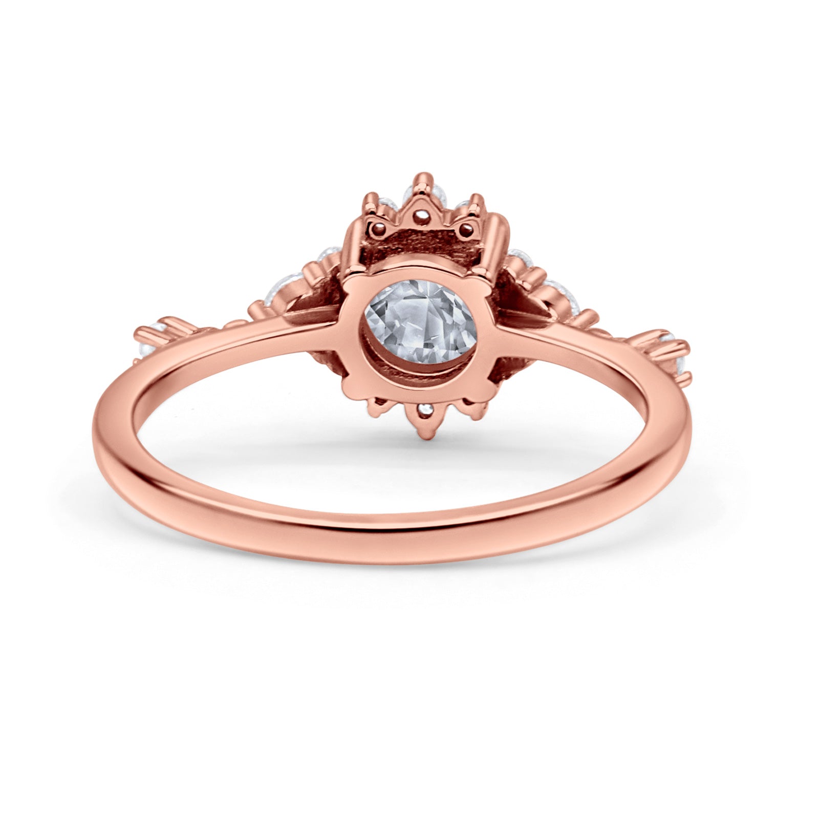 Halo Art Deco Bridal Wedding Engagement Ring Rhodium Plated Round Simulated Cubic Zirconia 925 Sterling Silver