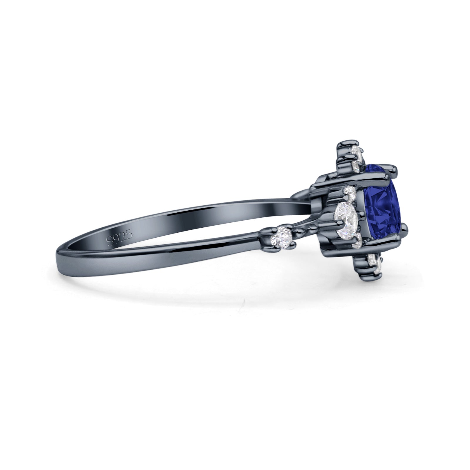 CZ & Blue Sapphire CZ Black Tone Silver