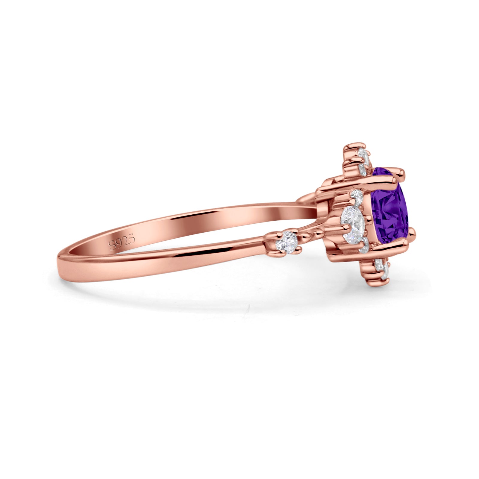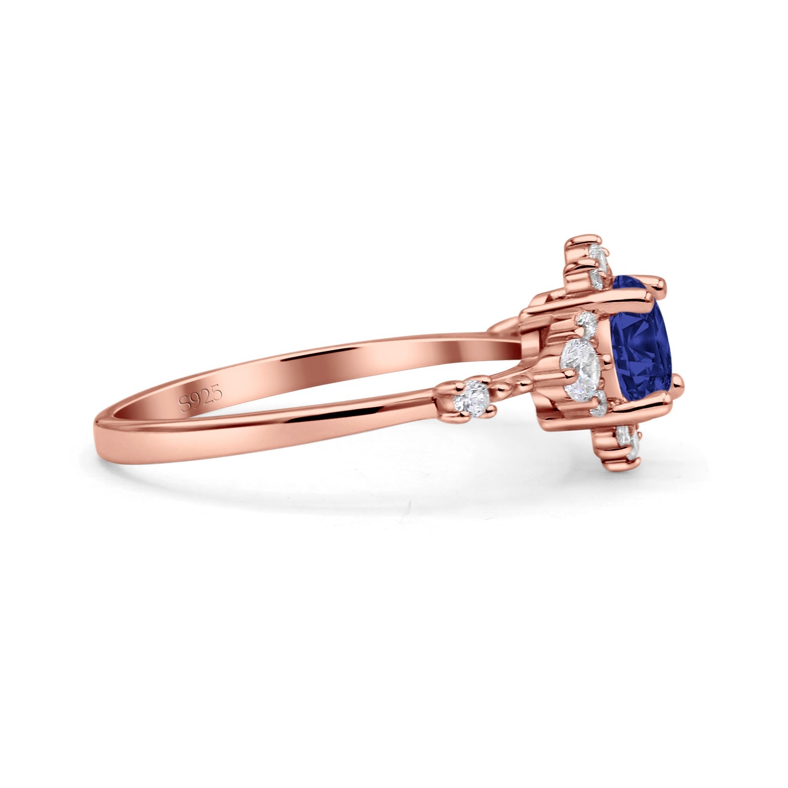CZ & Blue Sapphire CZ Rose Tone Silver