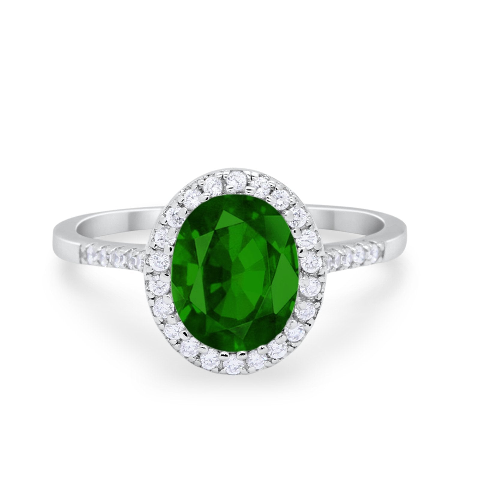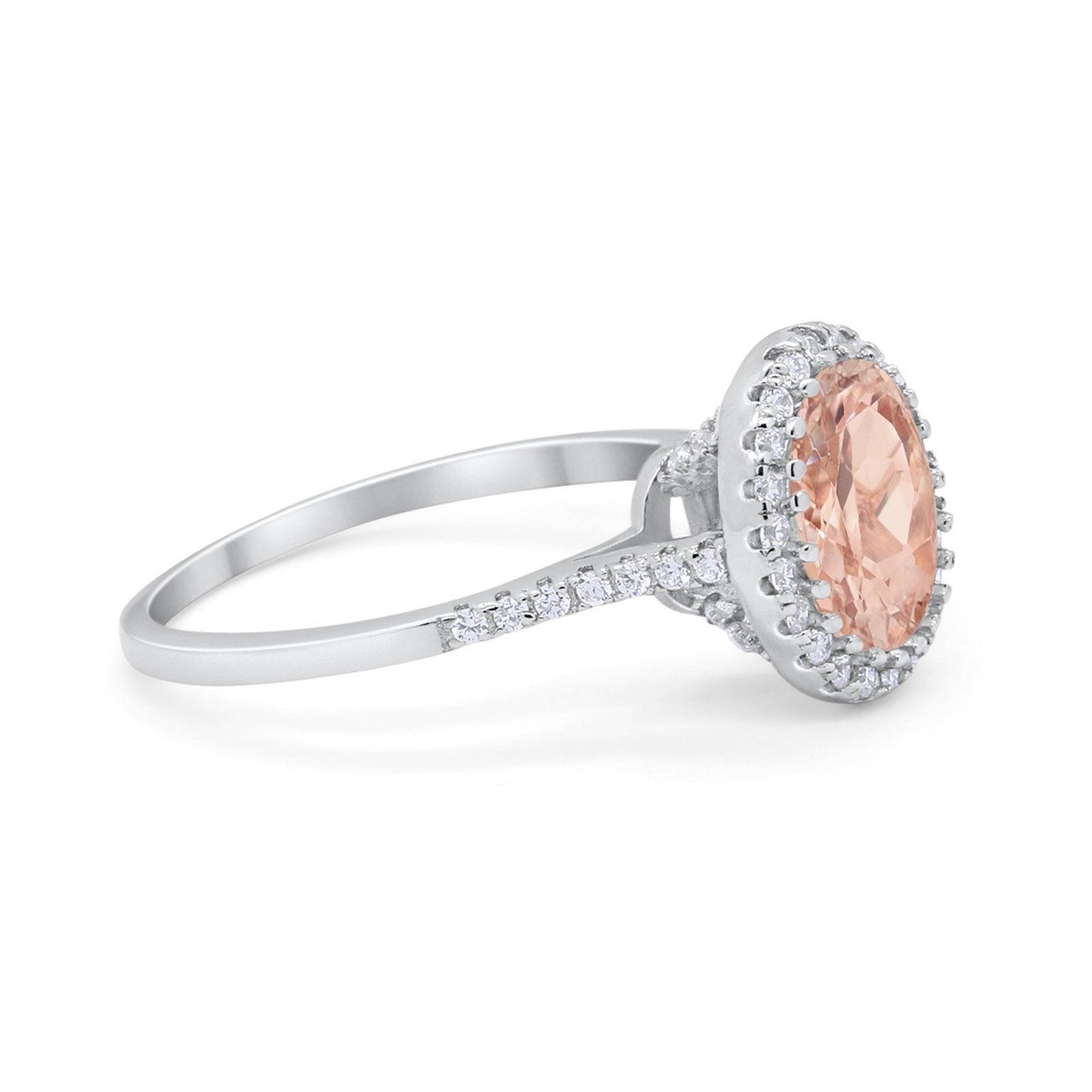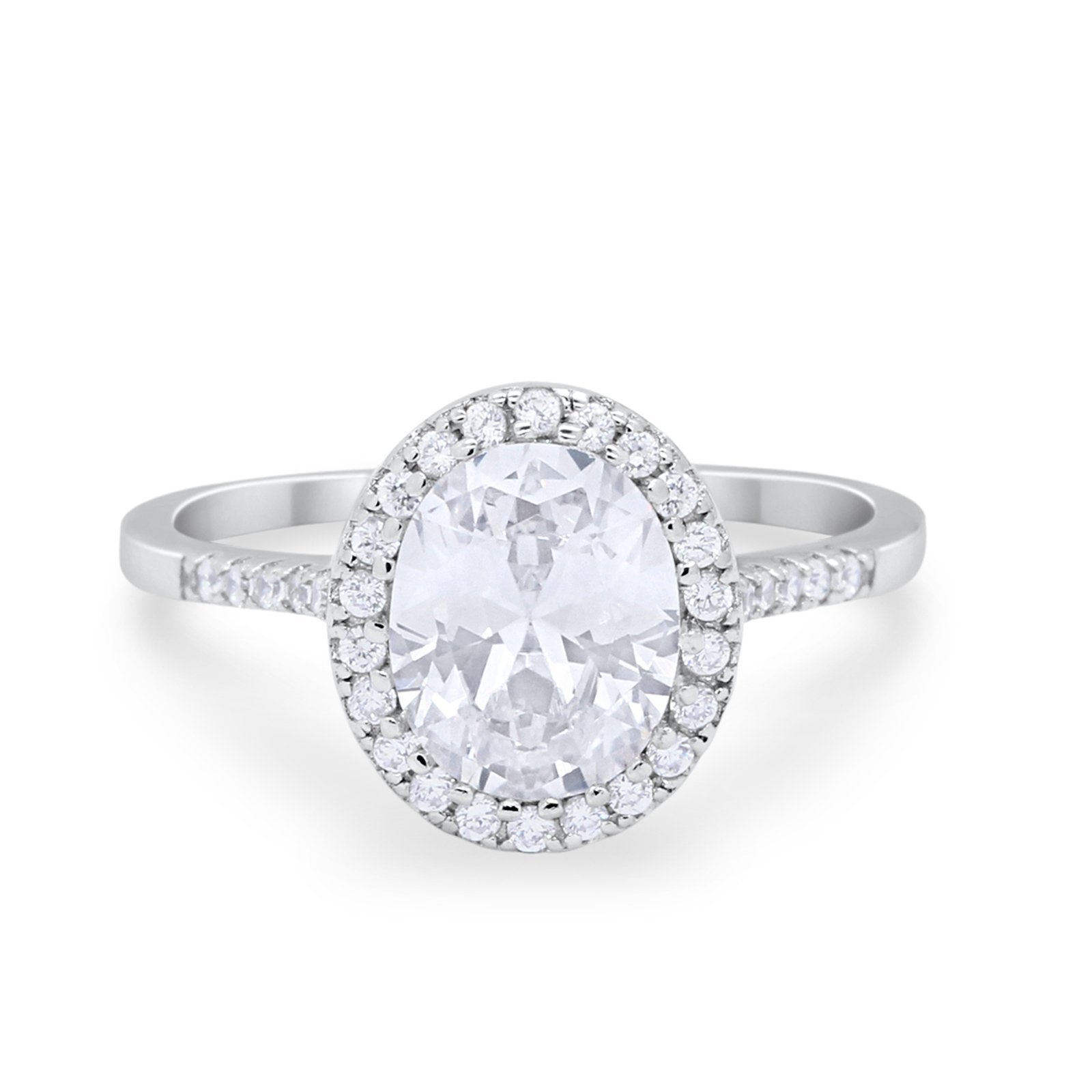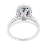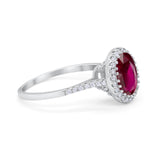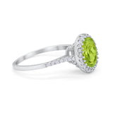 Halo Art Deco Oval Wedding Engagement Bridal Ring Round Cubic Zirconia 925 Sterling Silver