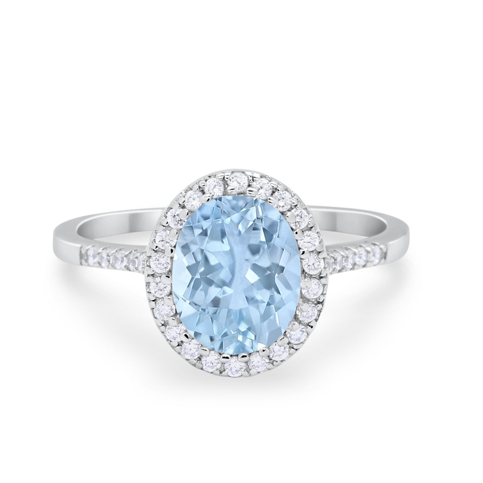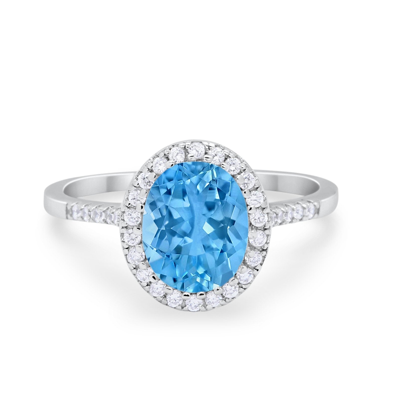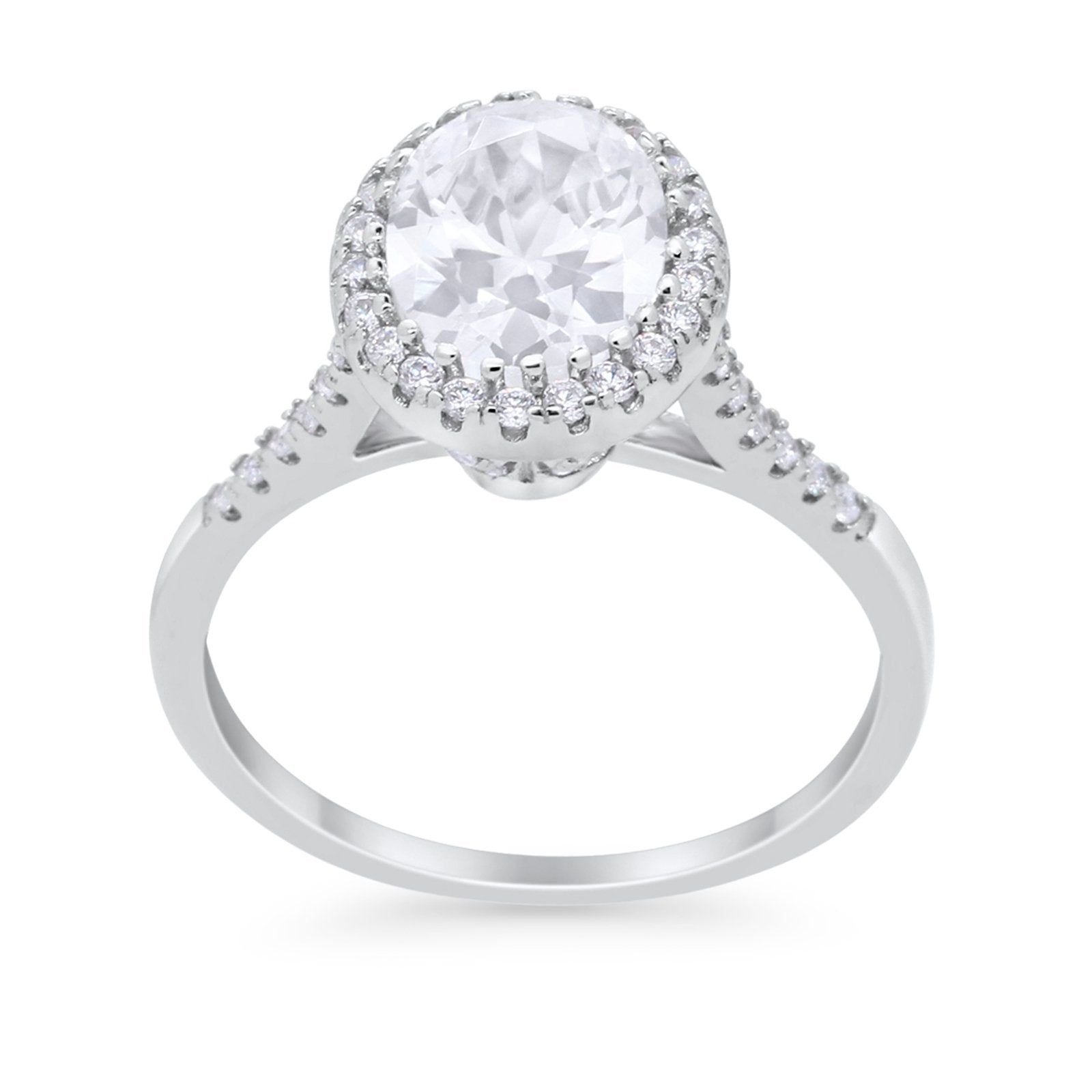 Halo Art Deco Oval Wedding Engagement Bridal Ring Round Cubic Zirconia 925 Sterling Silver