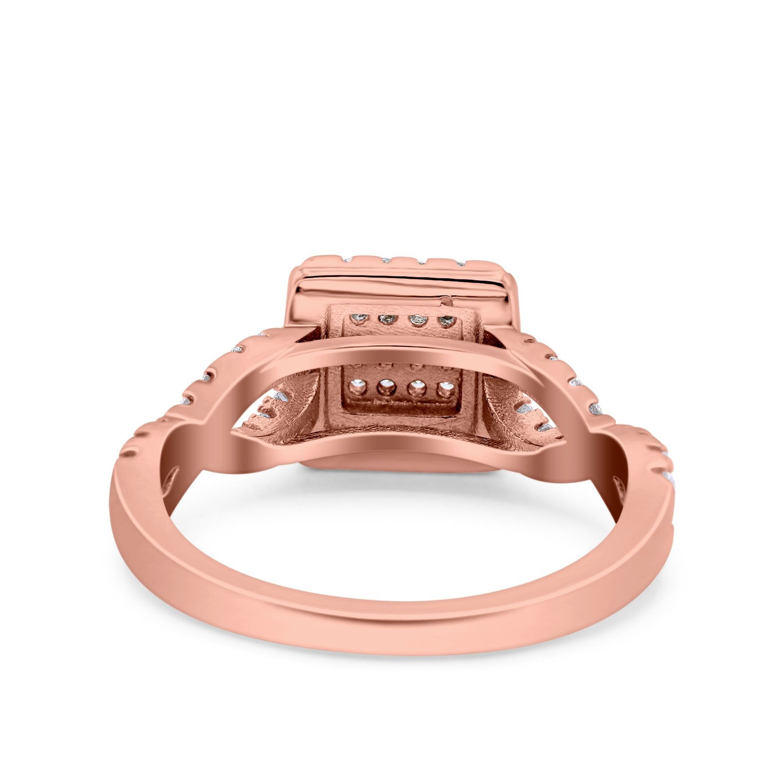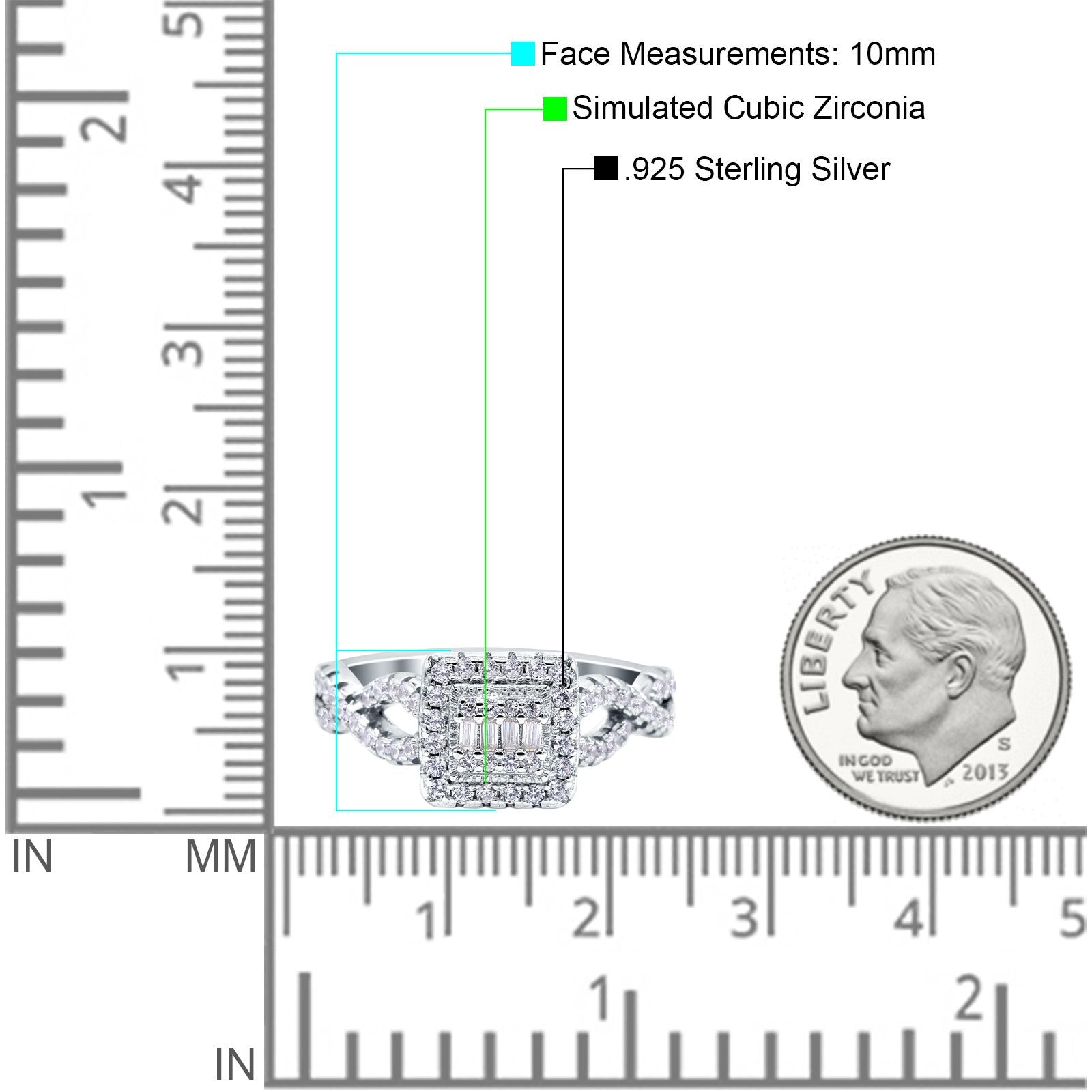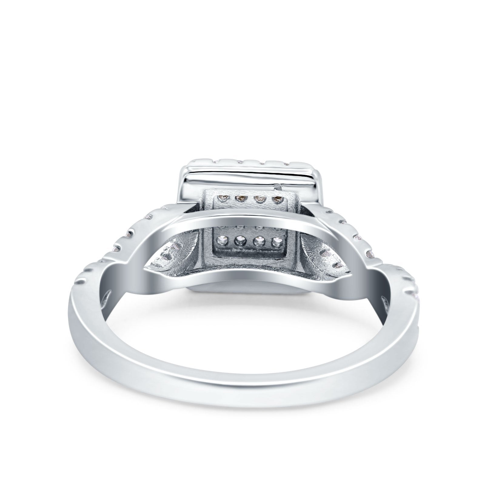 Halo Art Deco Ring Square Wedding Engagement Infinity Band Round Pave Simulated Cubic Zirconia 925 Sterling Silver (10mm)
