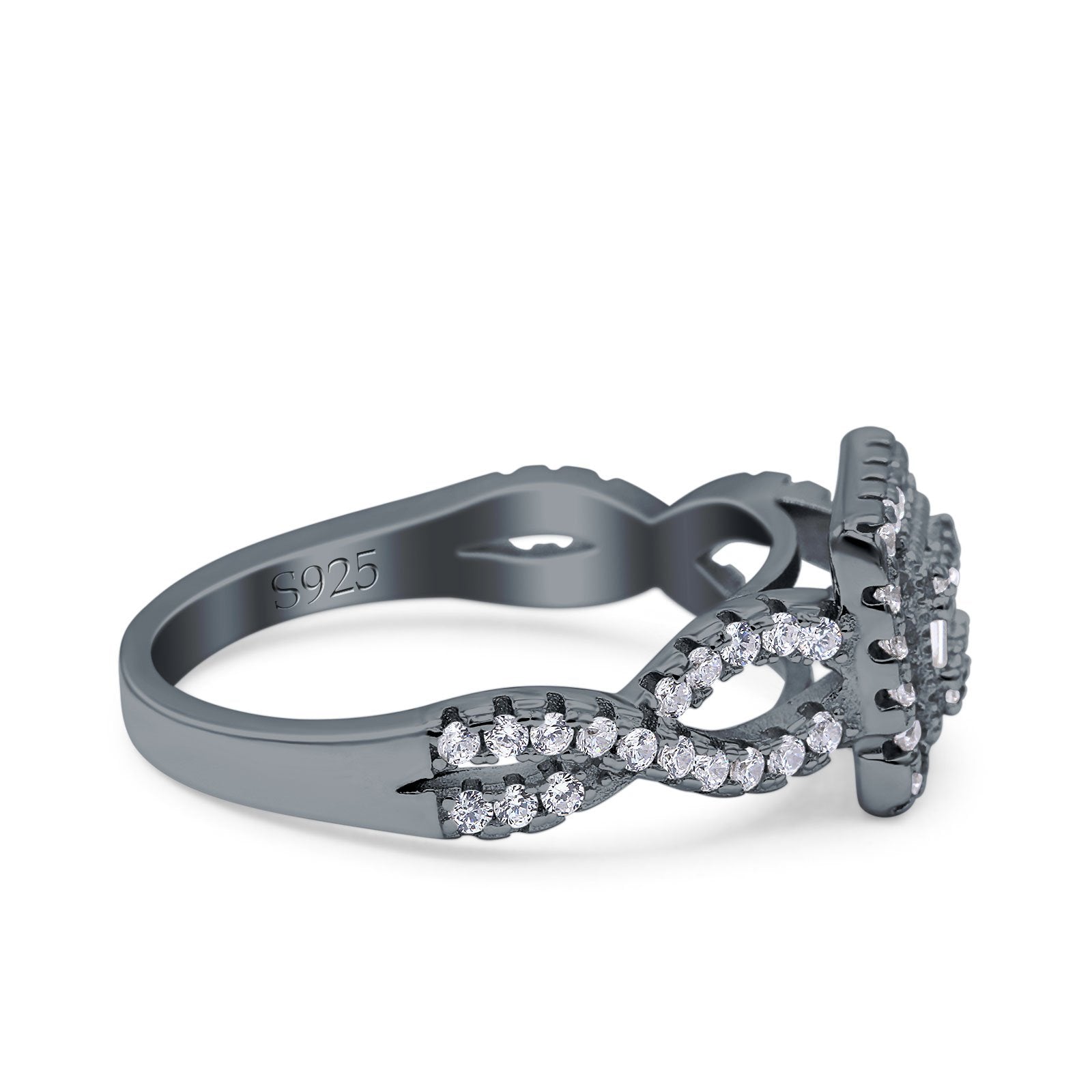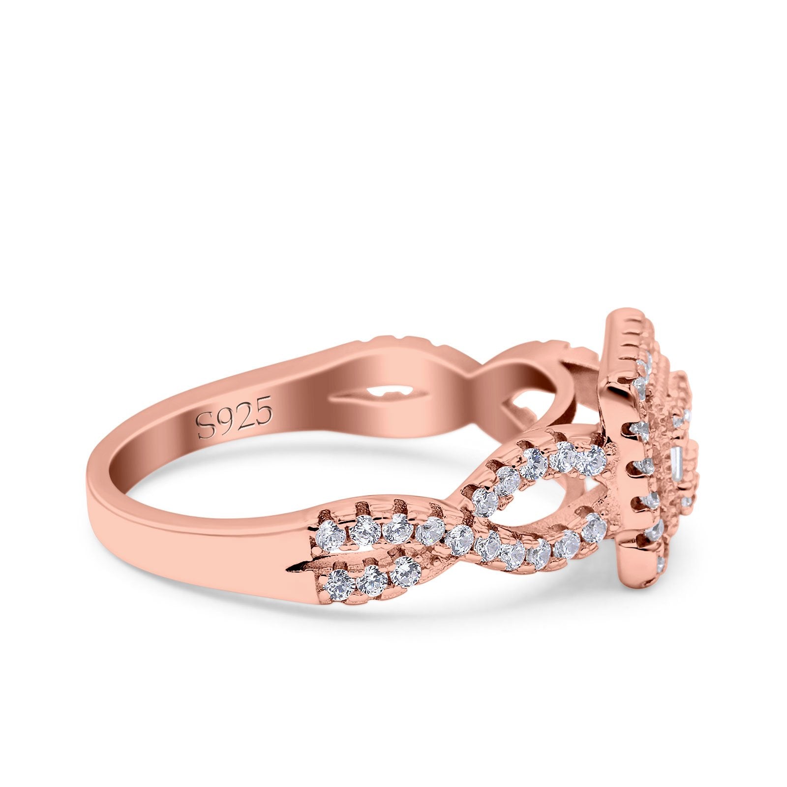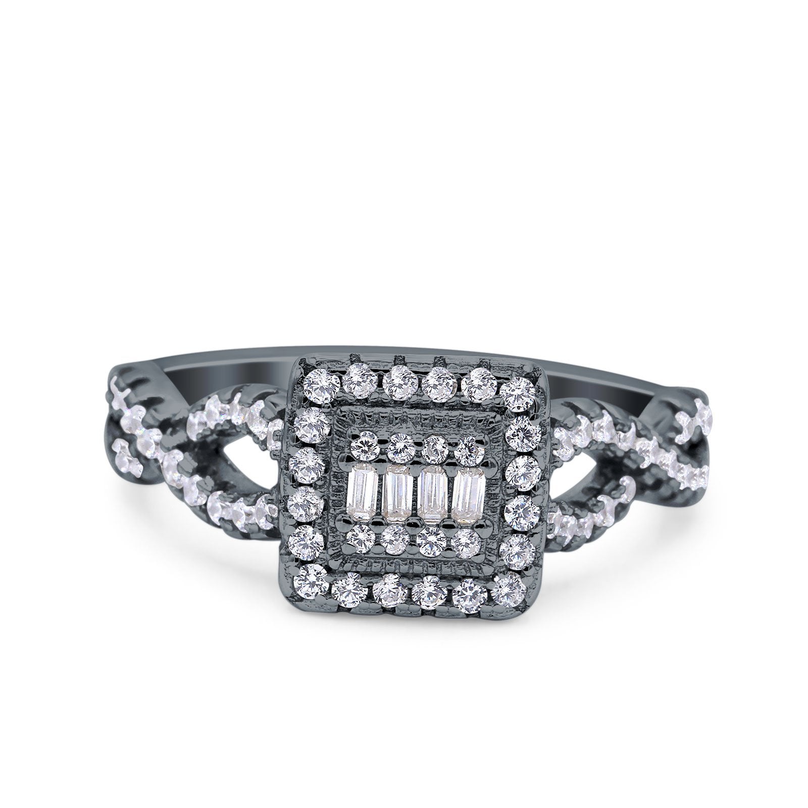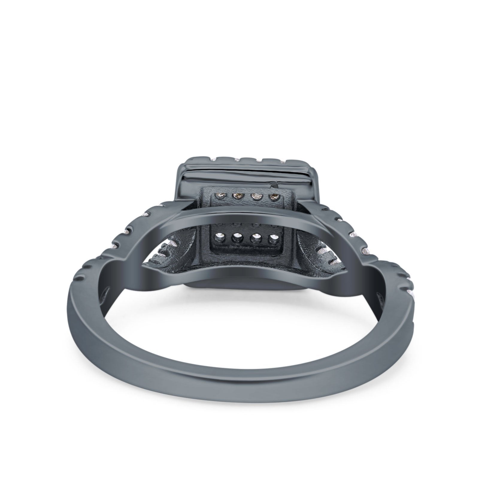 Halo Art Deco Ring Square Wedding Engagement Infinity Band Round Pave Simulated Cubic Zirconia 925 Sterling Silver (10mm)