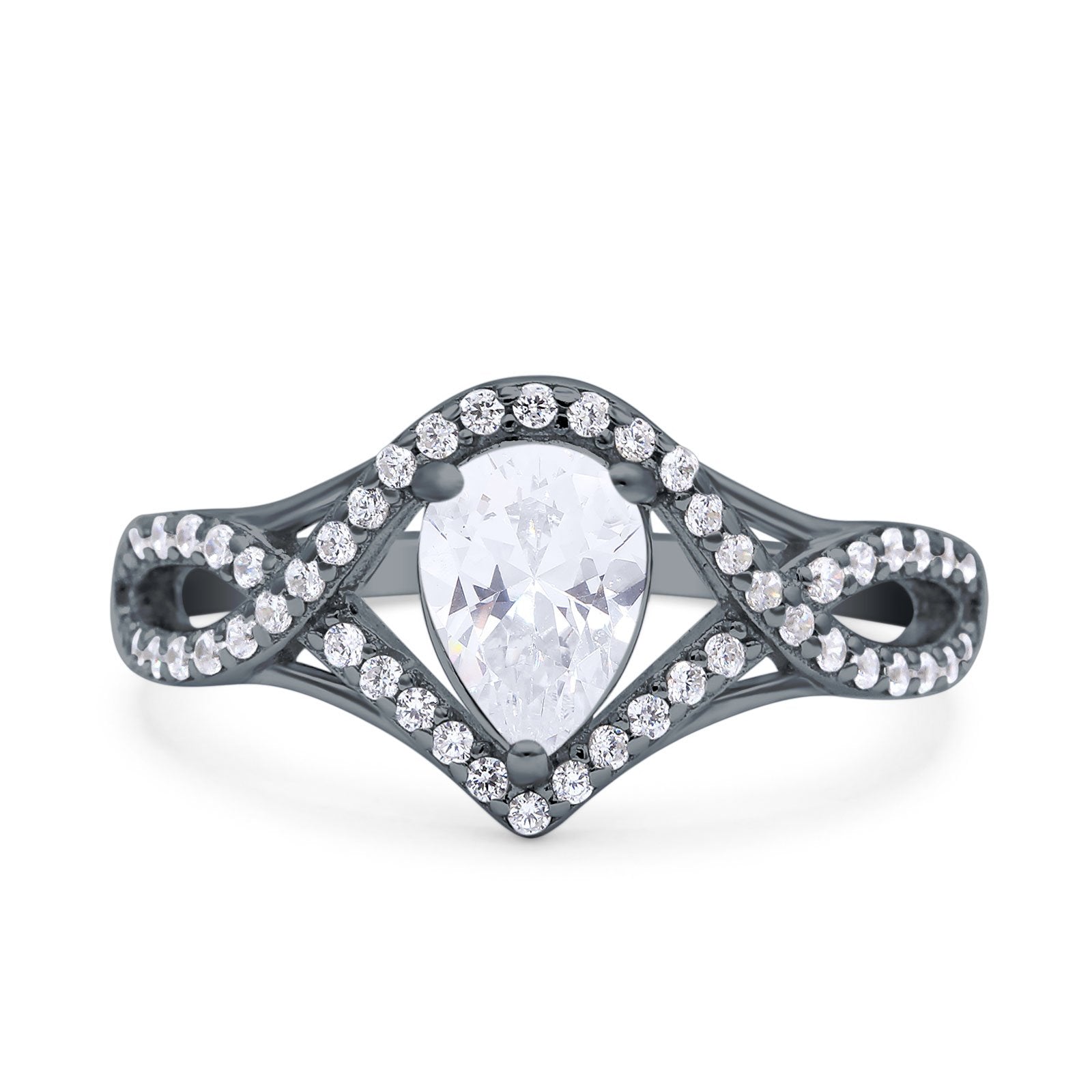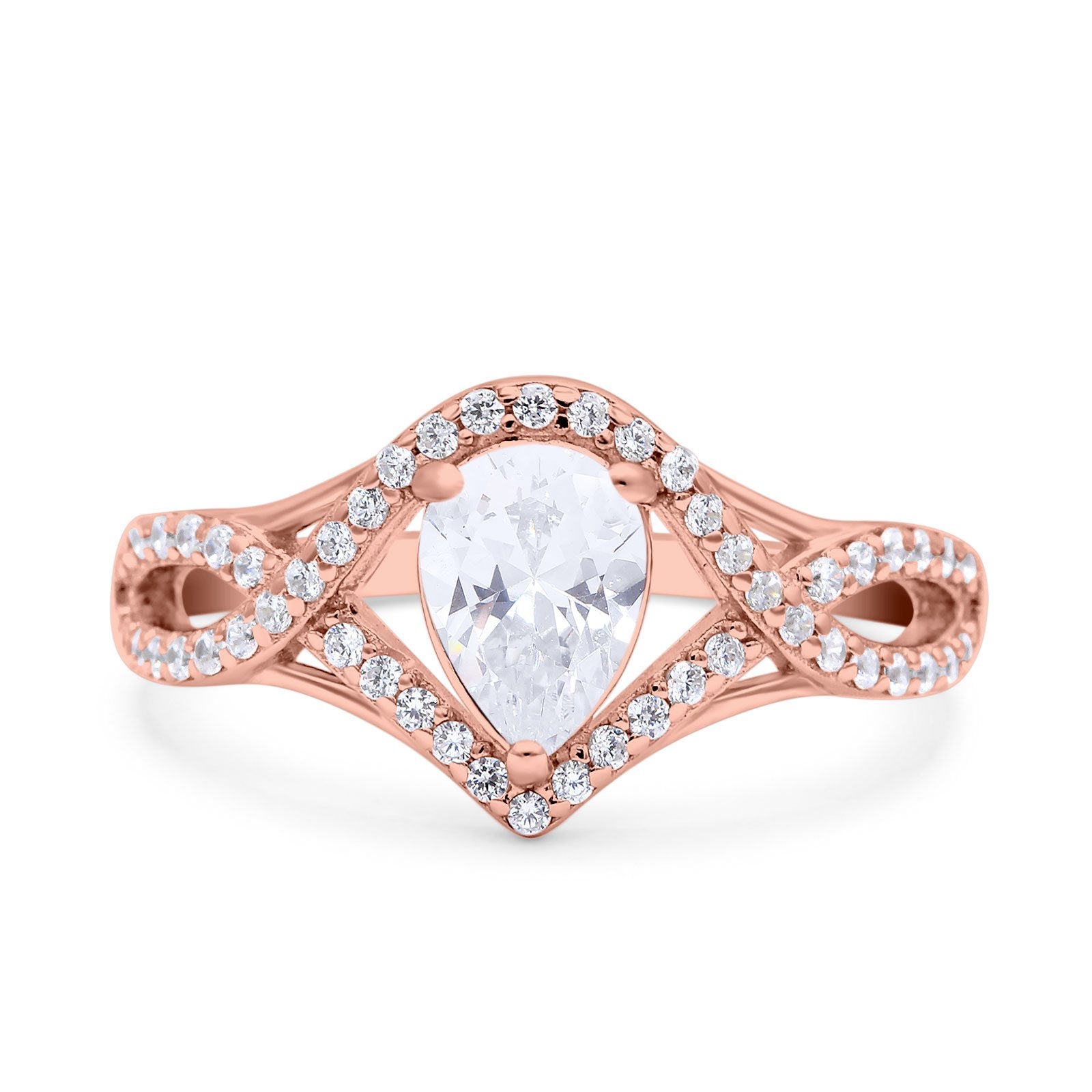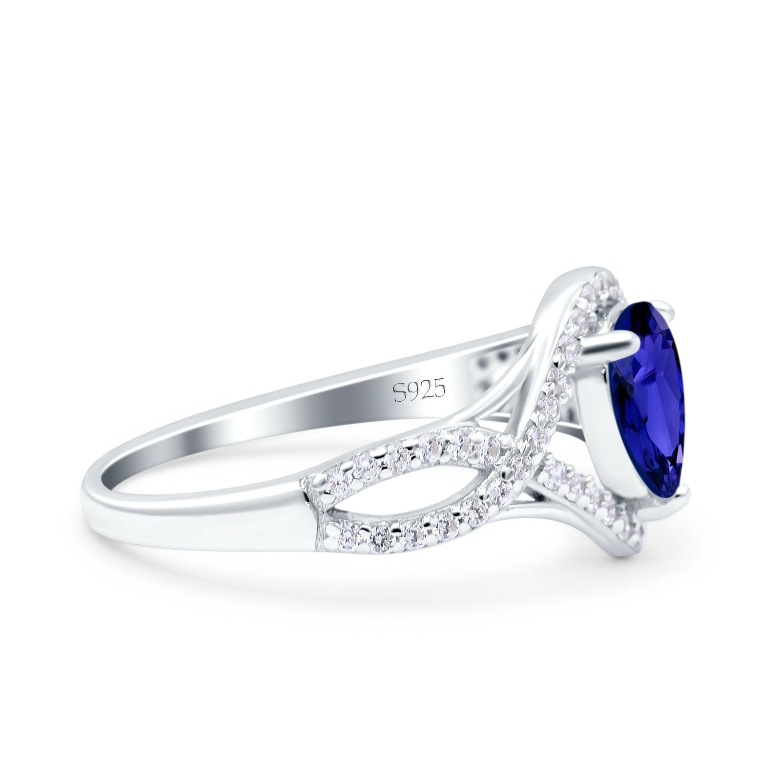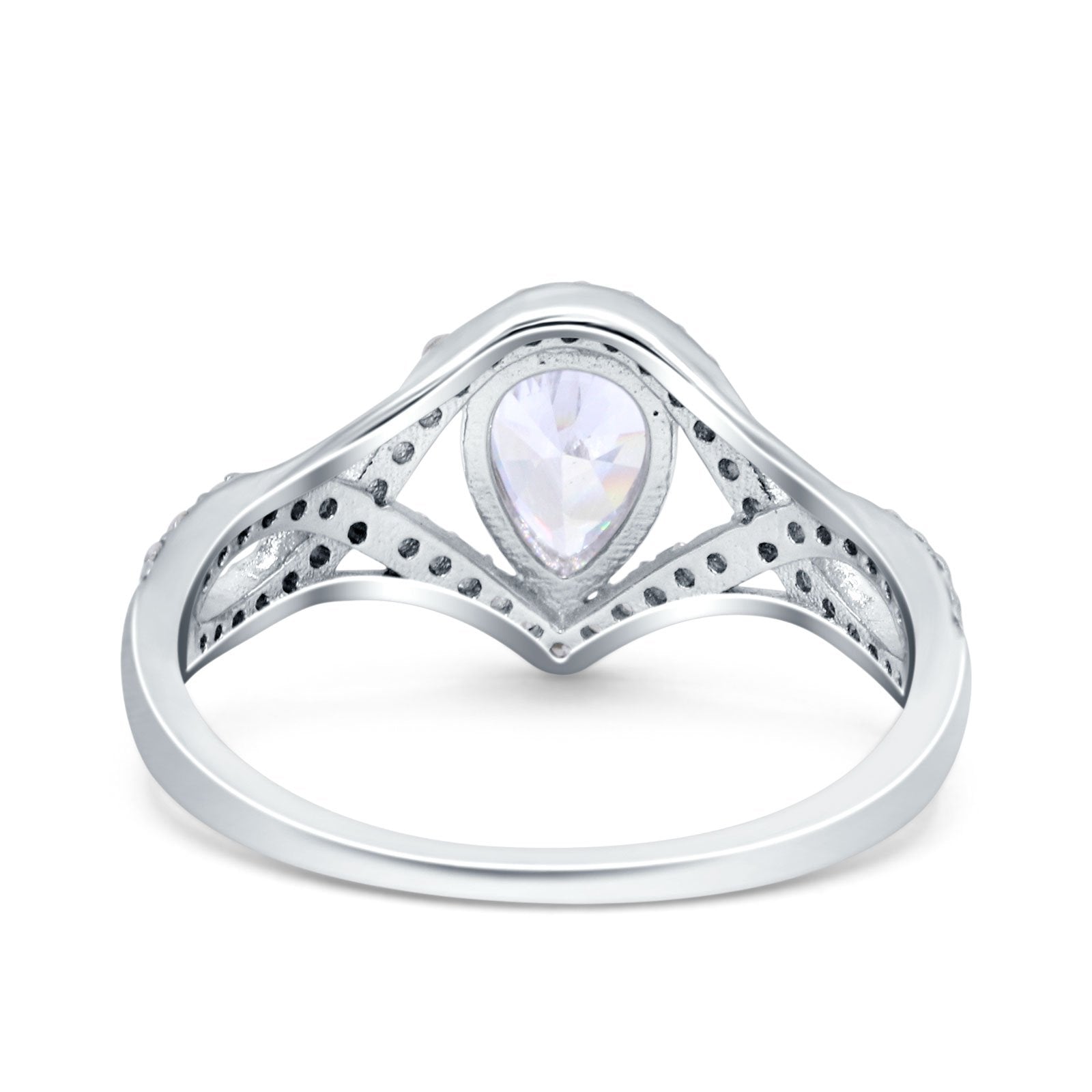 Halo Art Deco Wedding Pear Bridal Ring Crisscross Round Simulated Cubic Zirconia 925 Sterling Silver