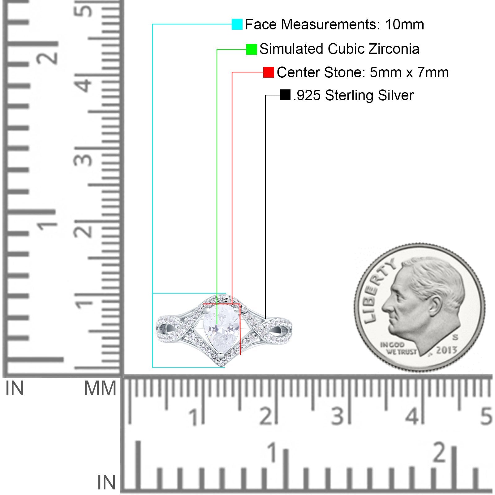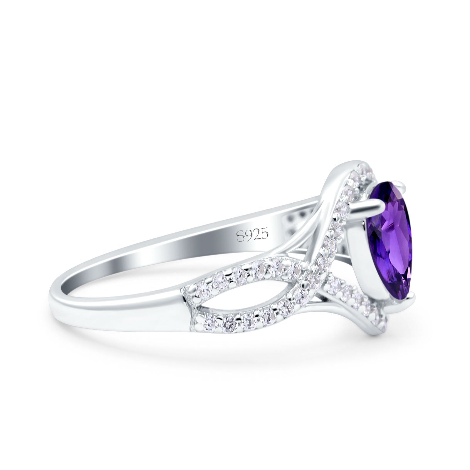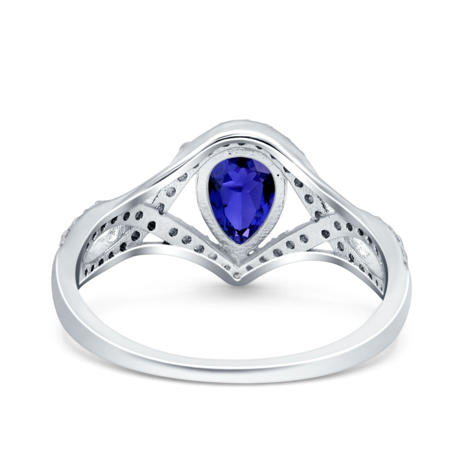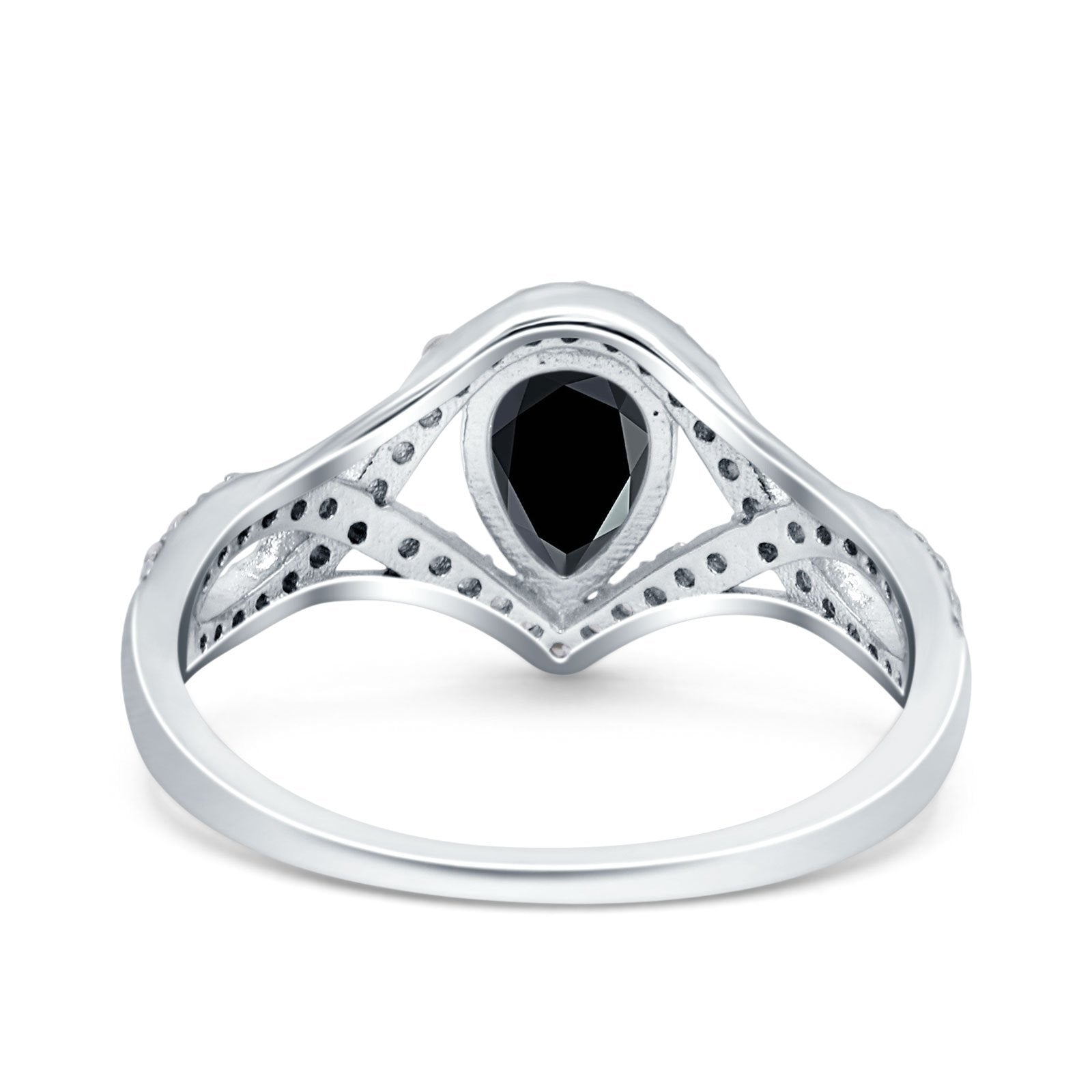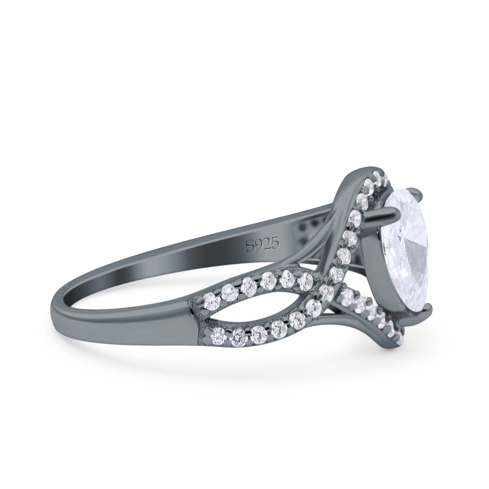 Halo Art Deco Wedding Pear Bridal Ring Crisscross Round Simulated Cubic Zirconia 925 Sterling Silver