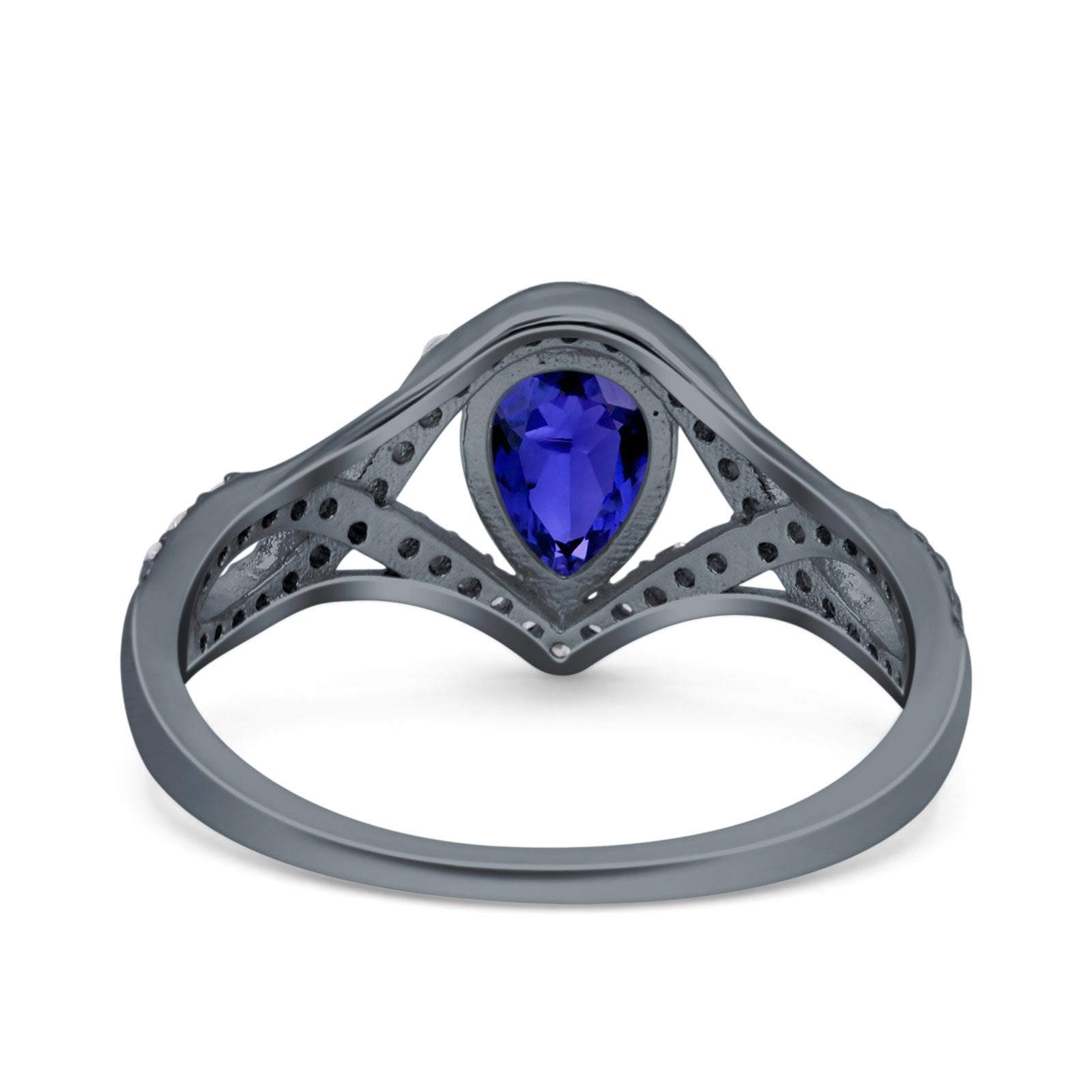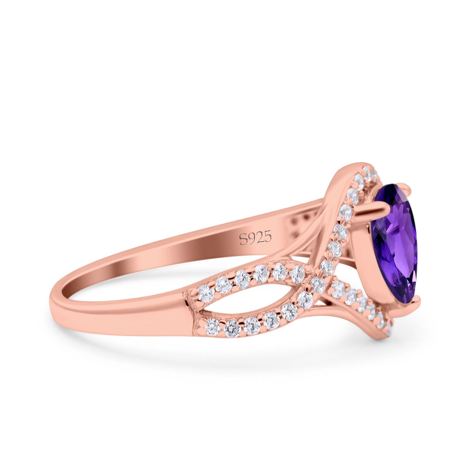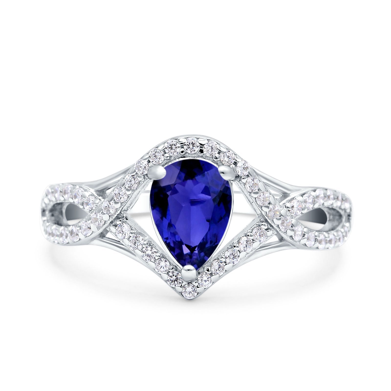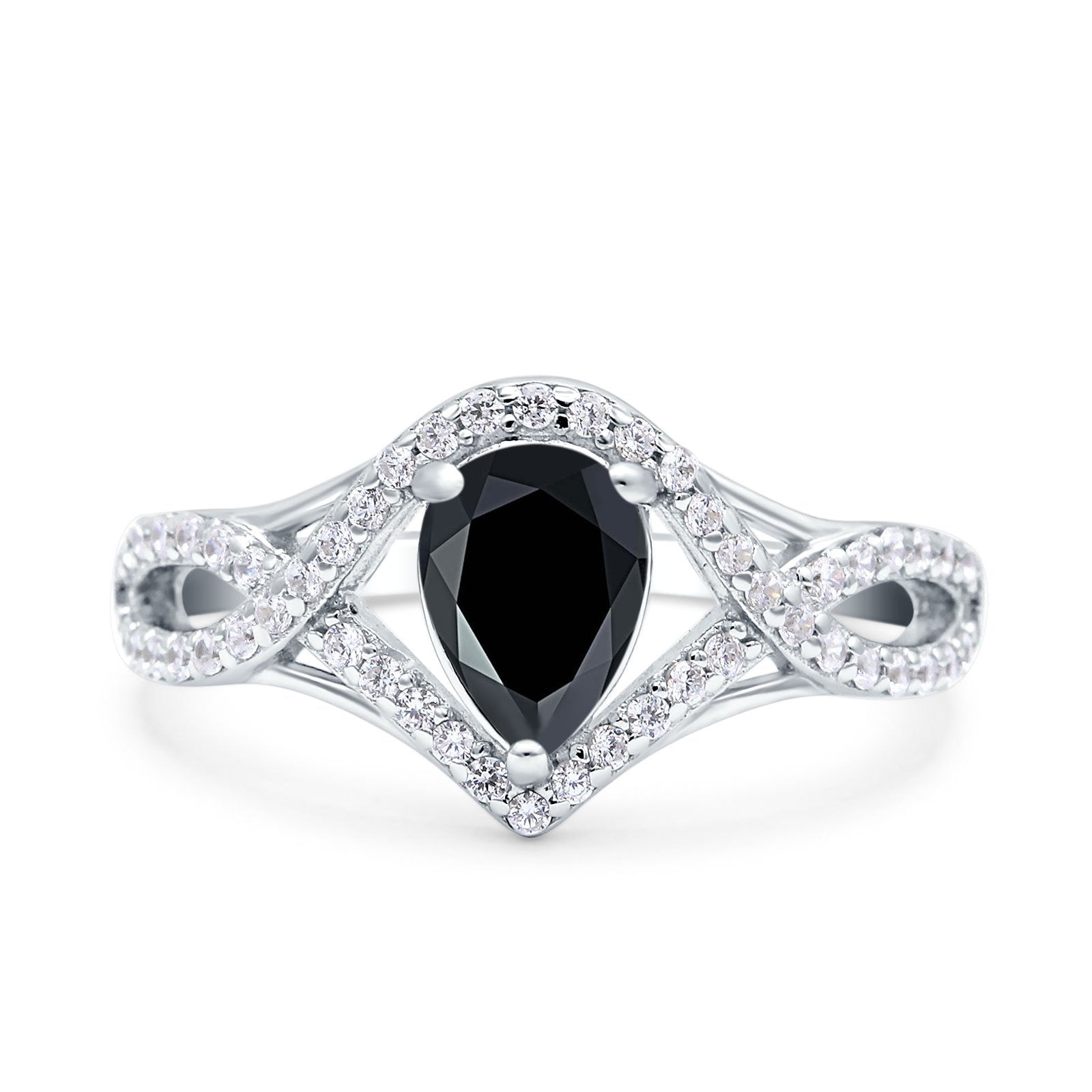 Halo Art Deco Wedding Pear Bridal Ring Crisscross Round Simulated Cubic Zirconia 925 Sterling Silver