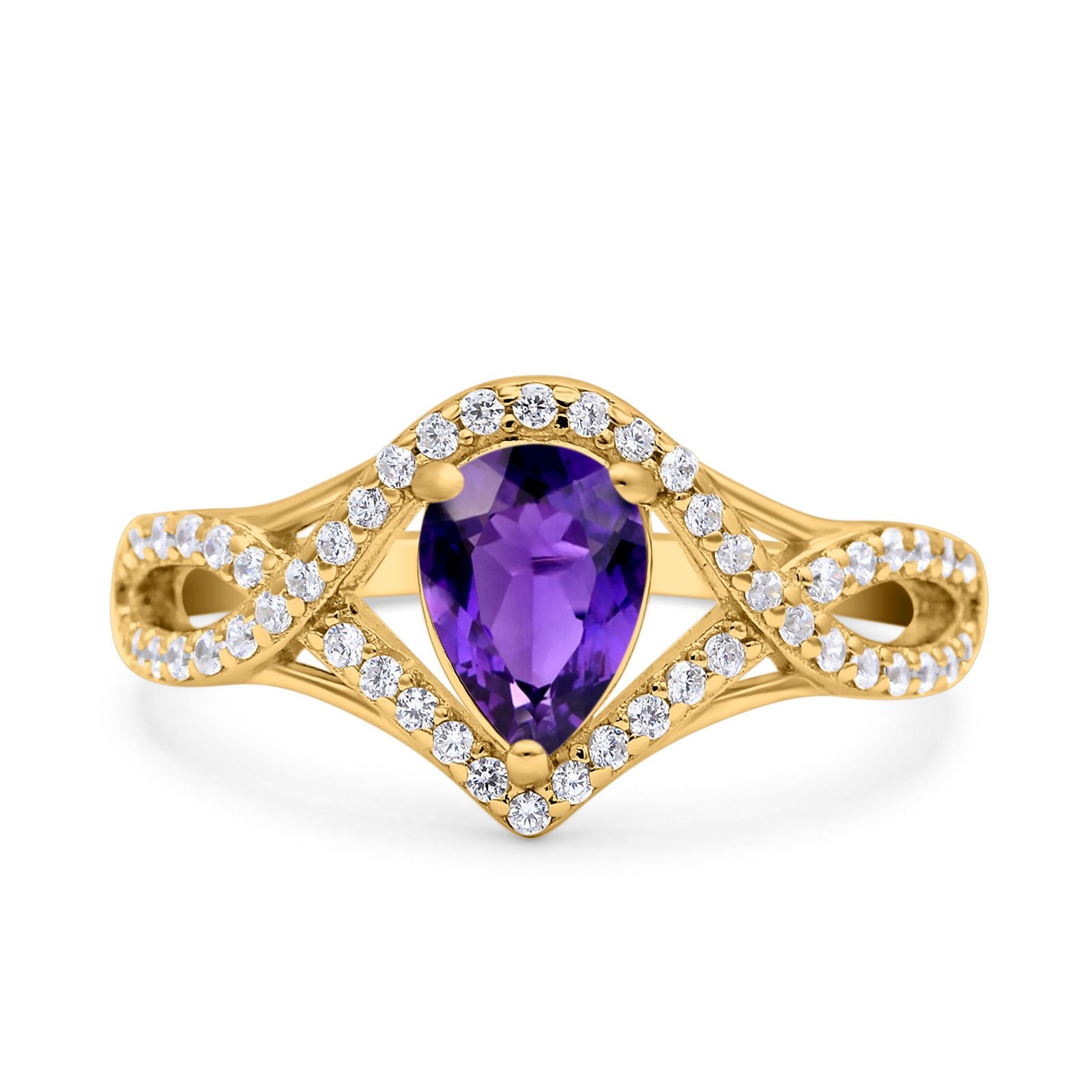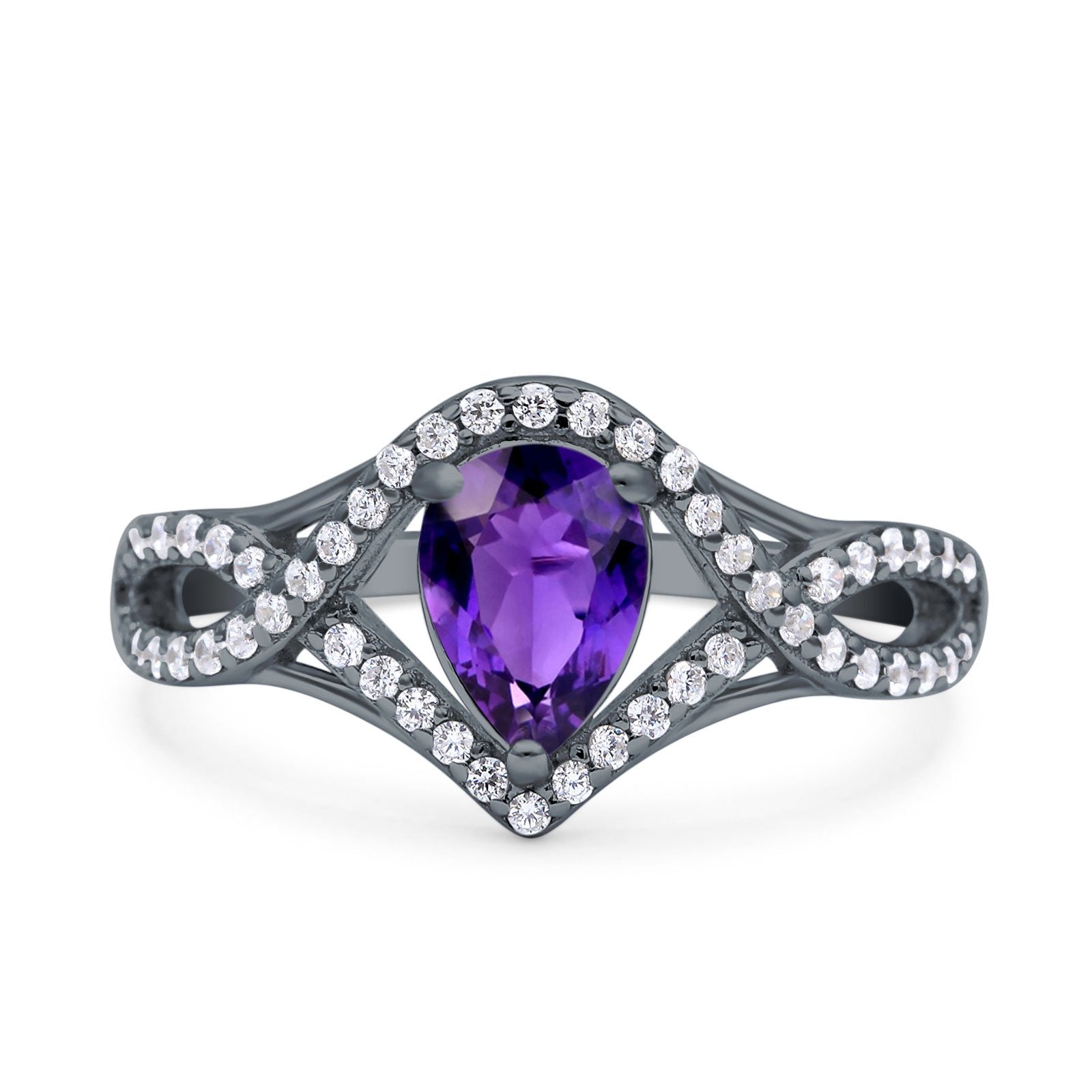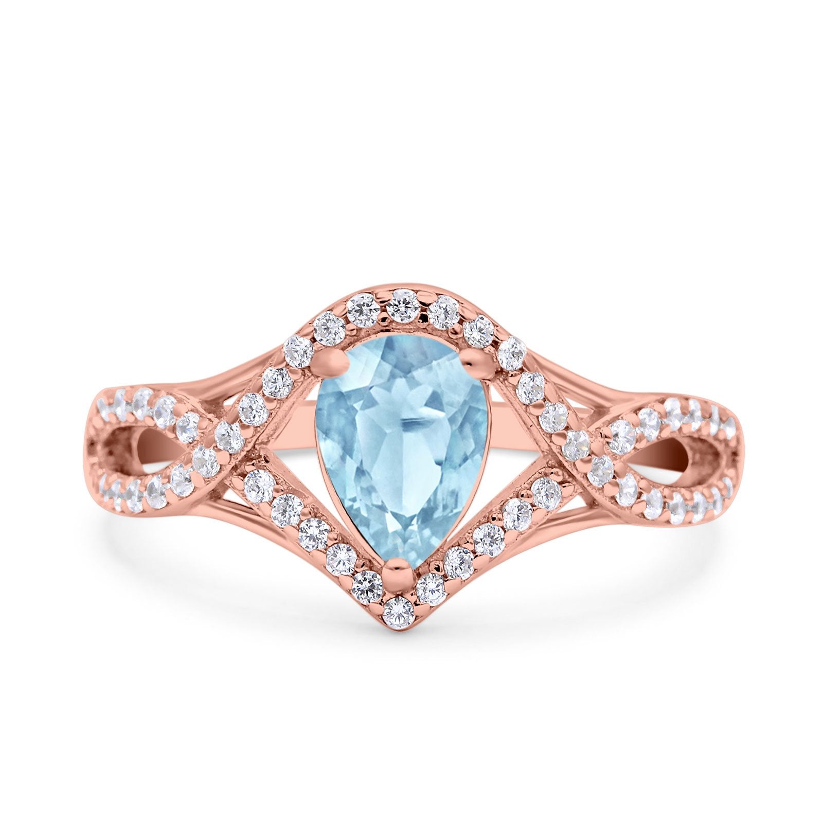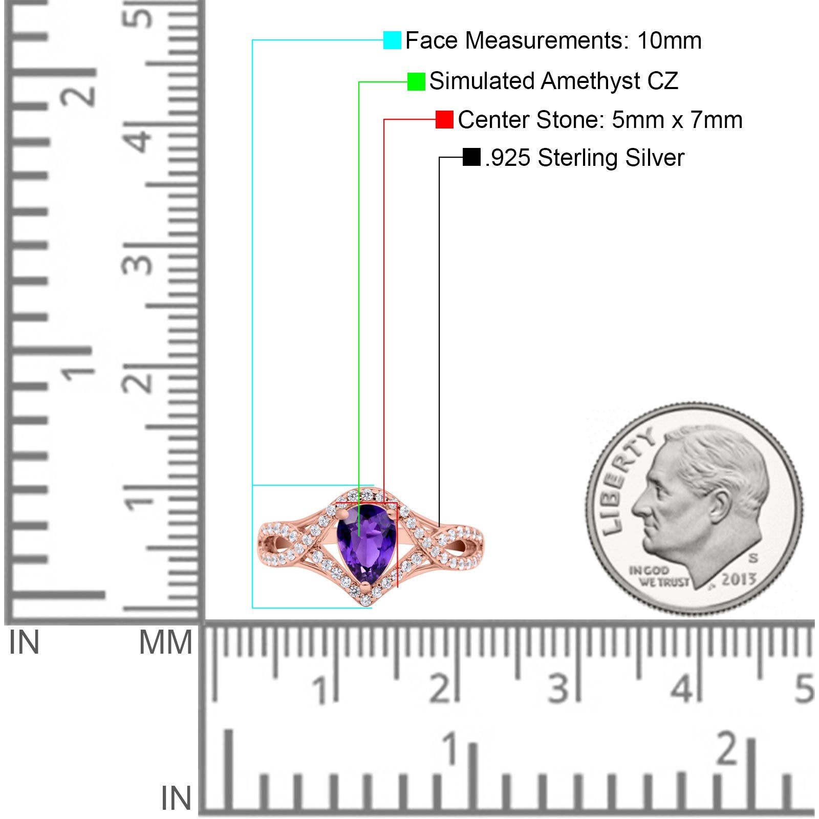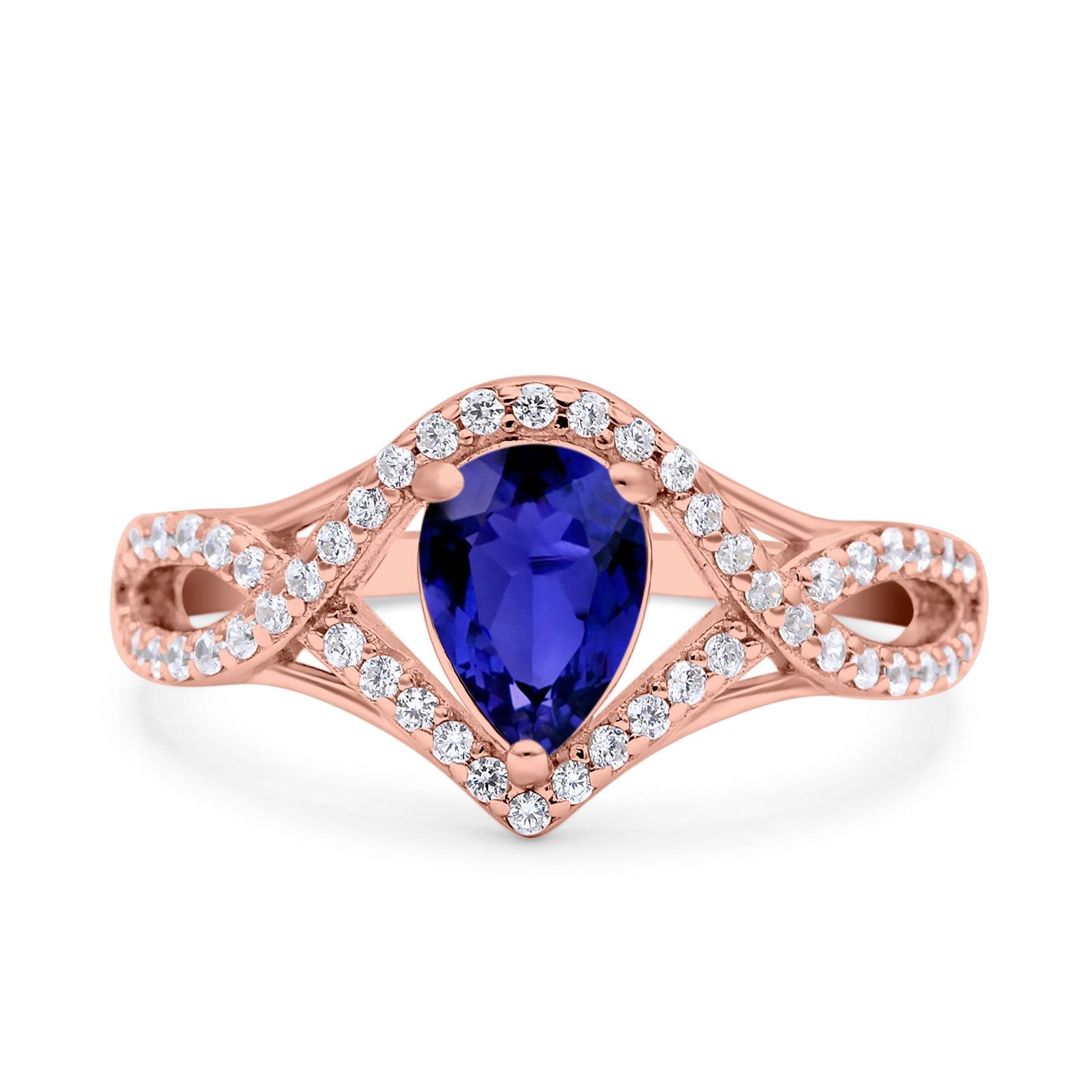 Halo Art Deco Wedding Pear Bridal Ring Crisscross Round Simulated Cubic Zirconia 925 Sterling Silver