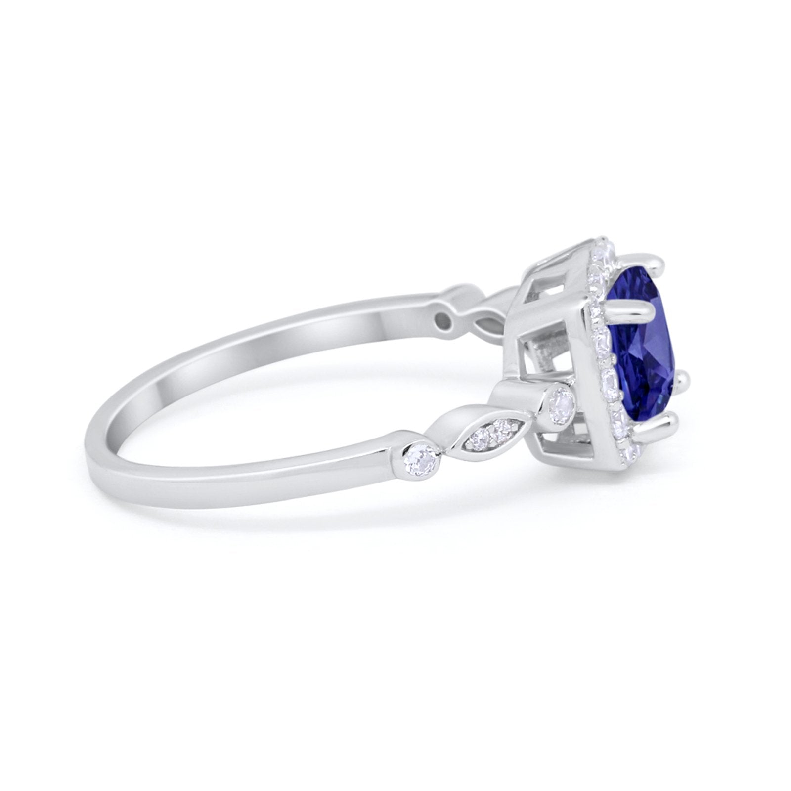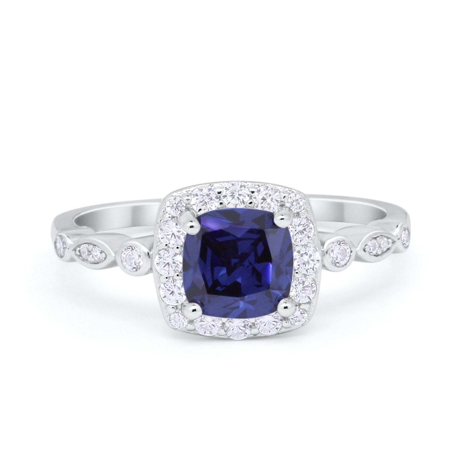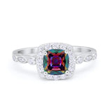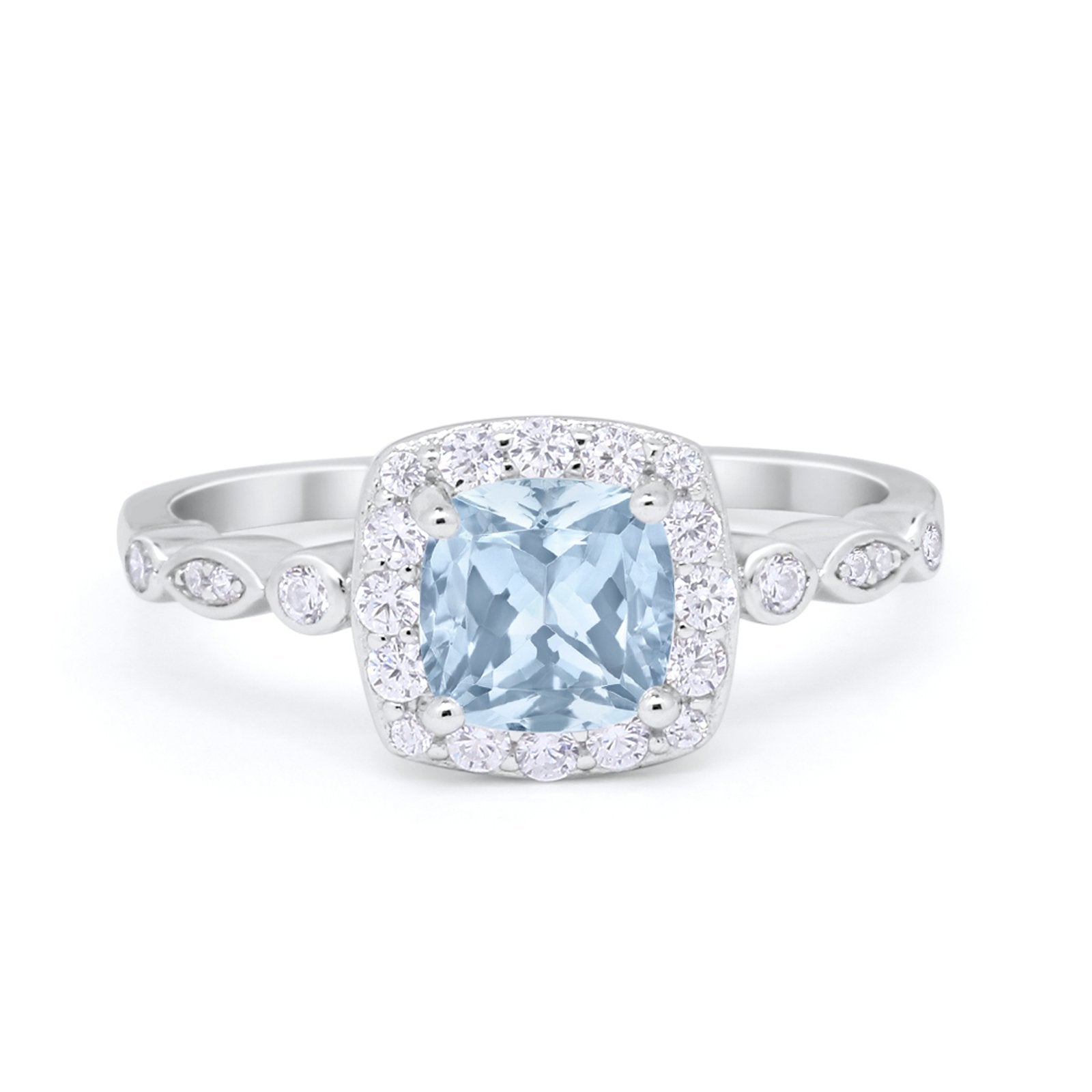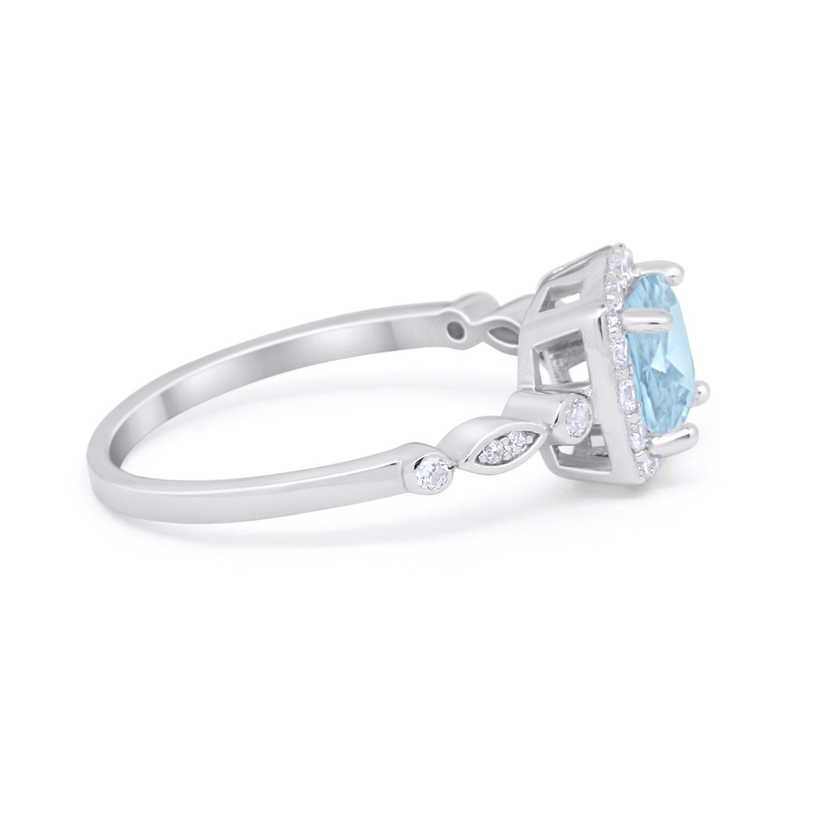 Halo Cushion Art Deco Wedding Engagement Ring Bridal Round Simulated Cubic Zirconia 925 Sterling Silver