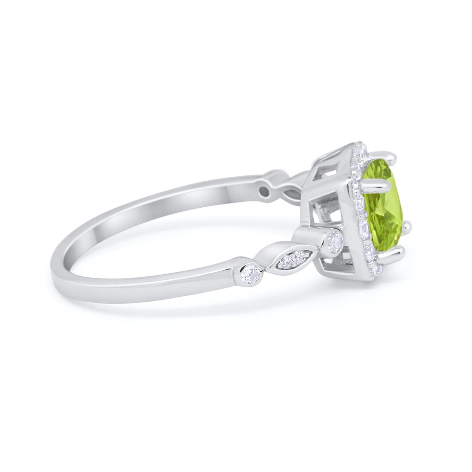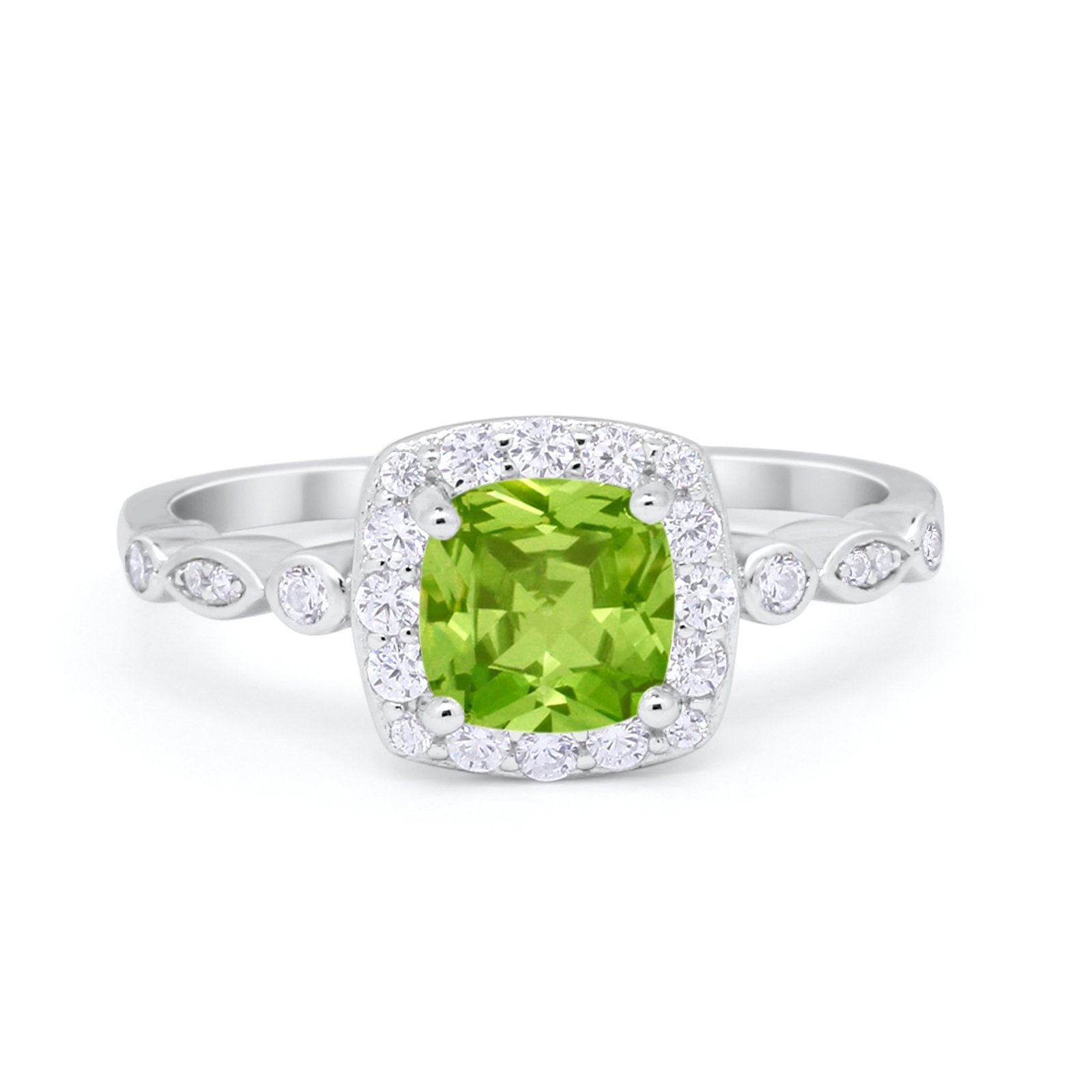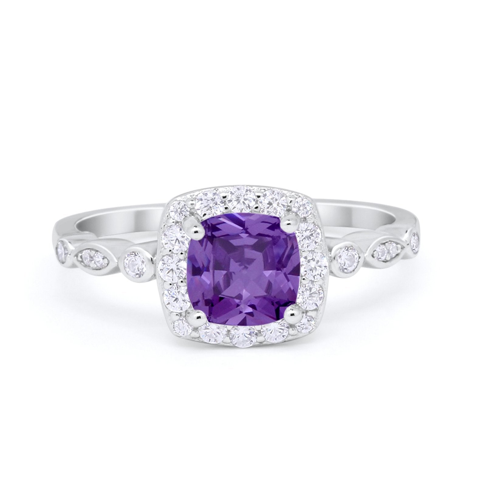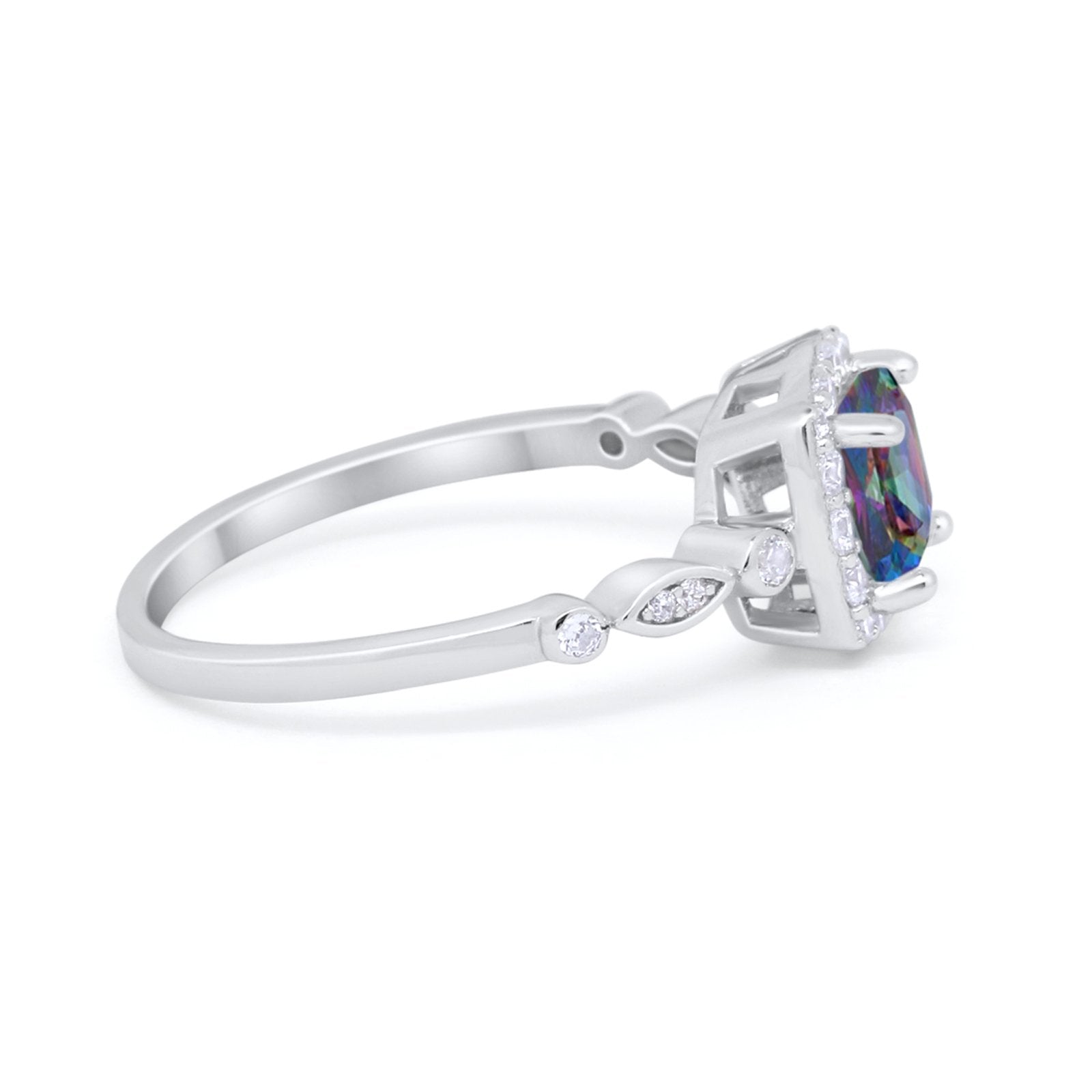 Halo Cushion Art Deco Wedding Engagement Ring Bridal Round Simulated Cubic Zirconia 925 Sterling Silver