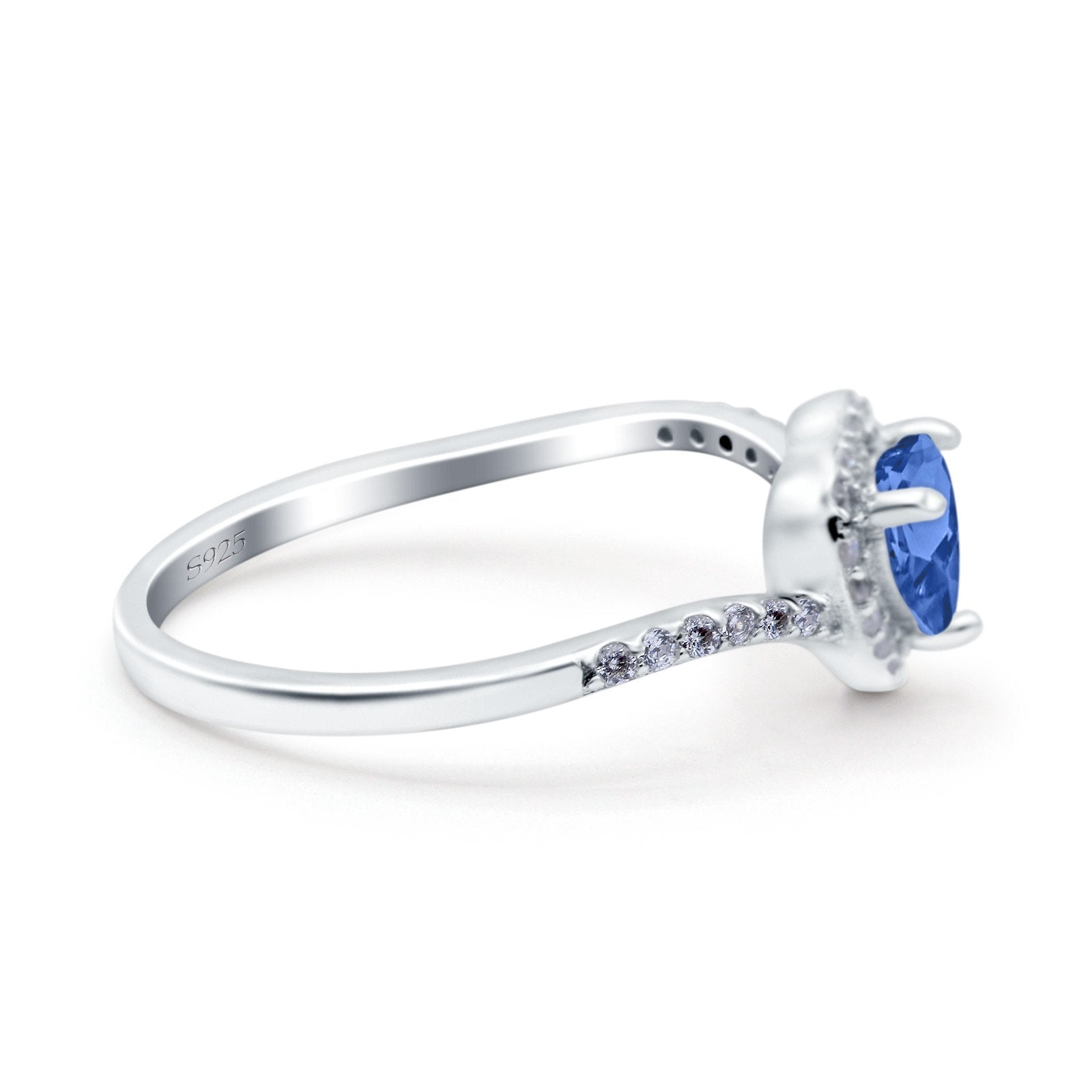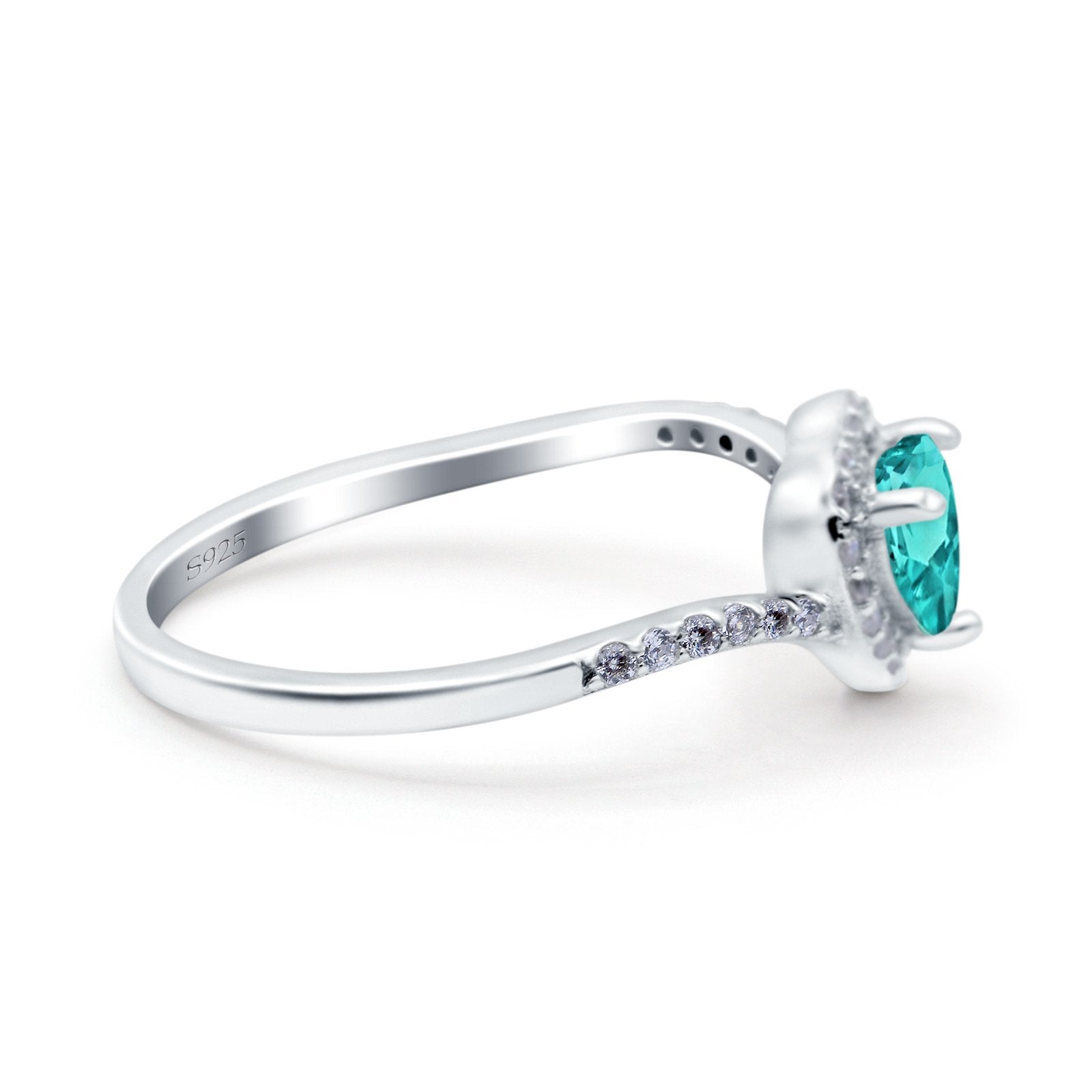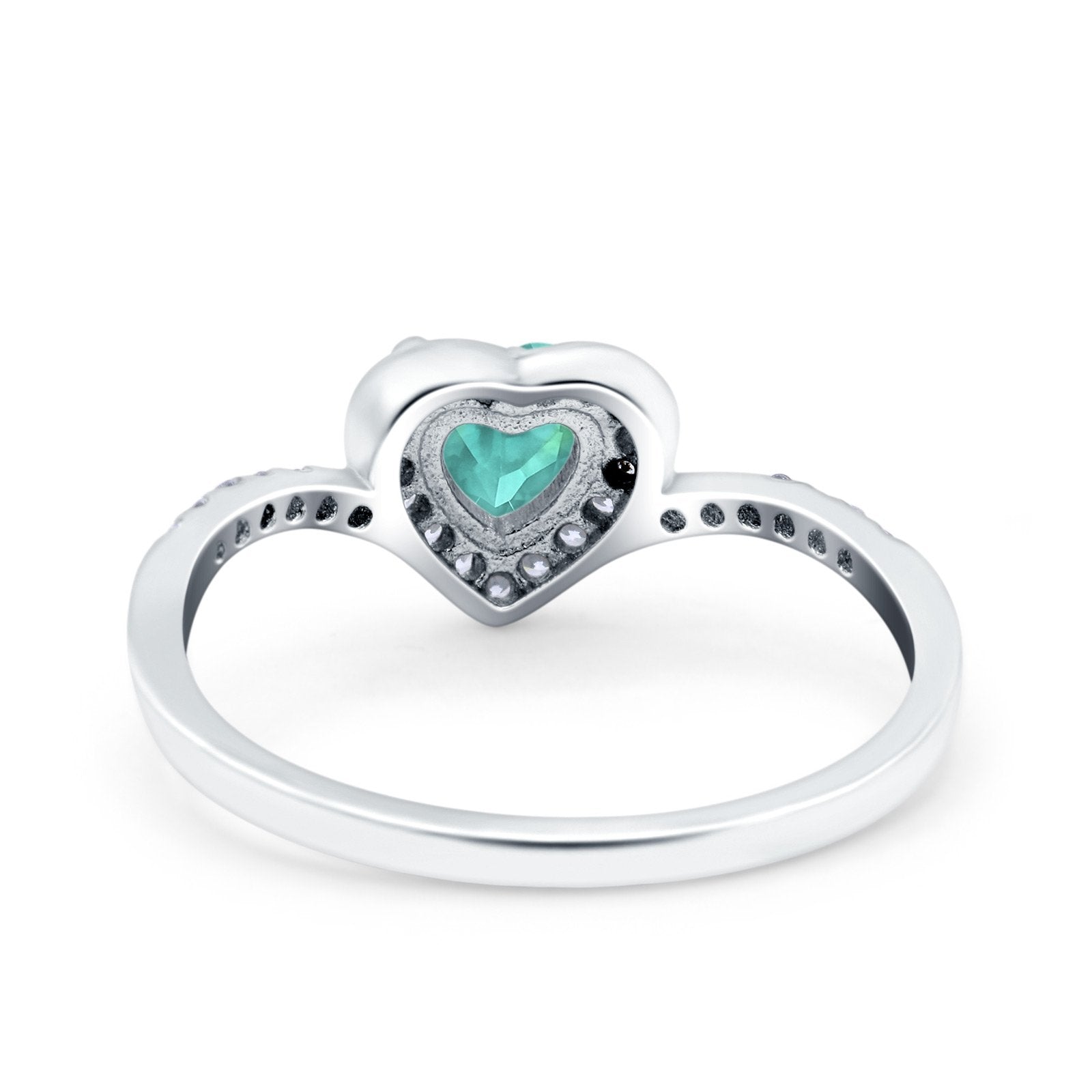 Halo Heart Art Deco Wedding Bridal Ring Round Simulated Cubic Zirconia 925 Sterling Silver