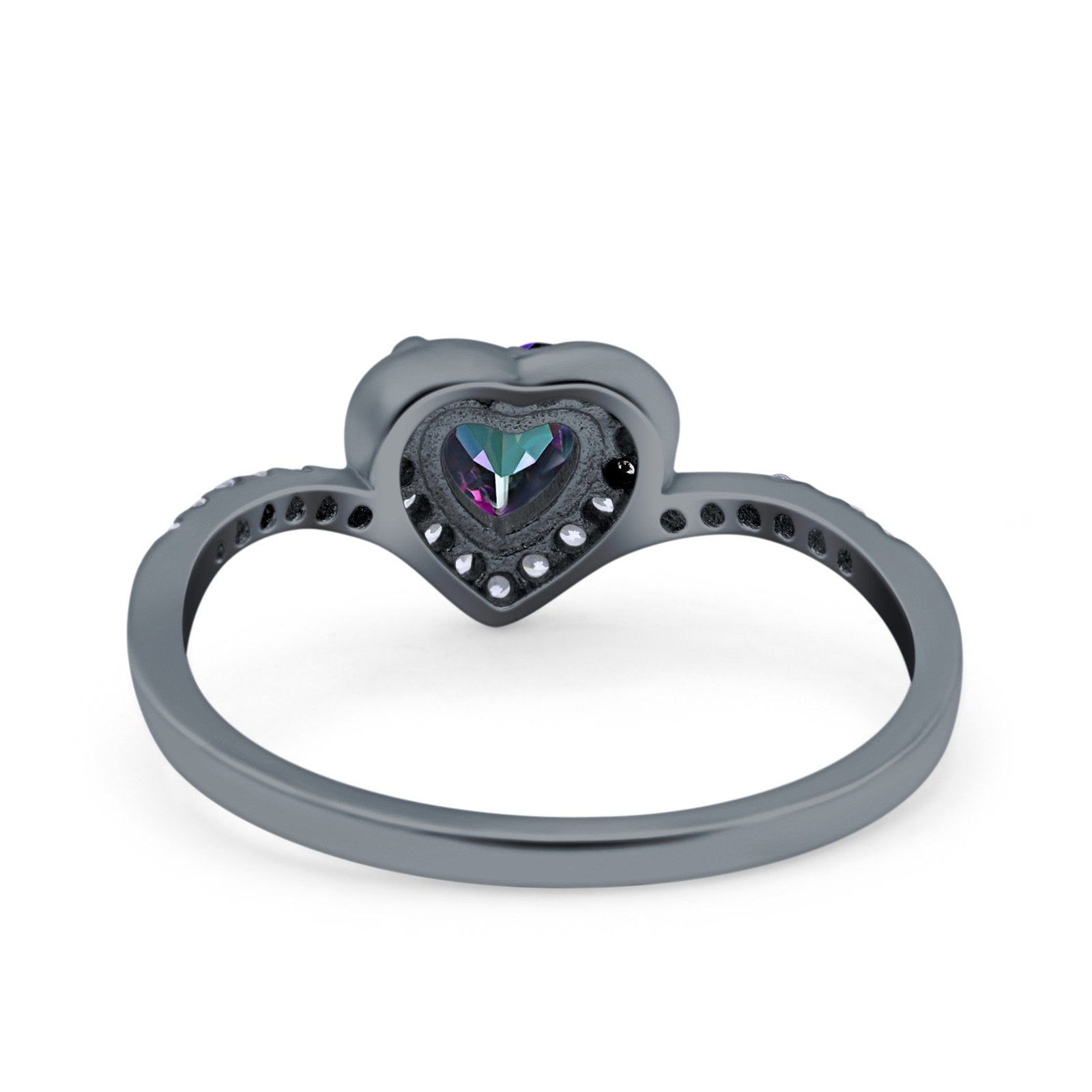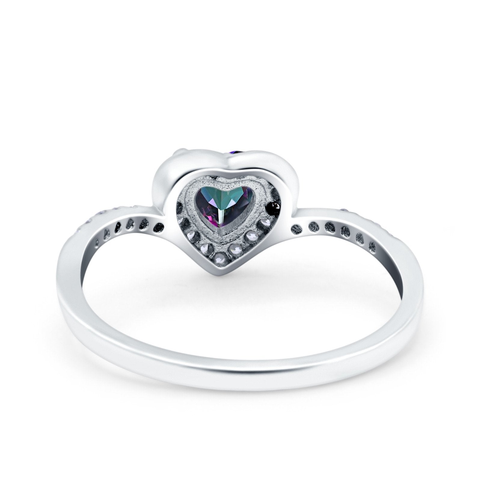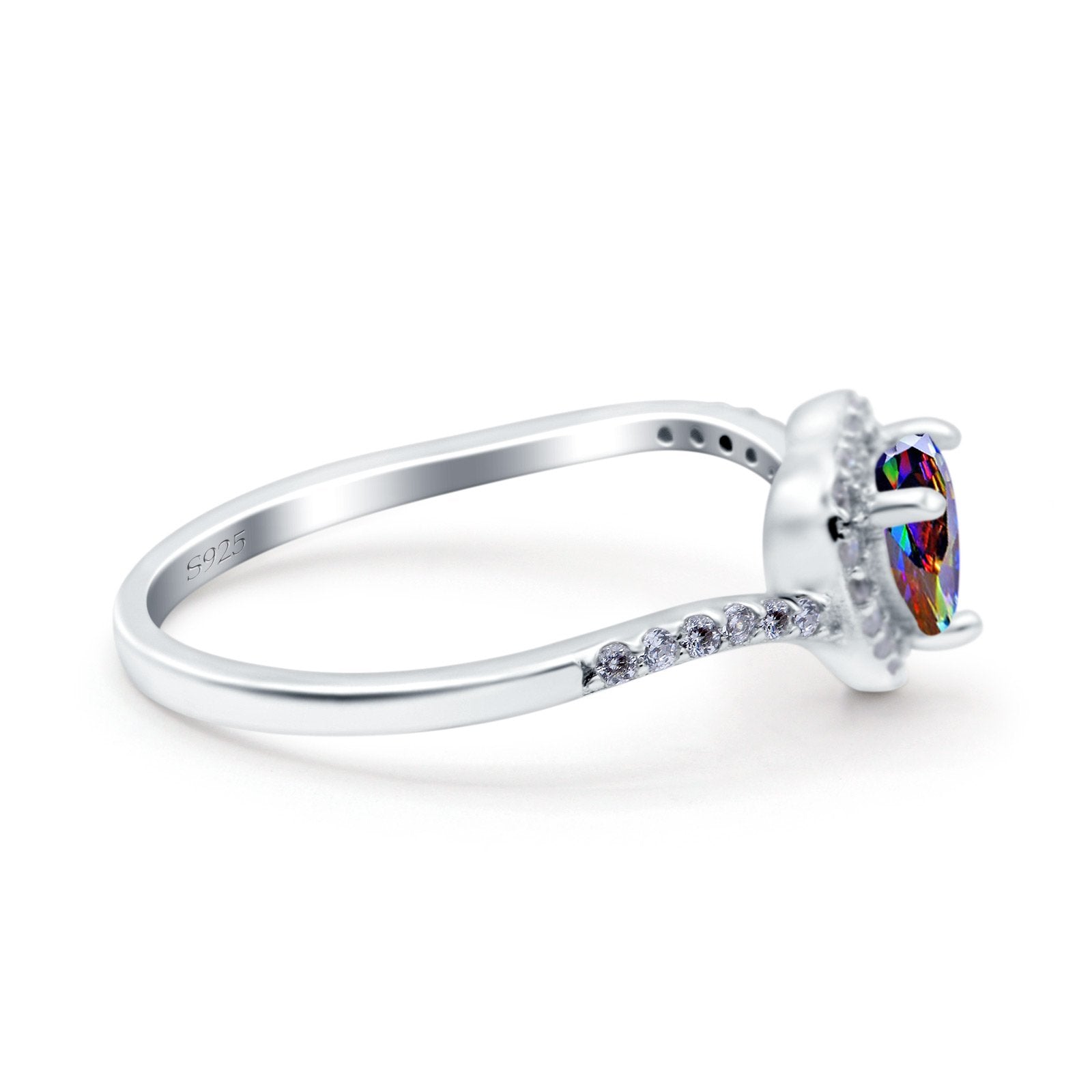 Halo Heart Art Deco Wedding Bridal Ring Round Simulated Cubic Zirconia 925 Sterling Silver