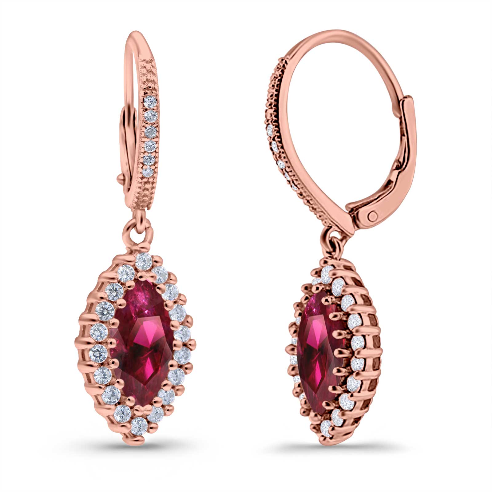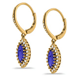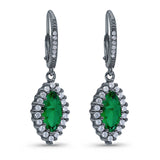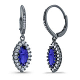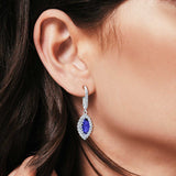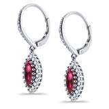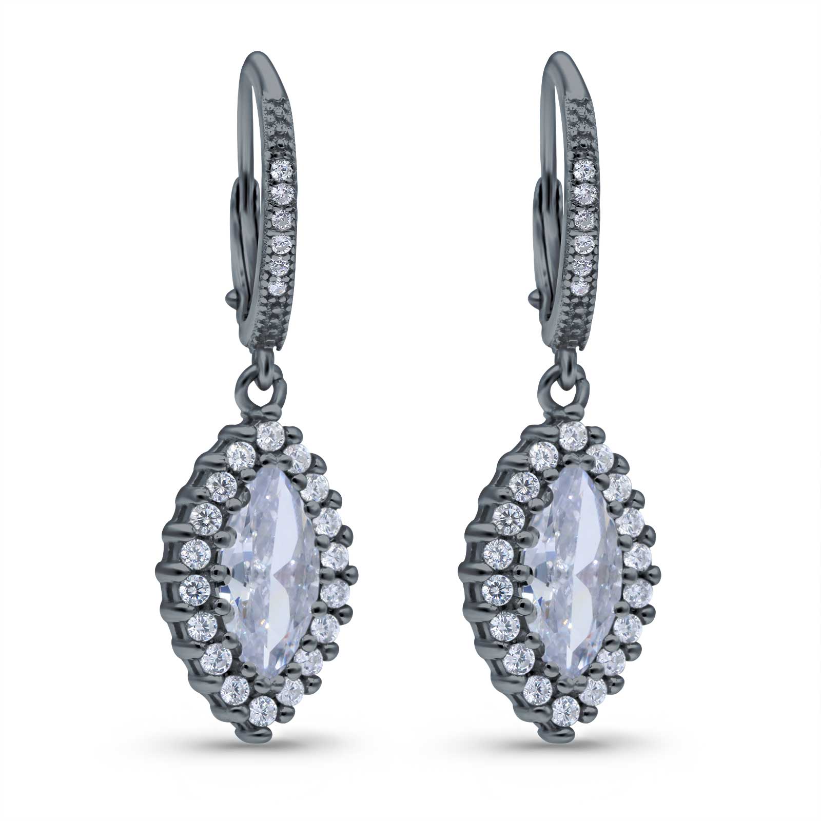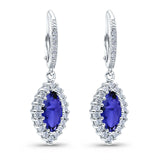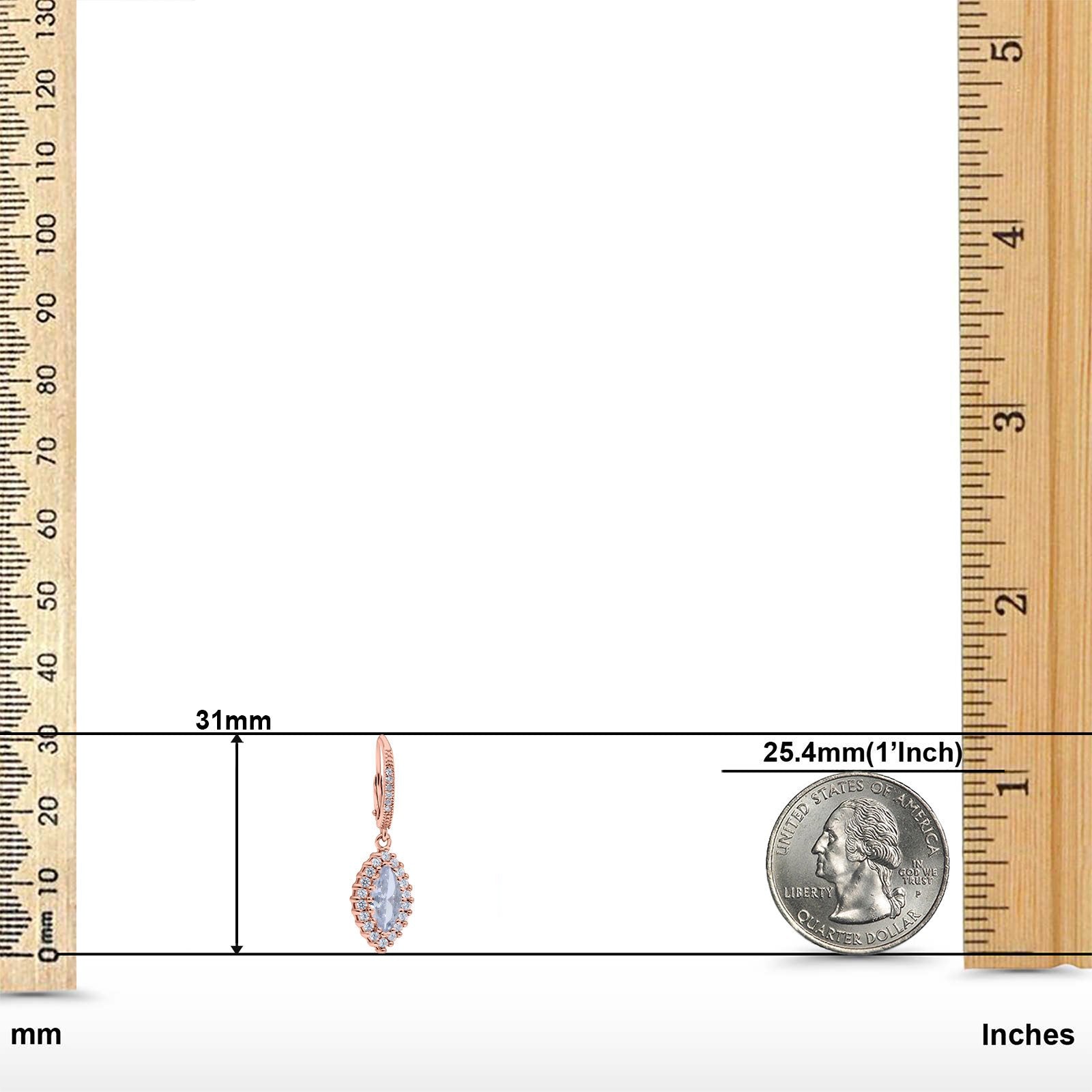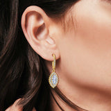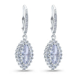Halo Marquise Dangling Leverback Wedding Earrings Simulated Cubic Zirconia 925 Sterling Silver (31mm)