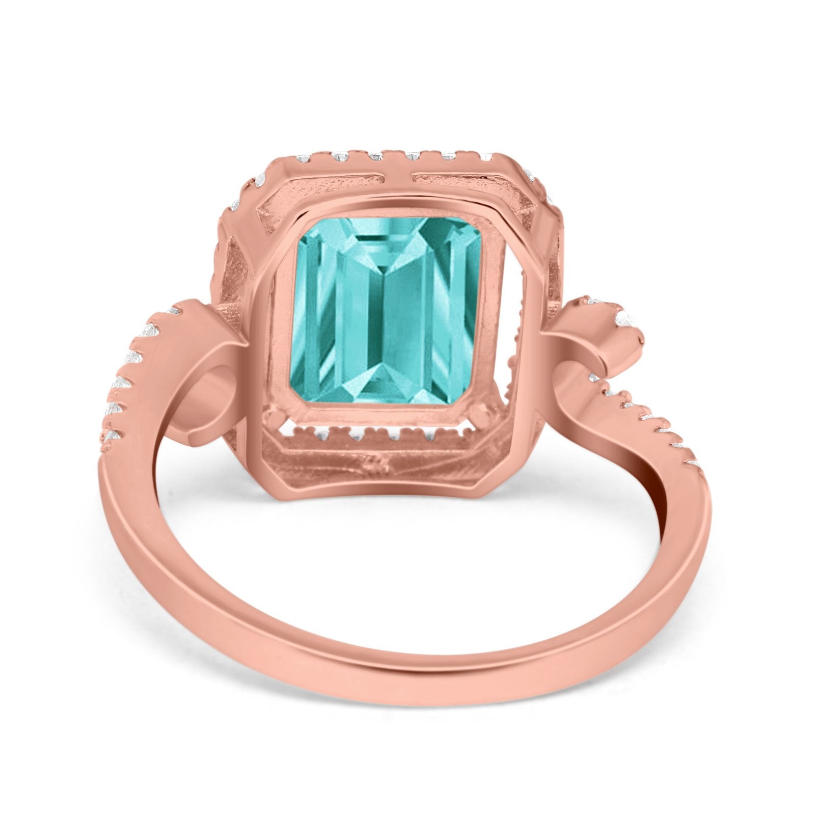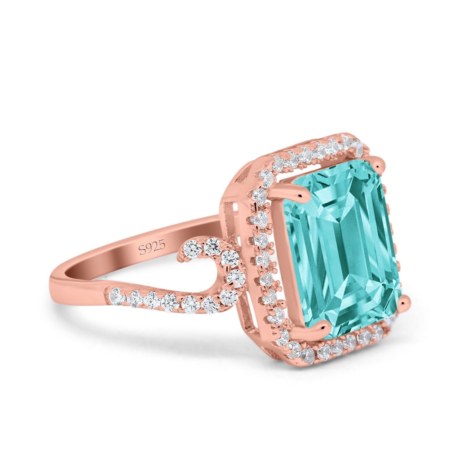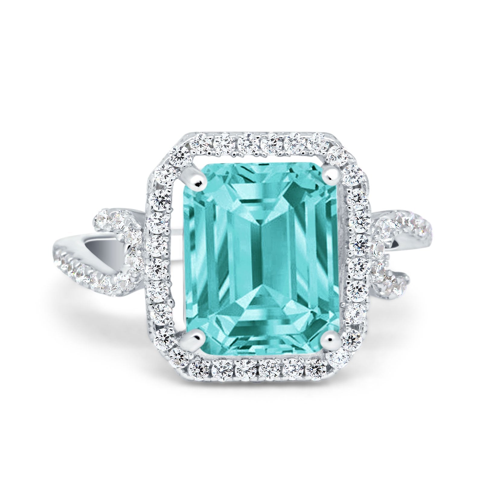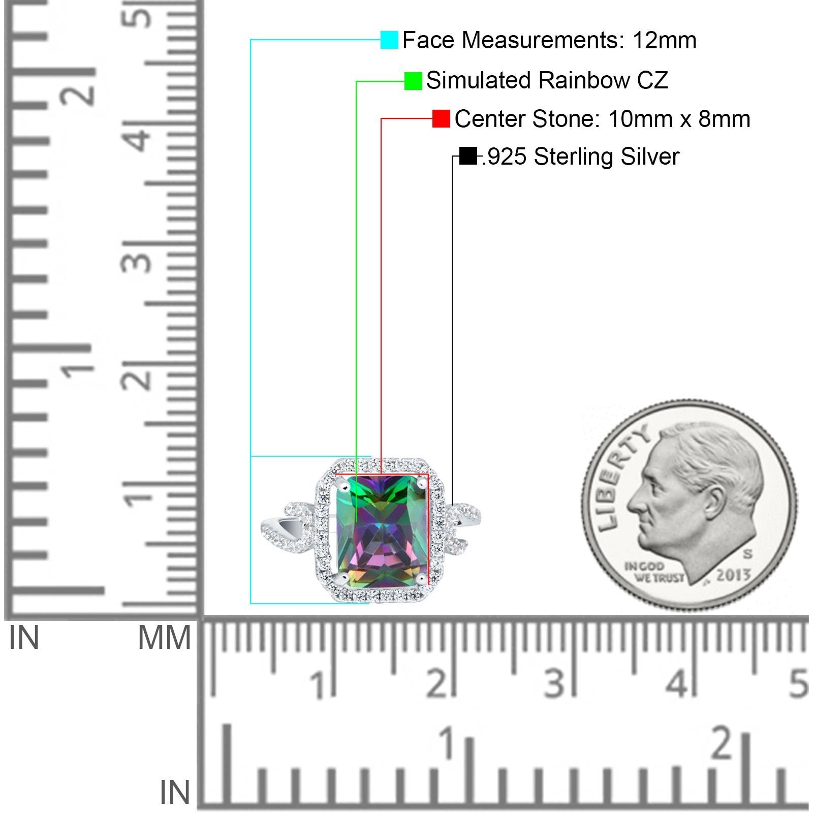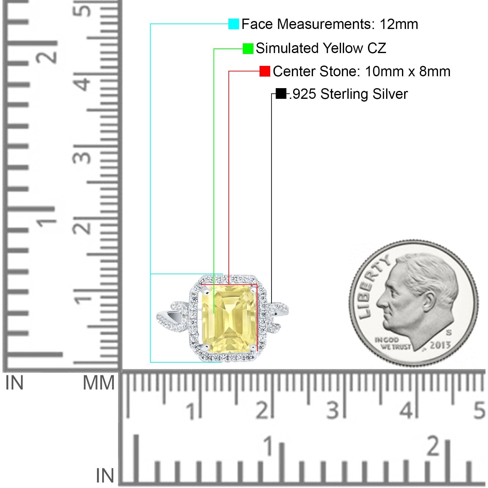 Halo Radiant Cut Wedding Engagement Ring Round Simulated Cubic Zirconia 925 Sterling Silver
