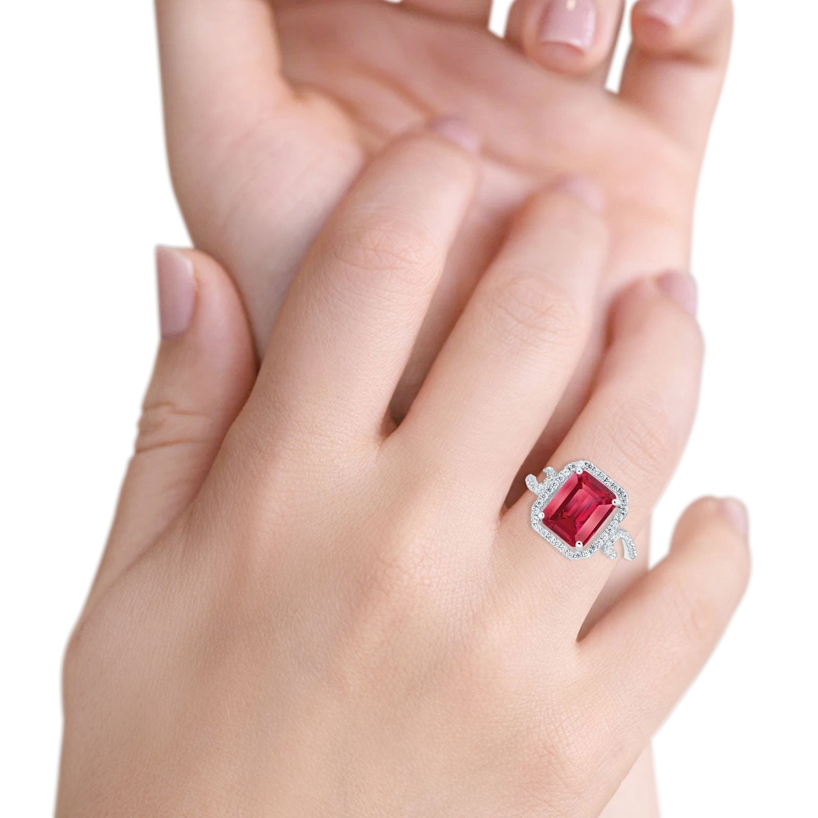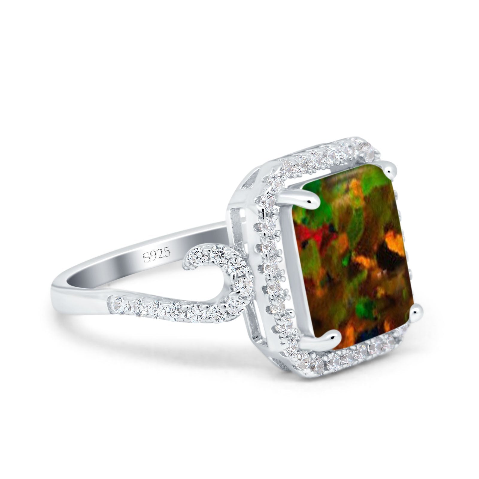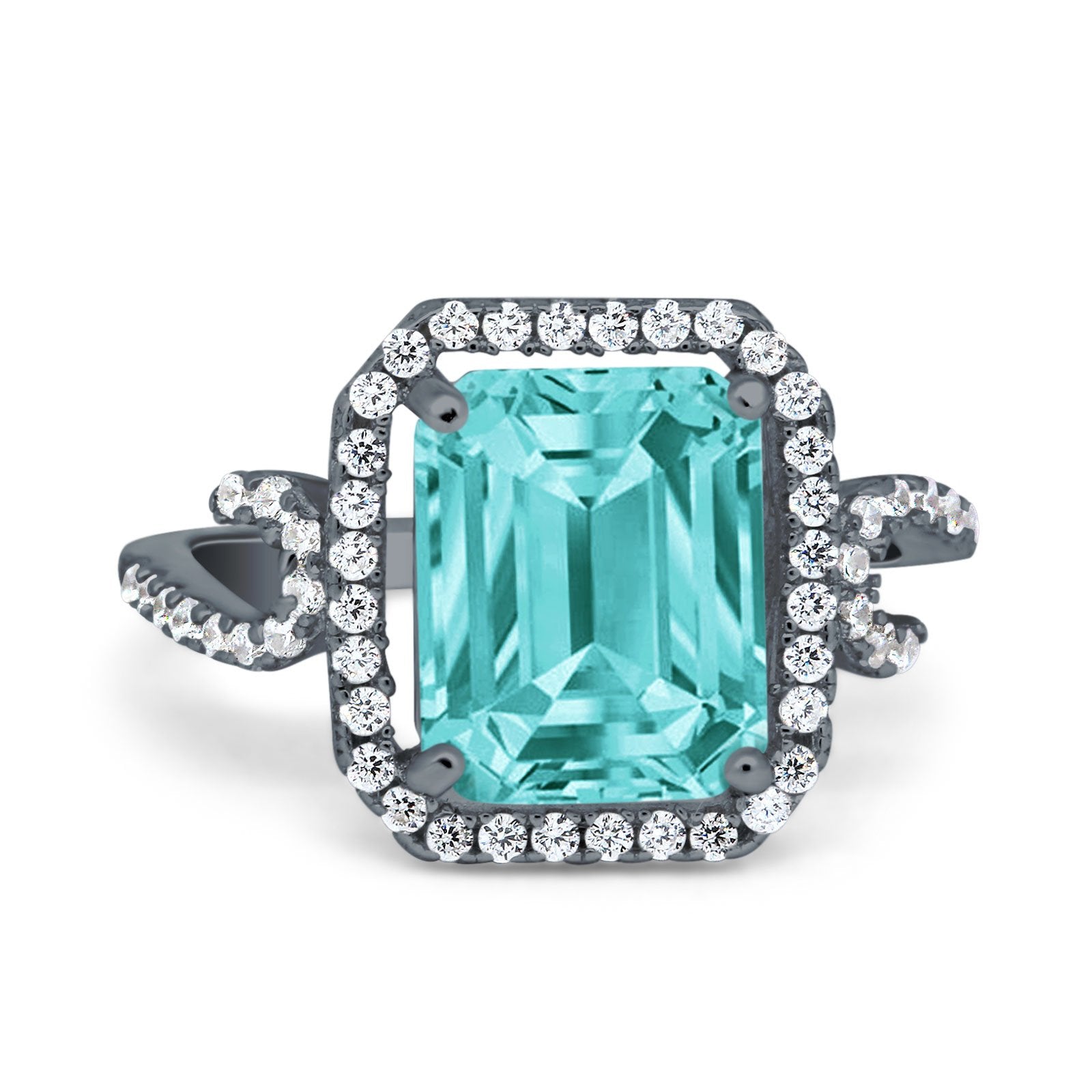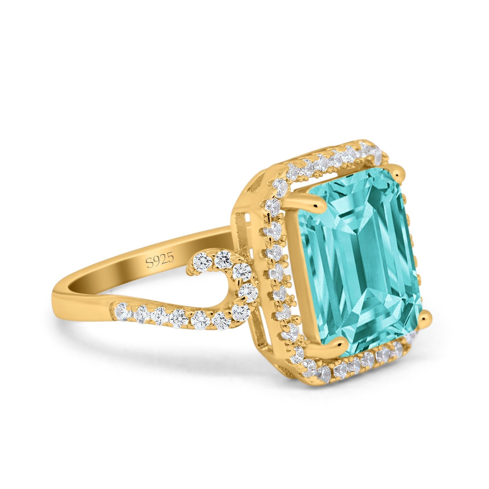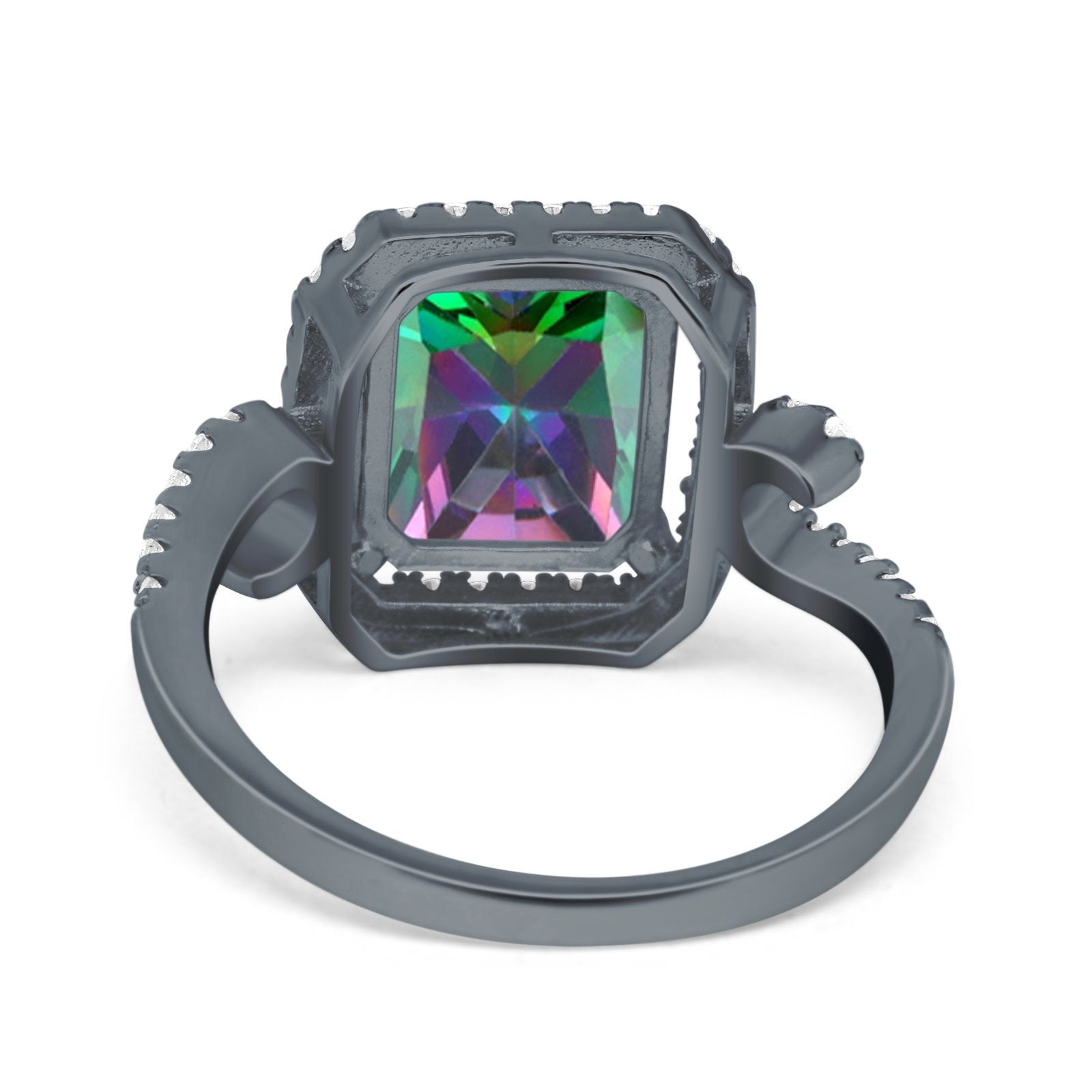 Halo Radiant Cut Wedding Engagement Ring Round Simulated Cubic Zirconia 925 Sterling Silver