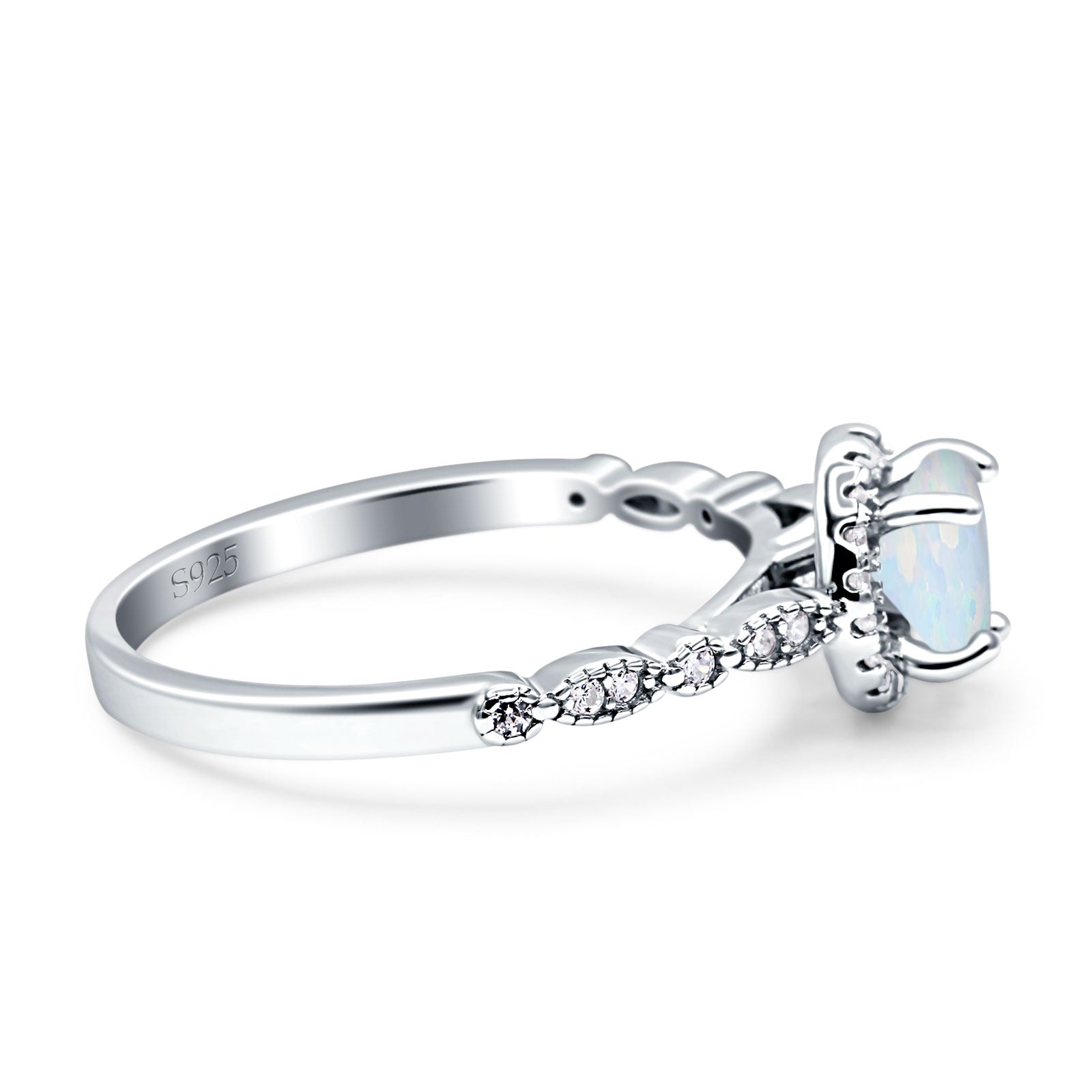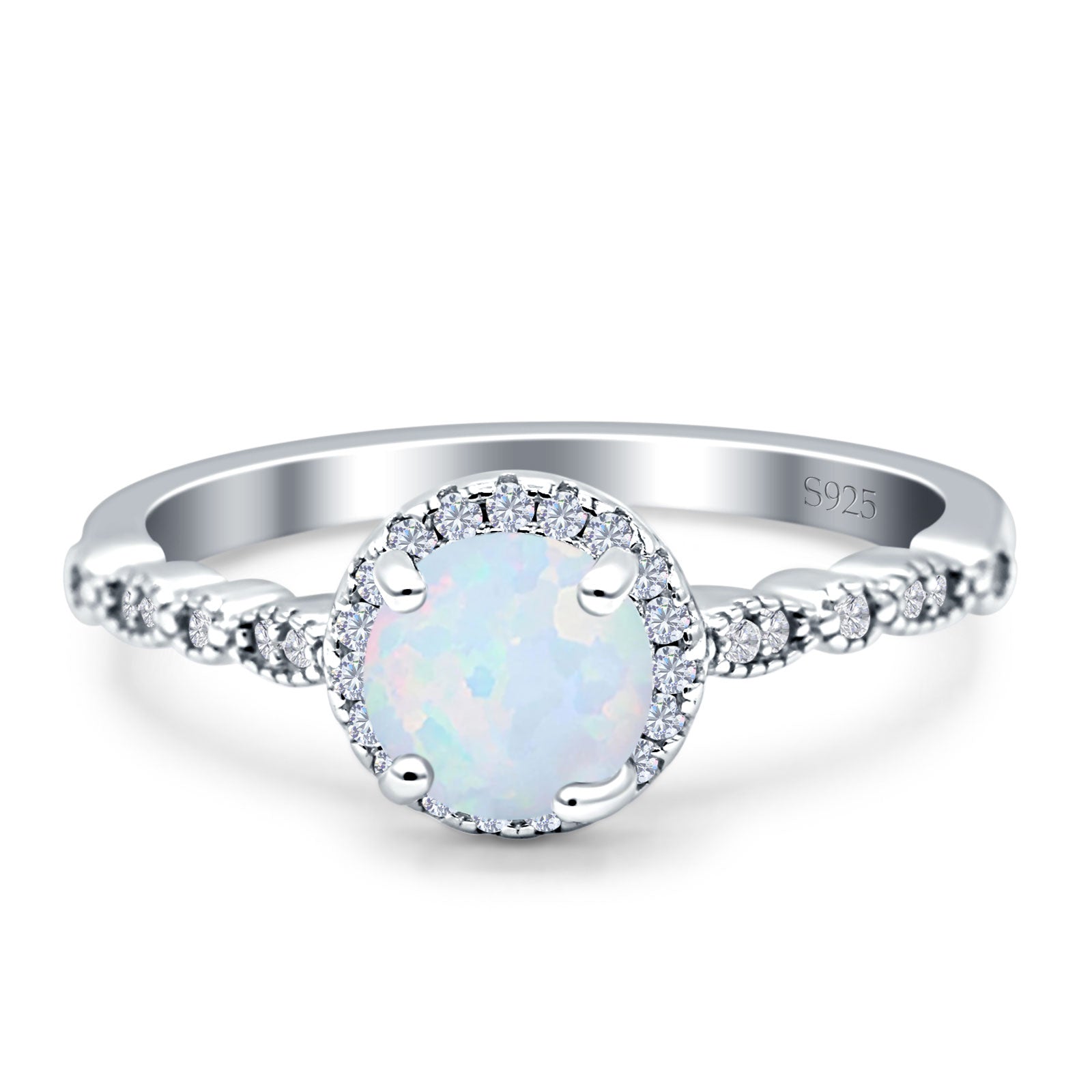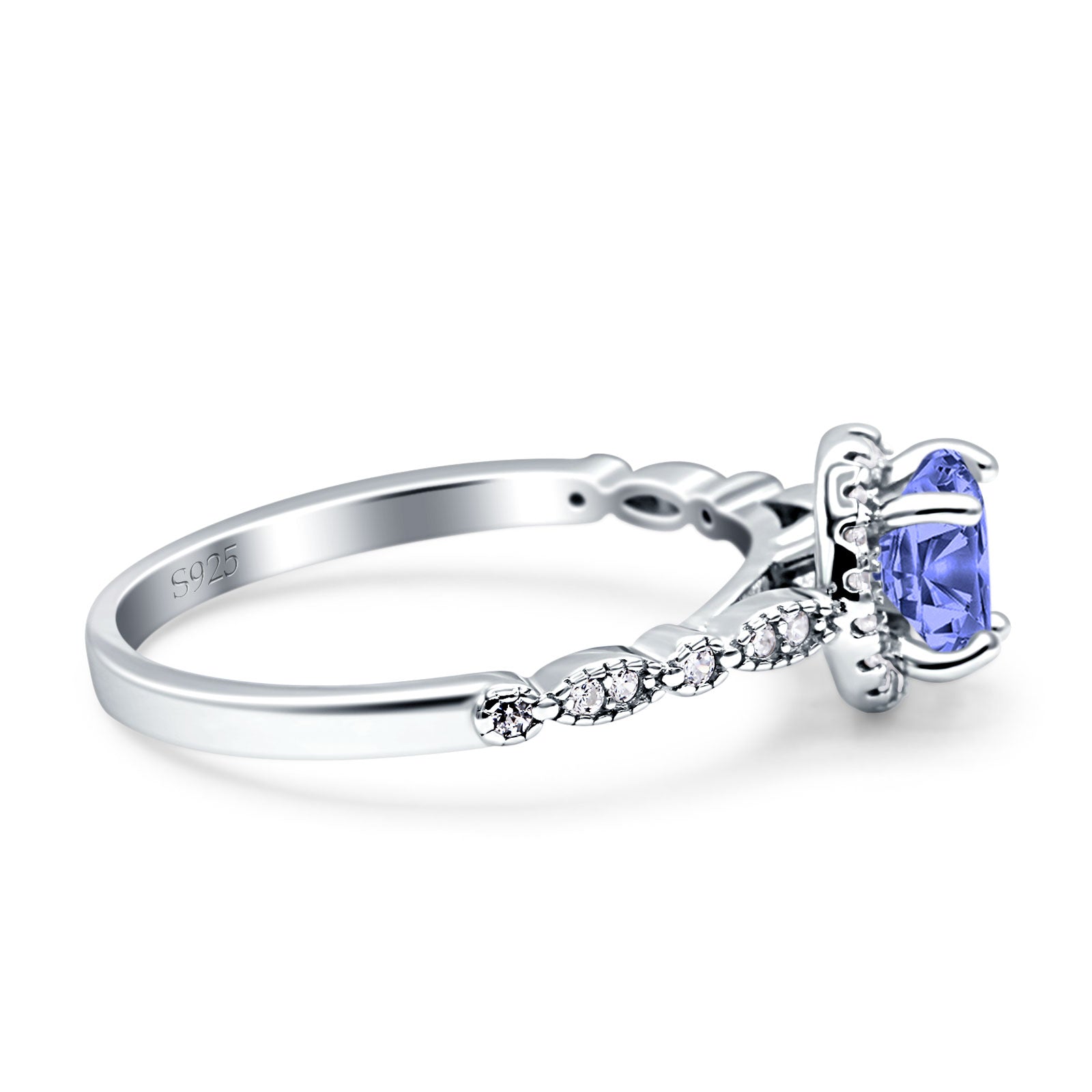 Halo Round Engagement Ring Cubic Zirconia 925 Sterling Silver