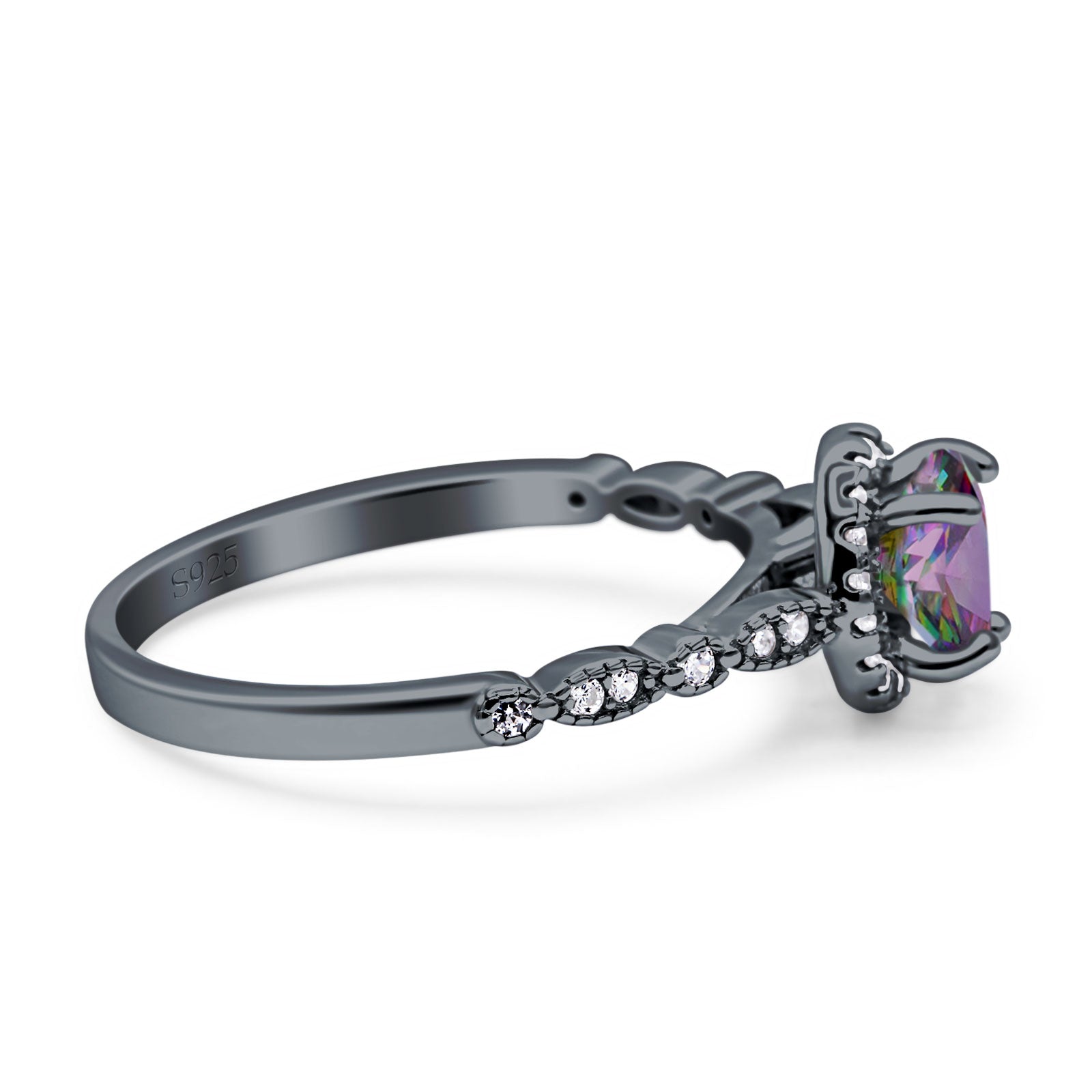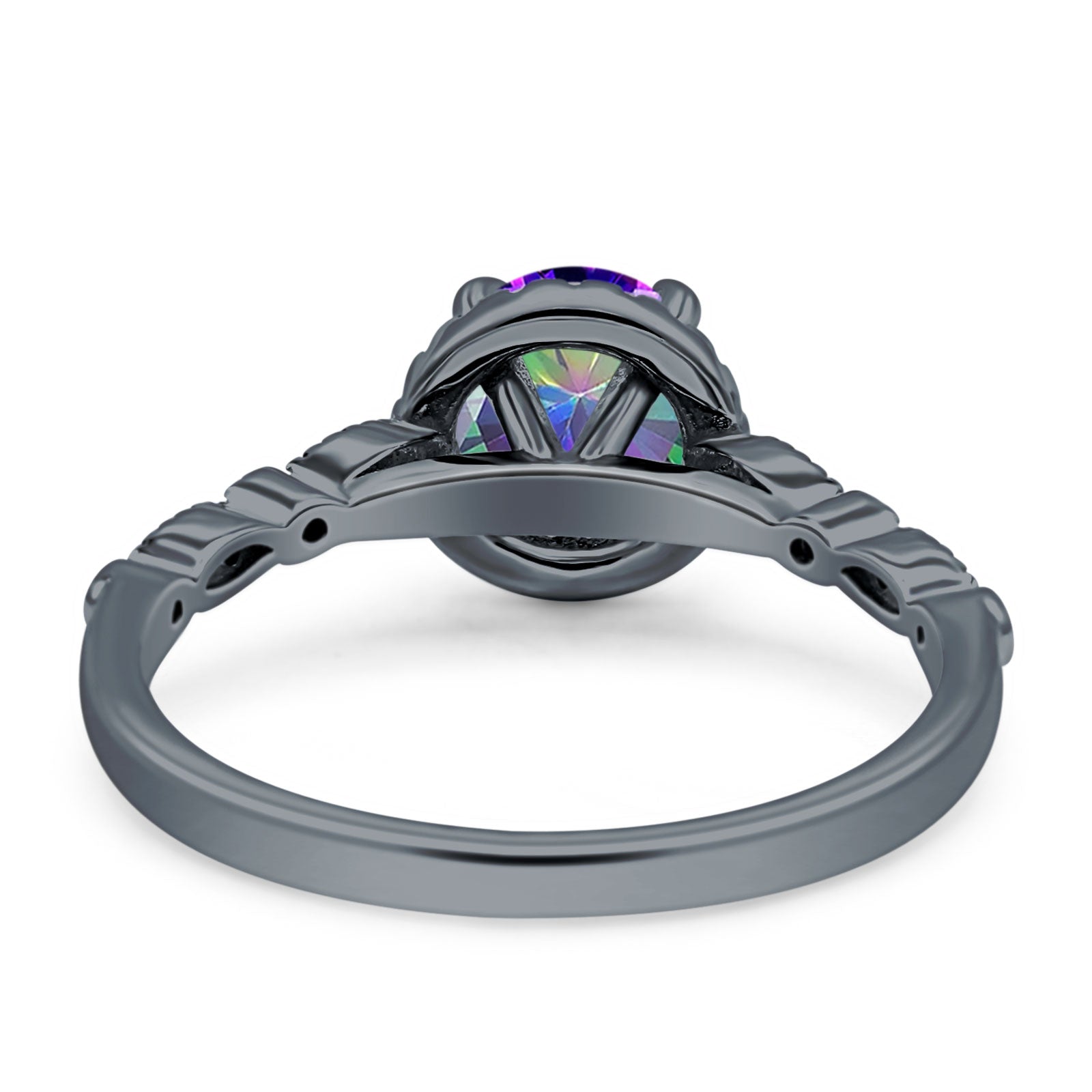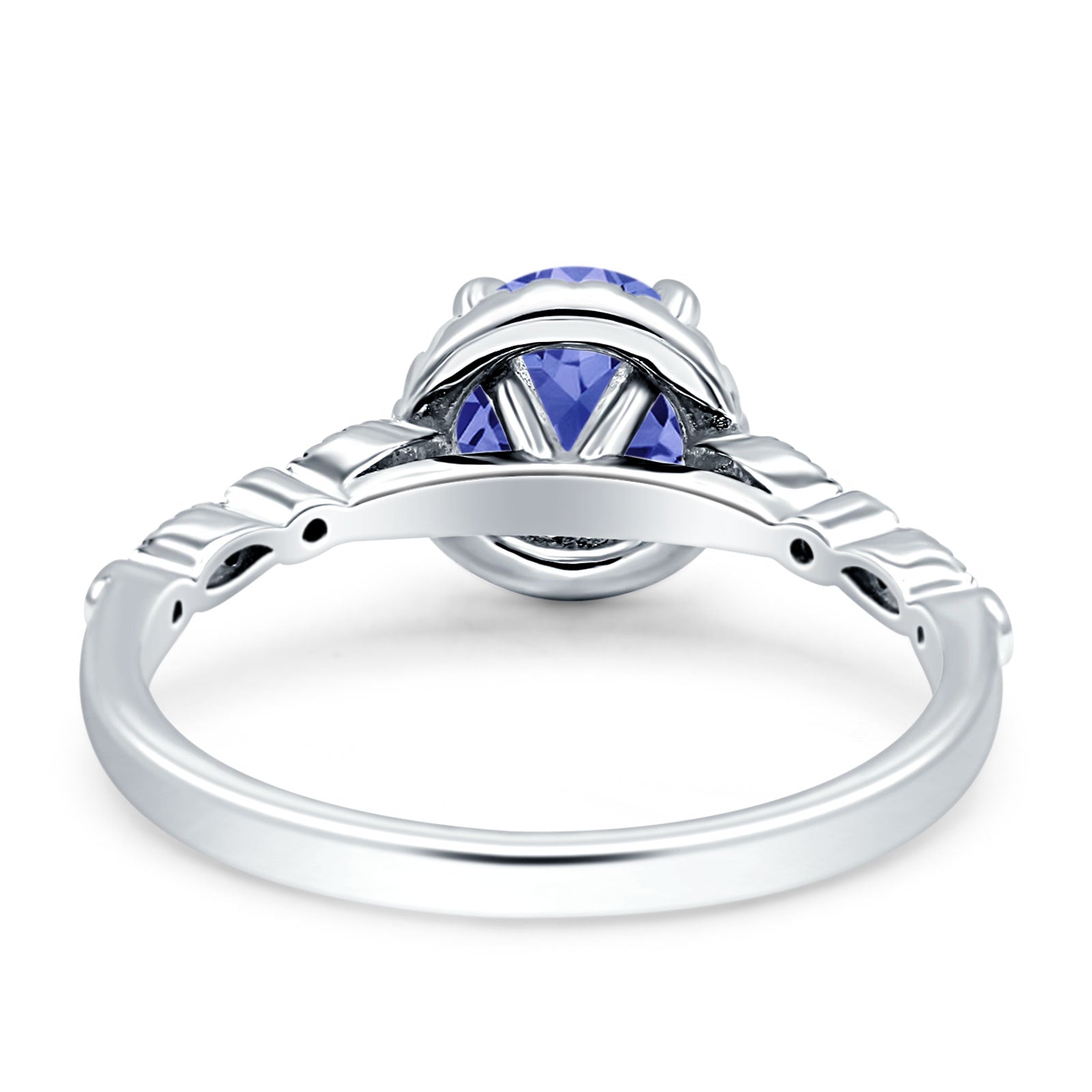 Halo Round Engagement Ring Cubic Zirconia 925 Sterling Silver