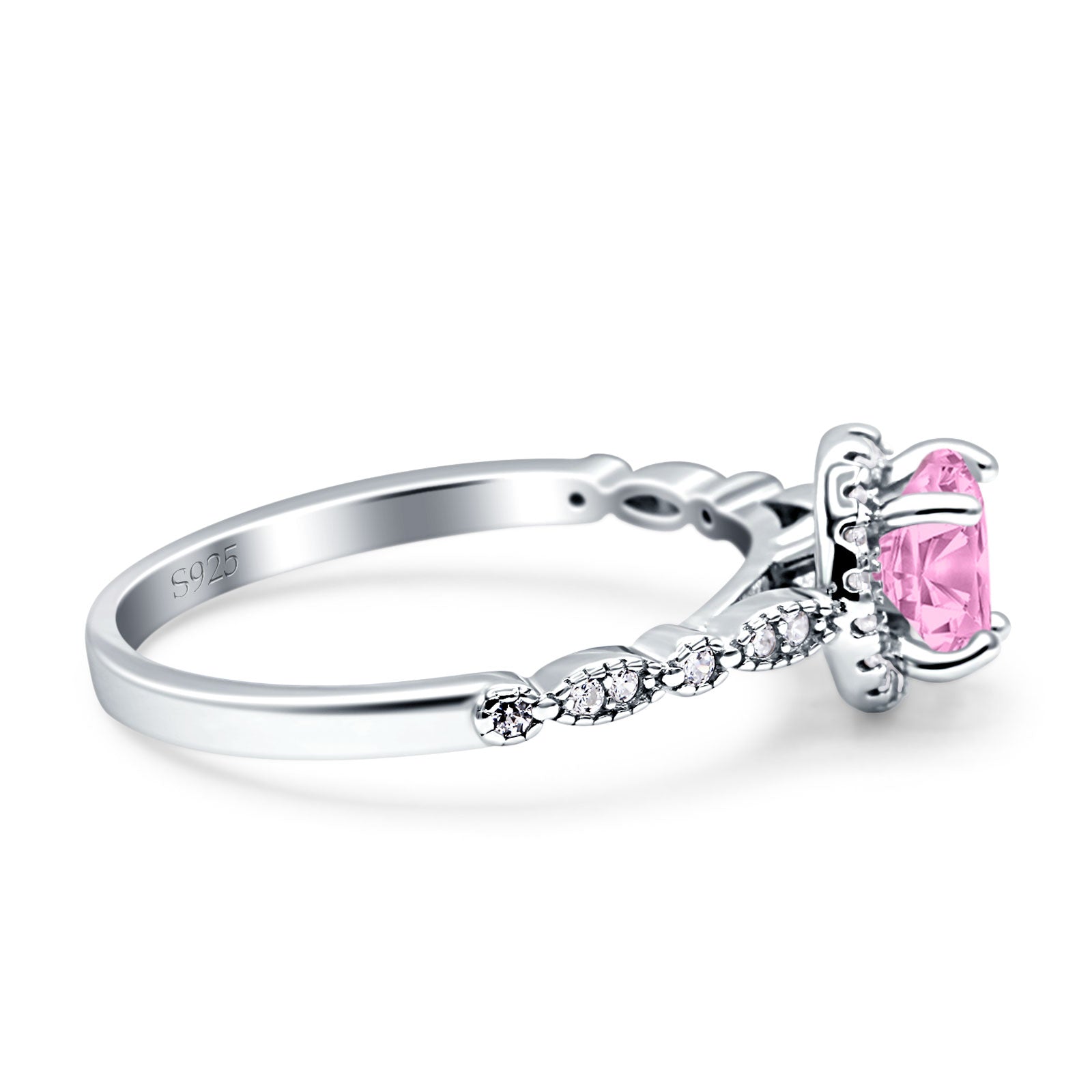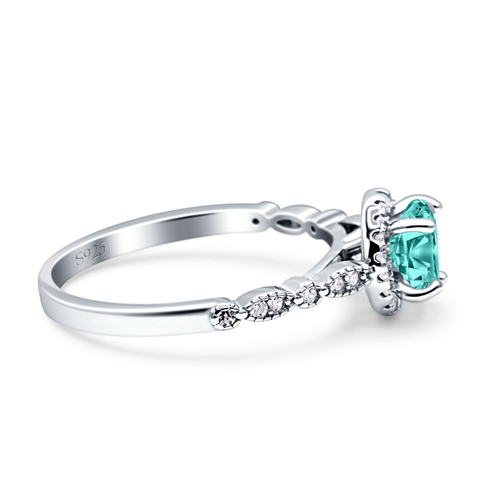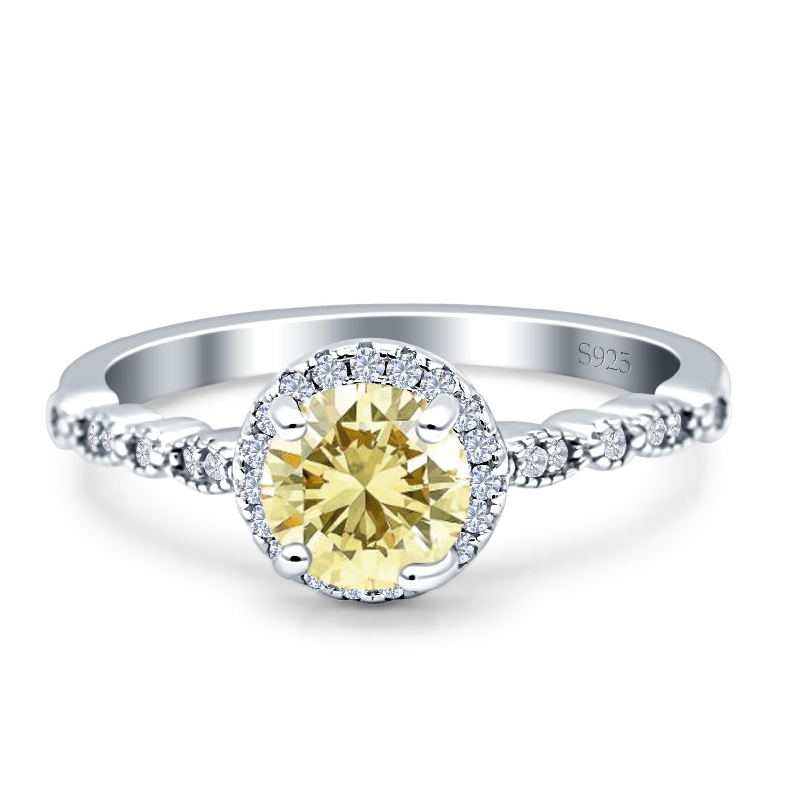 Halo Round Engagement Ring Cubic Zirconia 925 Sterling Silver