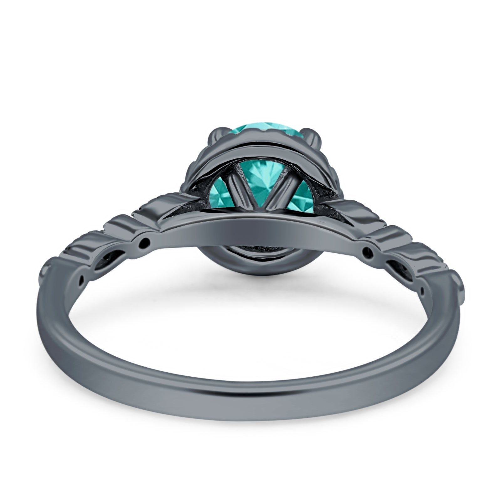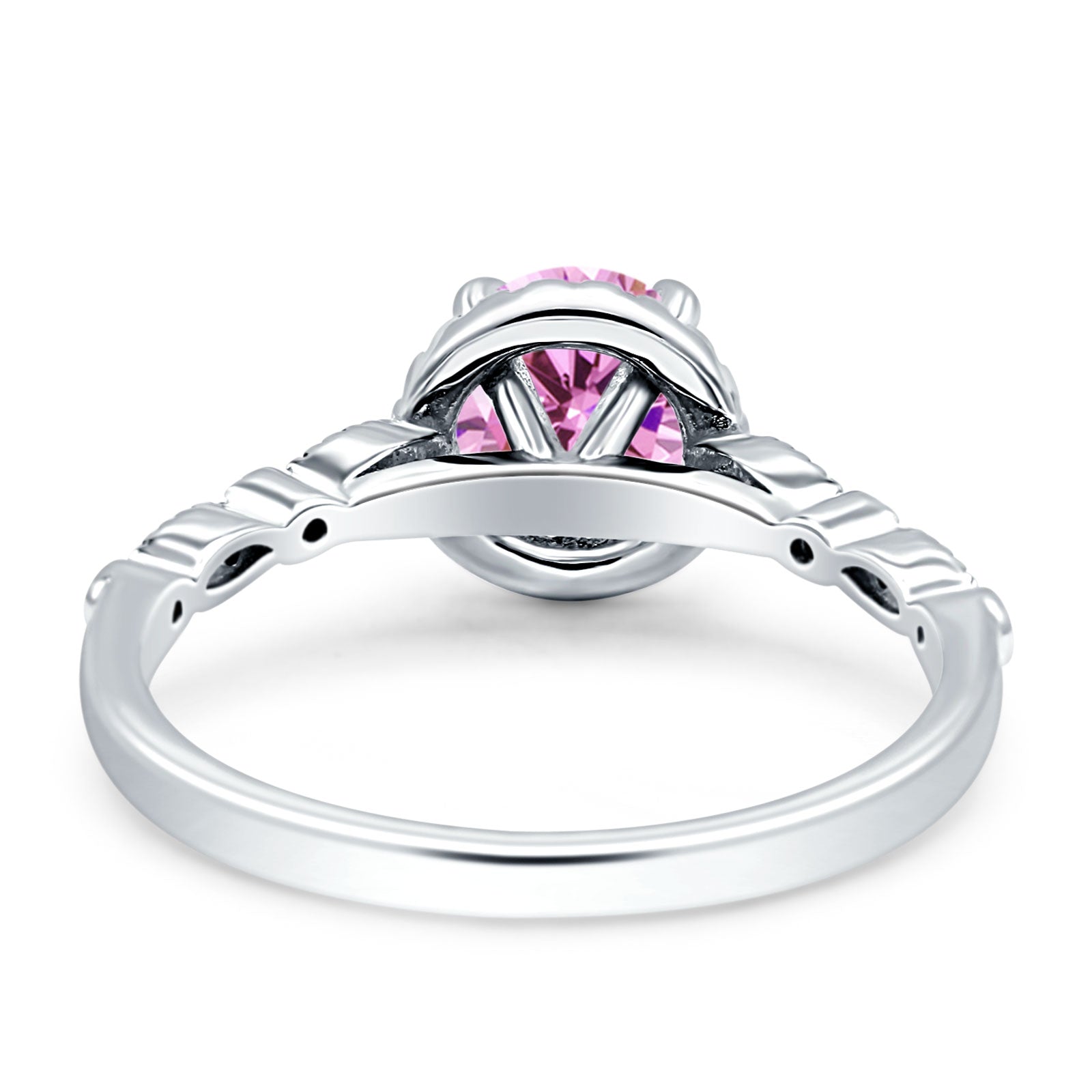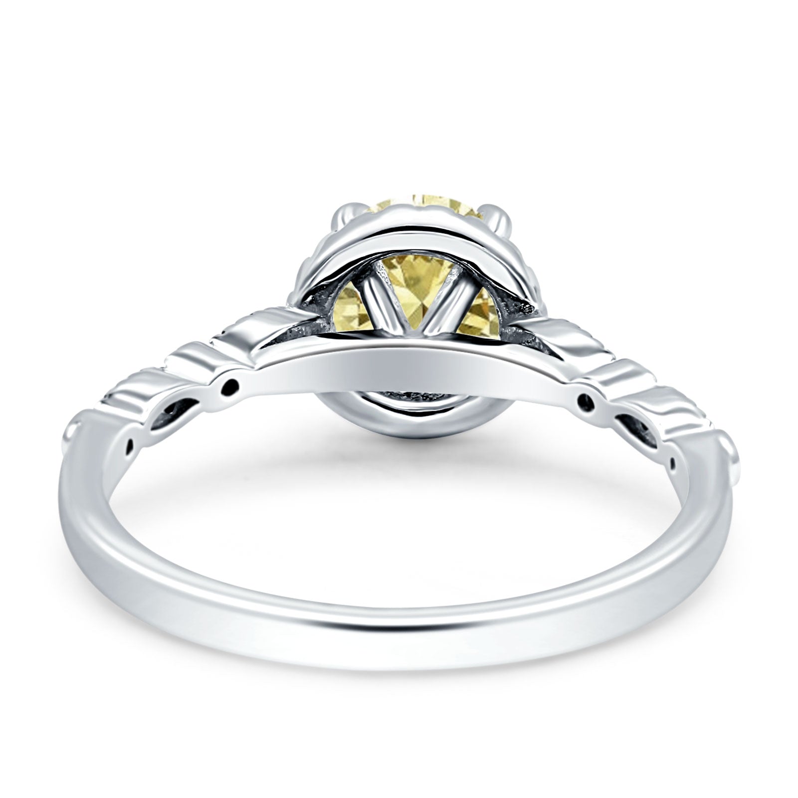 Halo Round Engagement Ring Cubic Zirconia 925 Sterling Silver