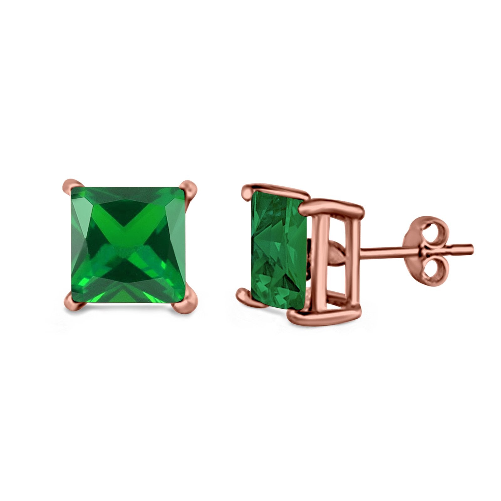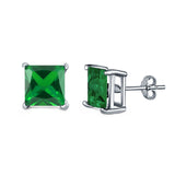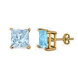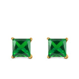 Halo Stud Earrings Princess Cut Simulated Cubic Zirconia 925 Sterling Silver (4mm-10mm)