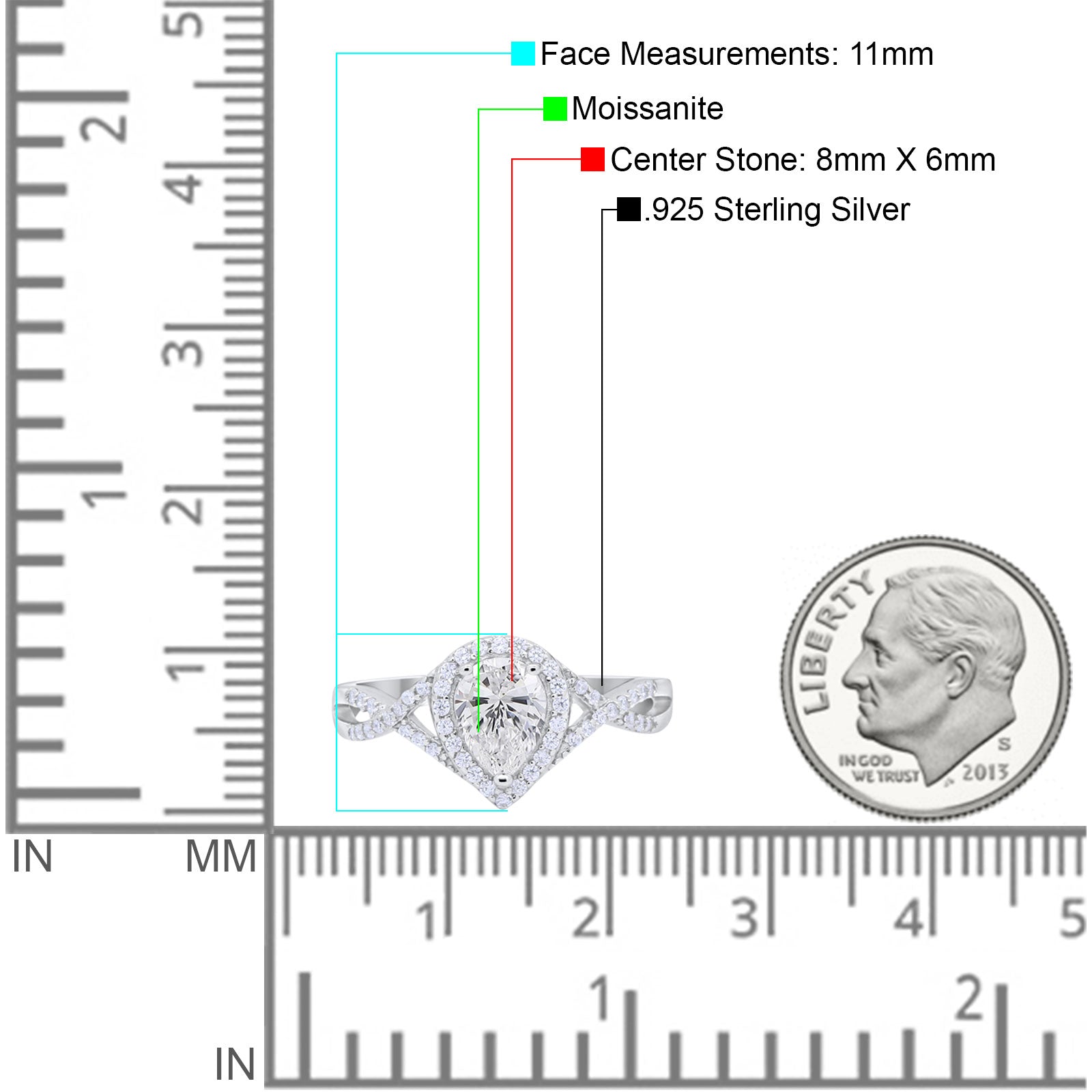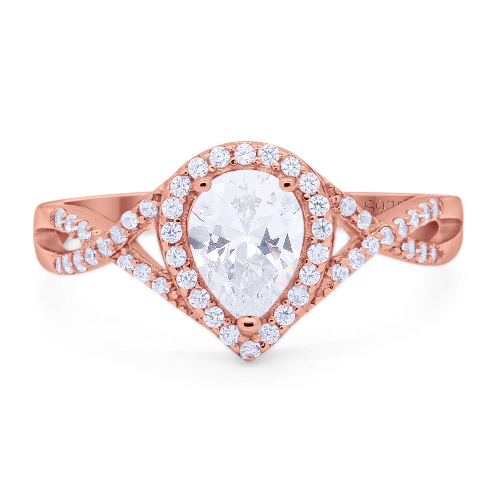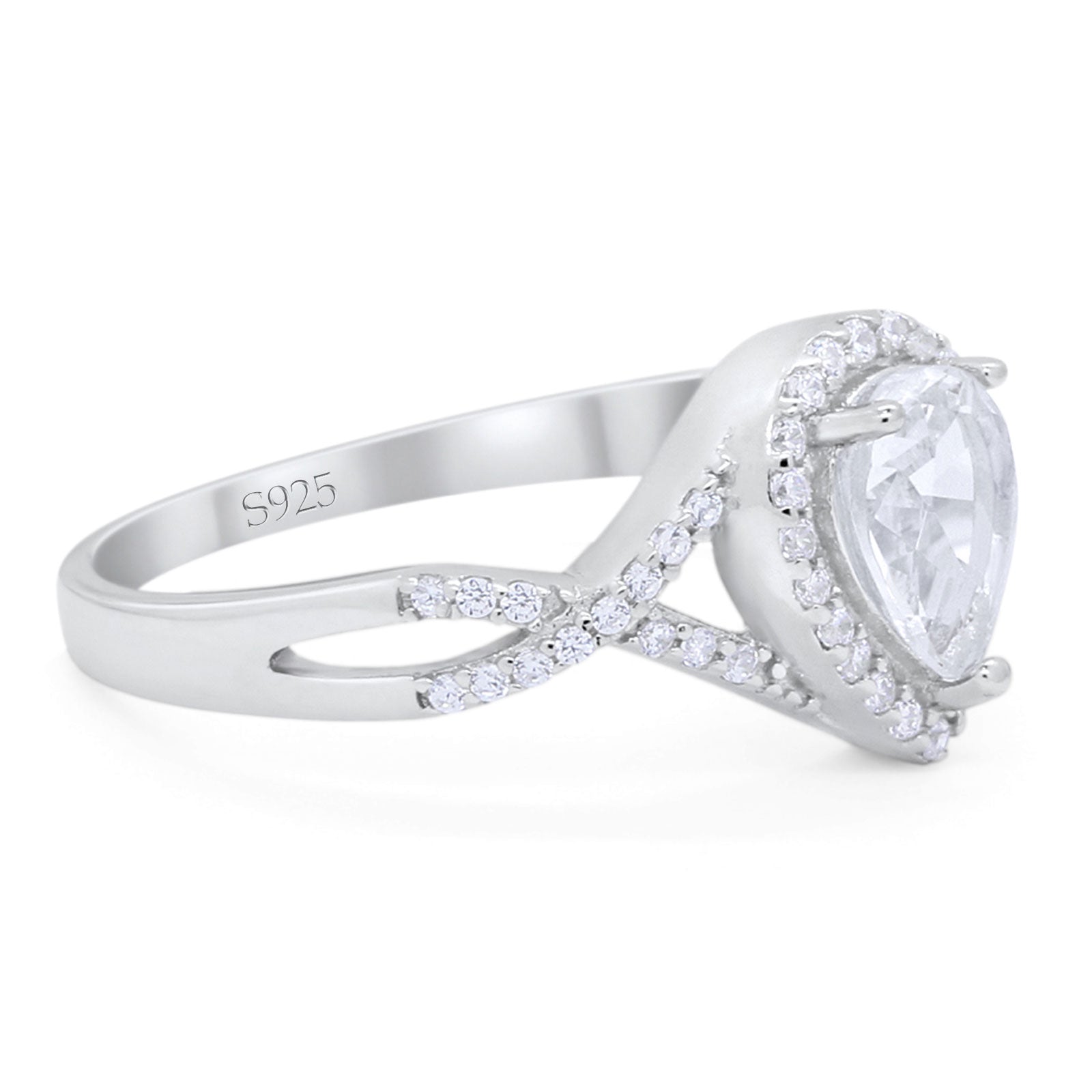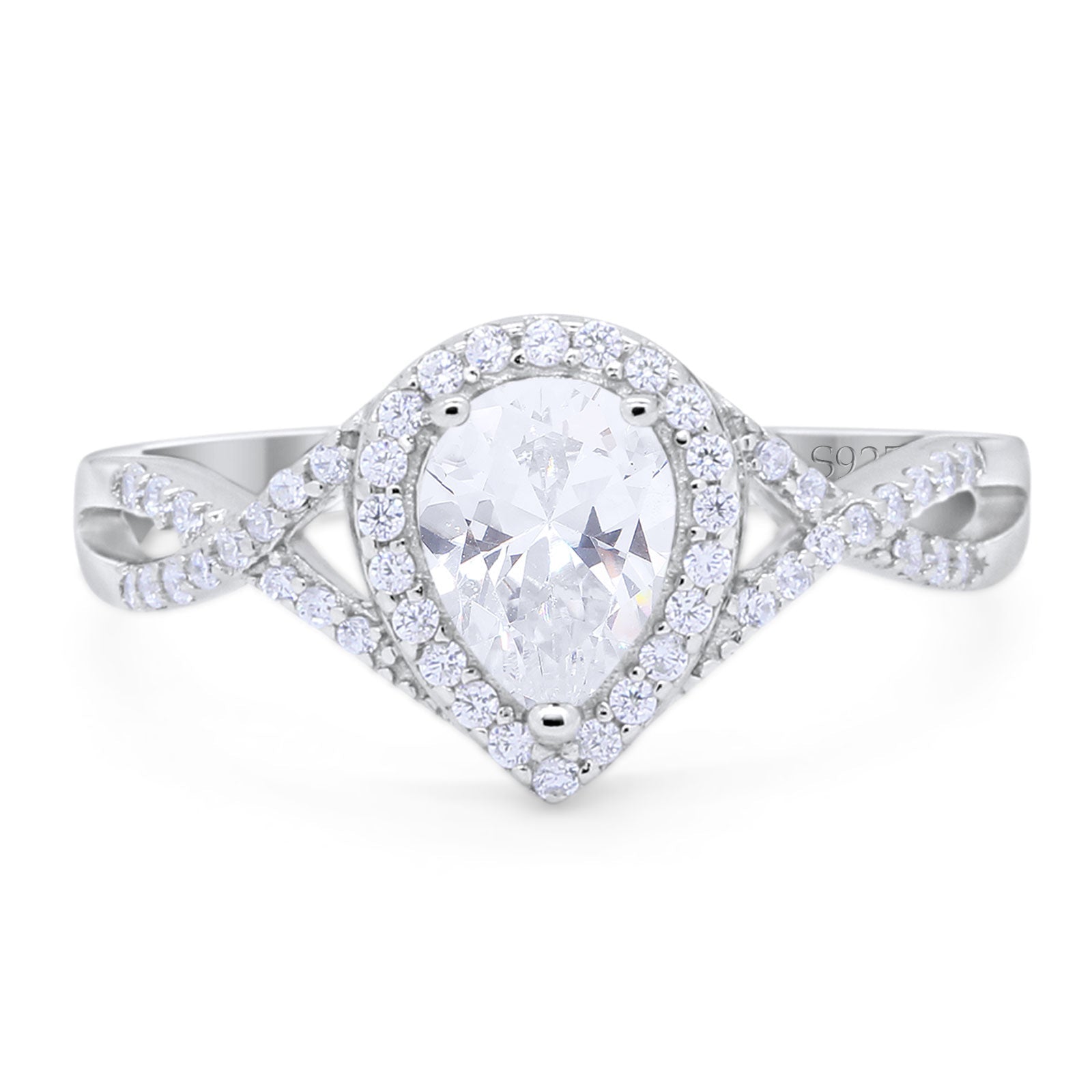 Halo Teardrop Pear Moissanite Infinity Twisted Ring 925 Sterling Silver