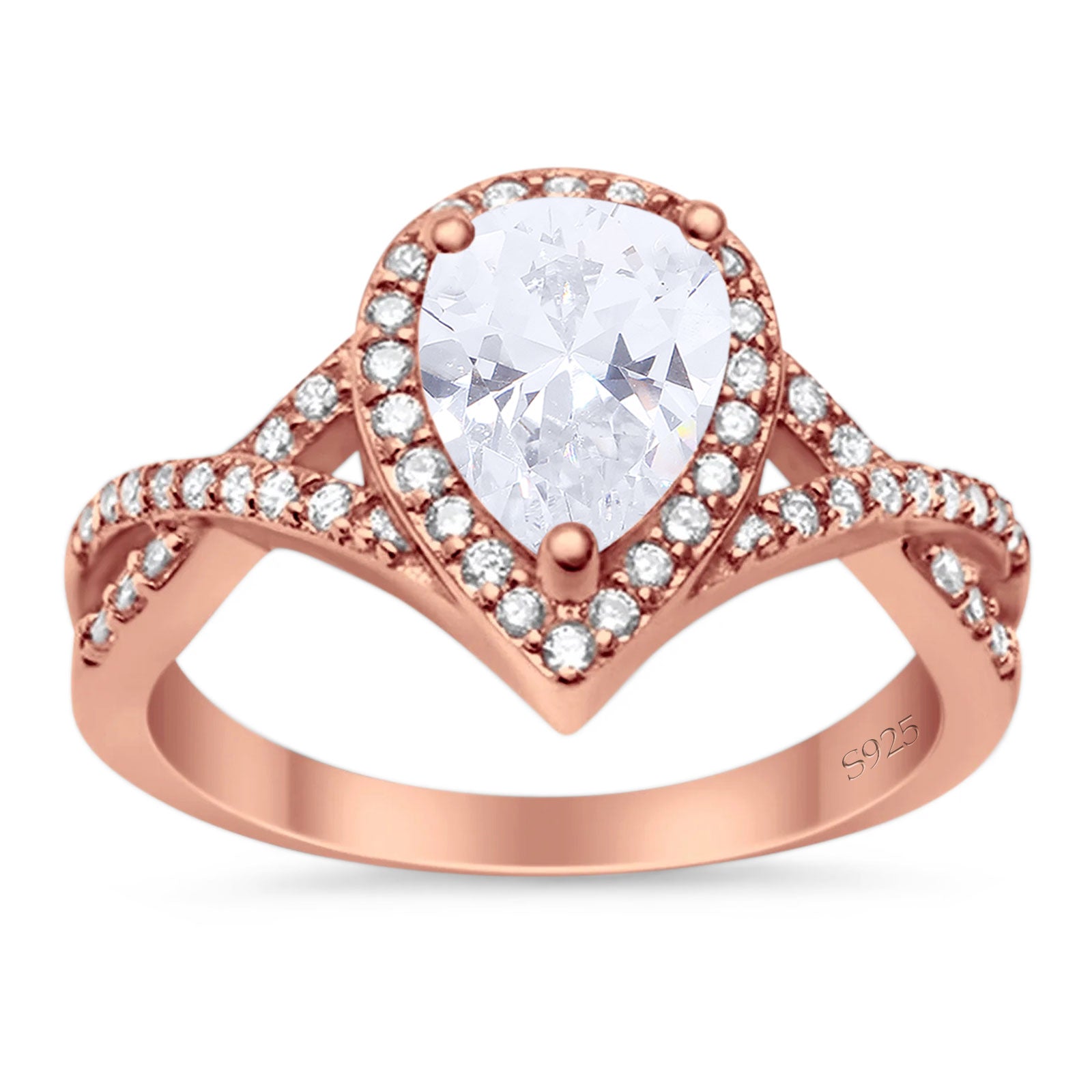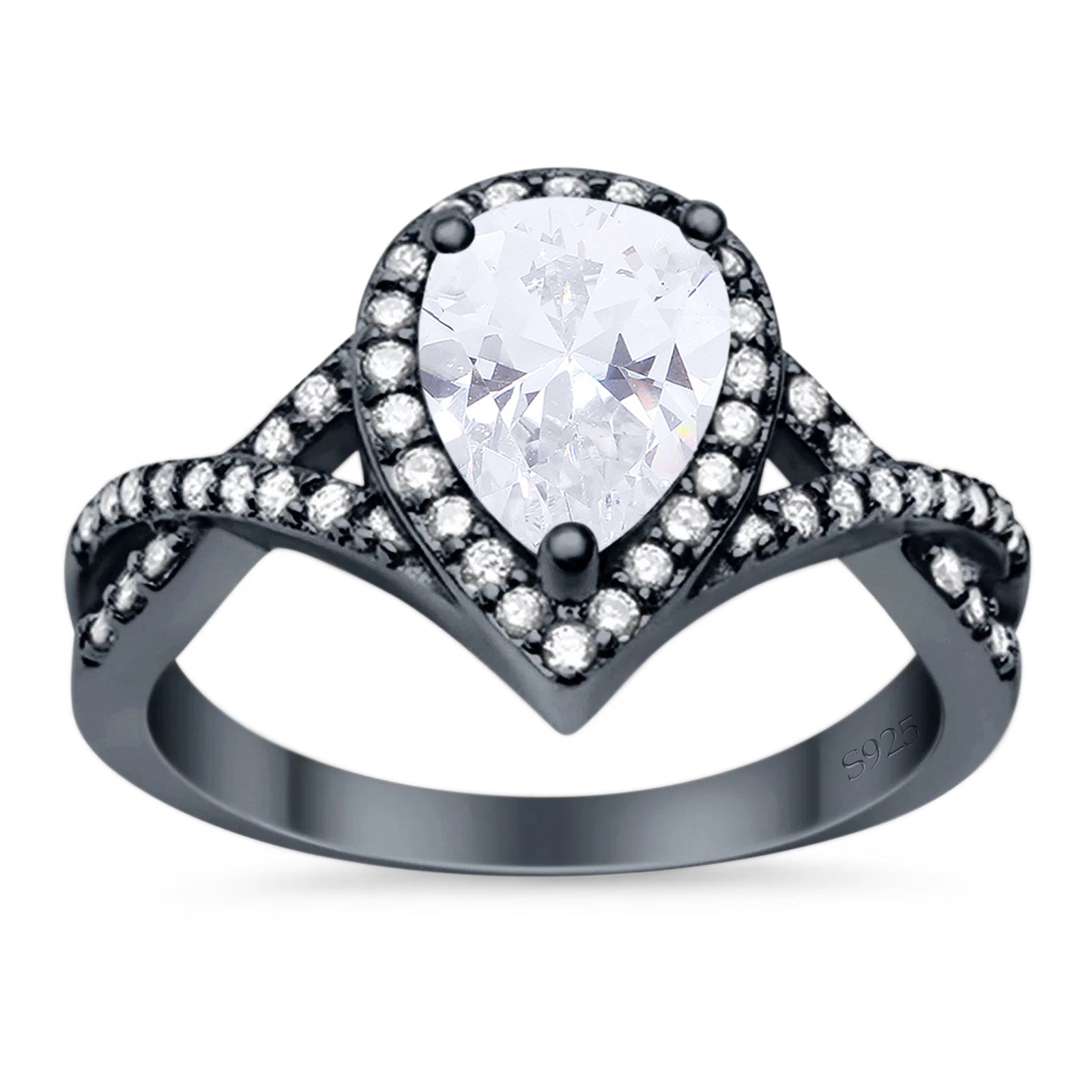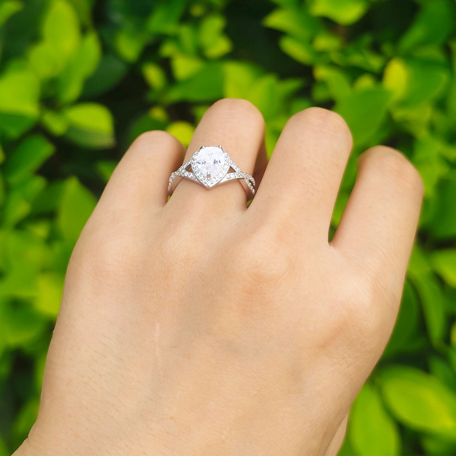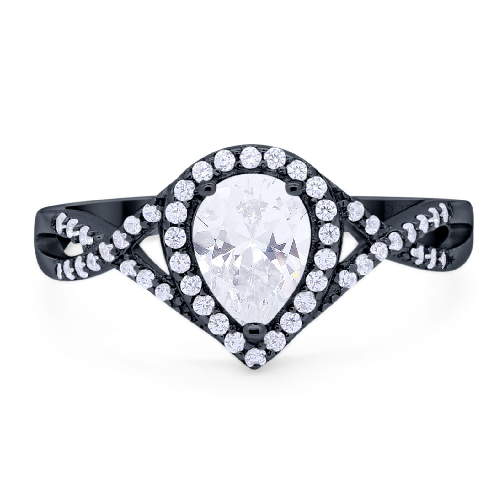 Halo Teardrop Pear Moissanite Infinity Twisted Ring 925 Sterling Silver