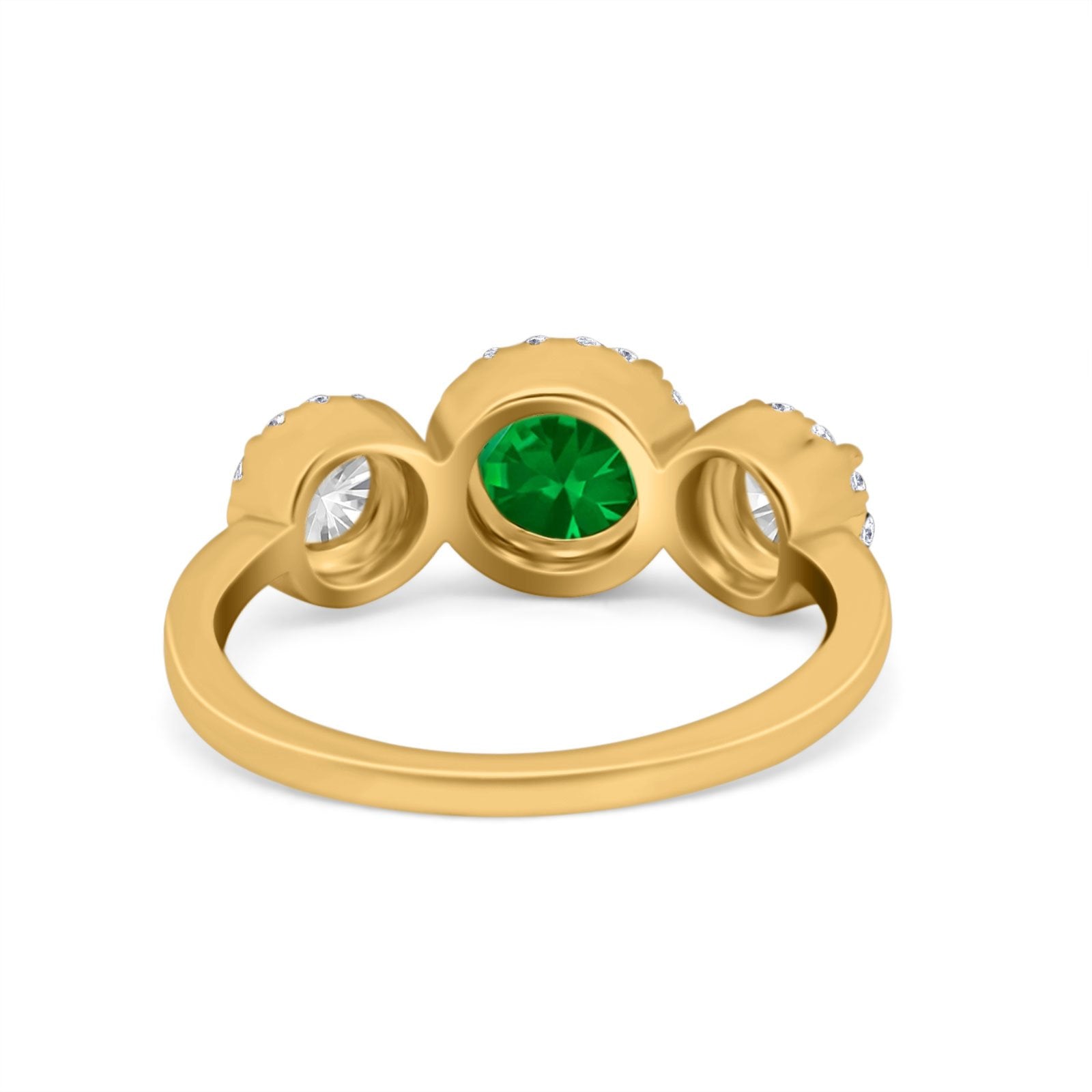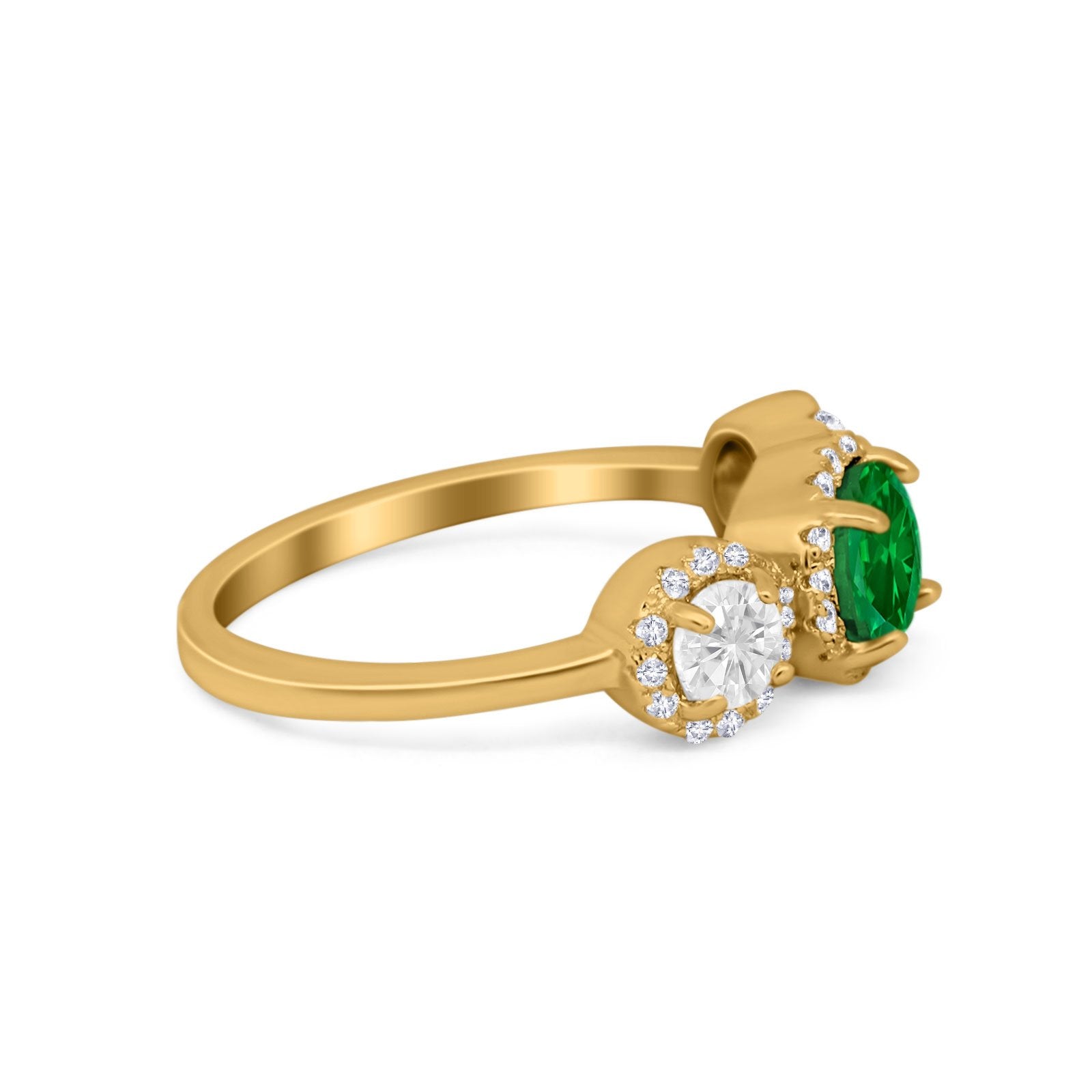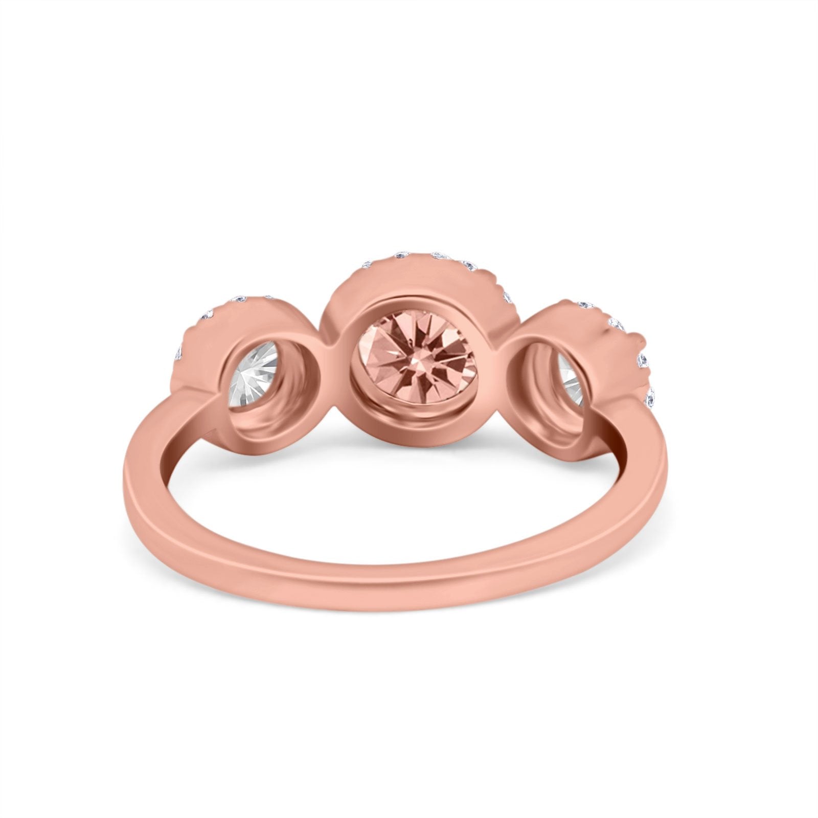 Halo Three Stone Wedding Ring Round Simulated Cubic Zirconia 925 Sterling Silver