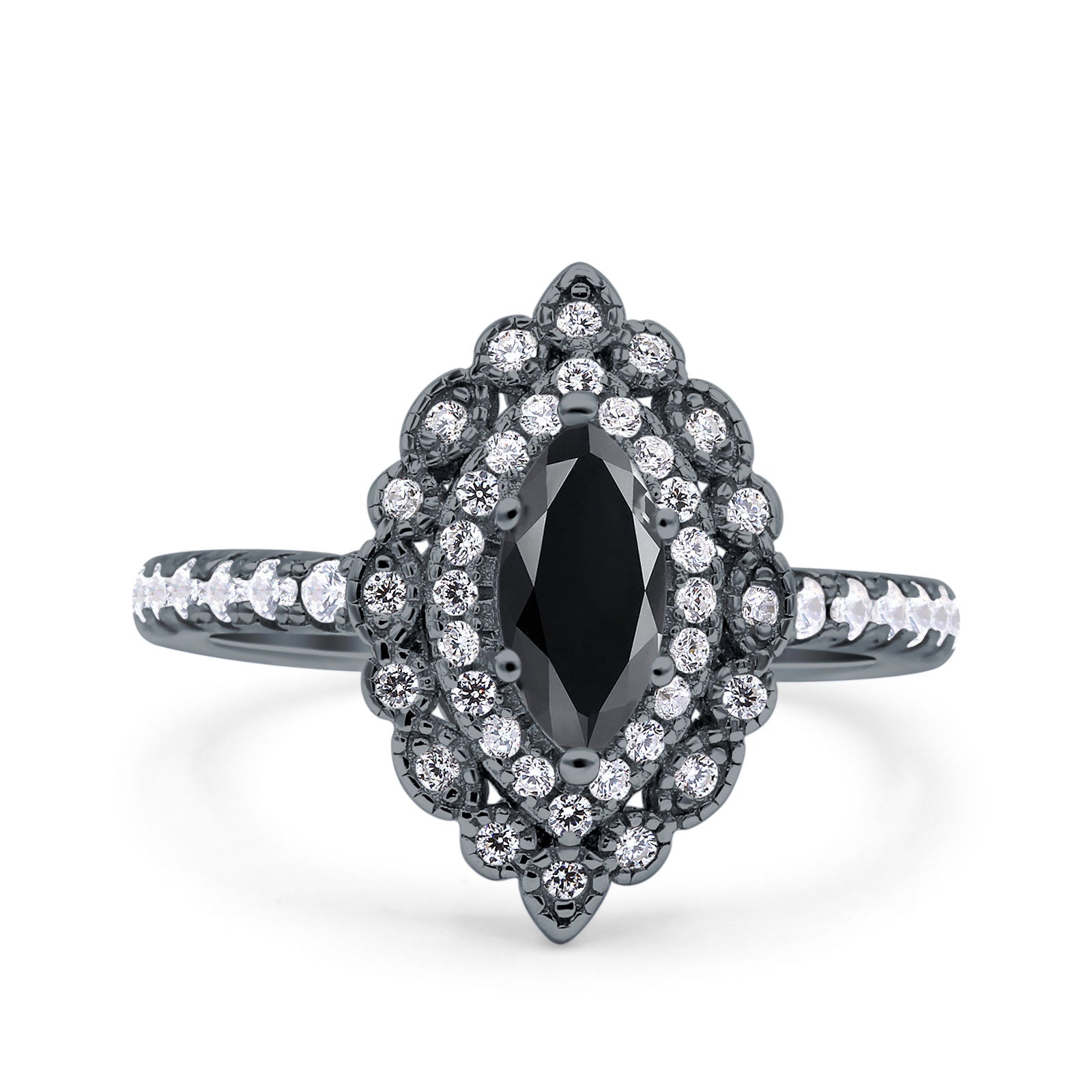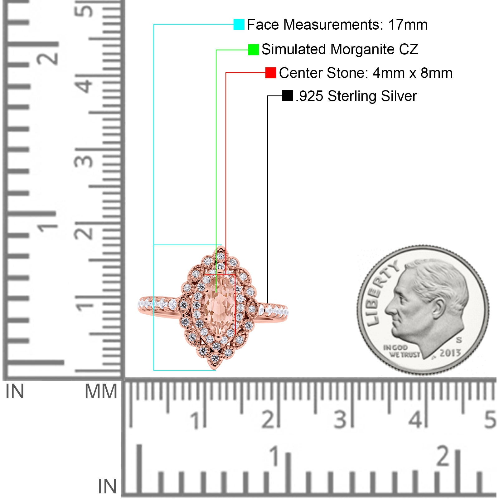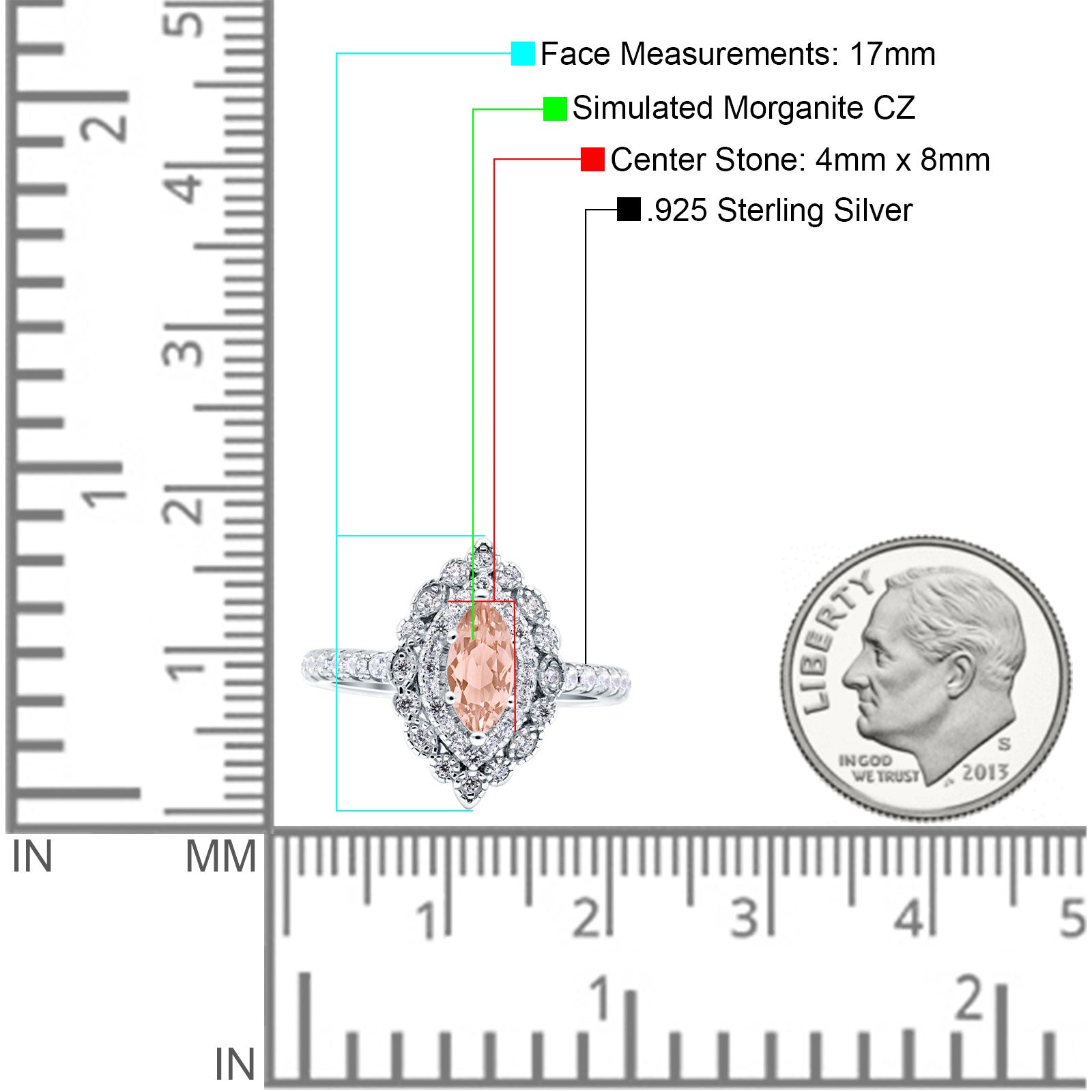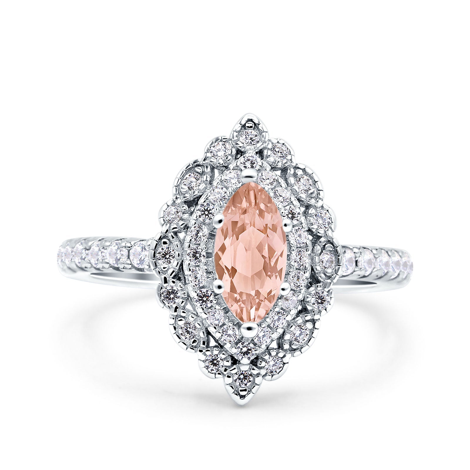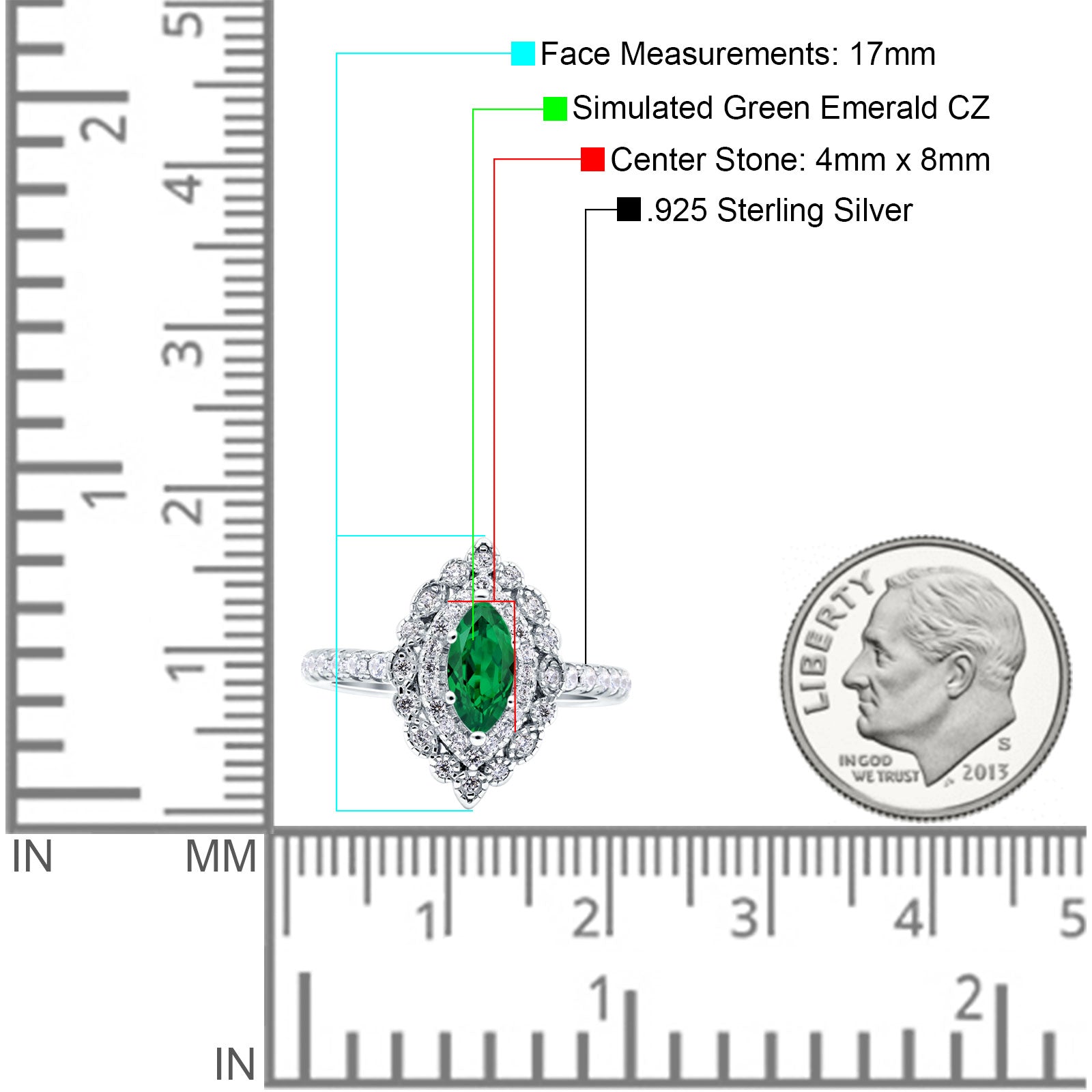 Halo Vintage Style Art Deco Solitaire Accent Marquise Wedding Engagement Ring Round Simulated Cubic Zirconia 925 Sterling Silver